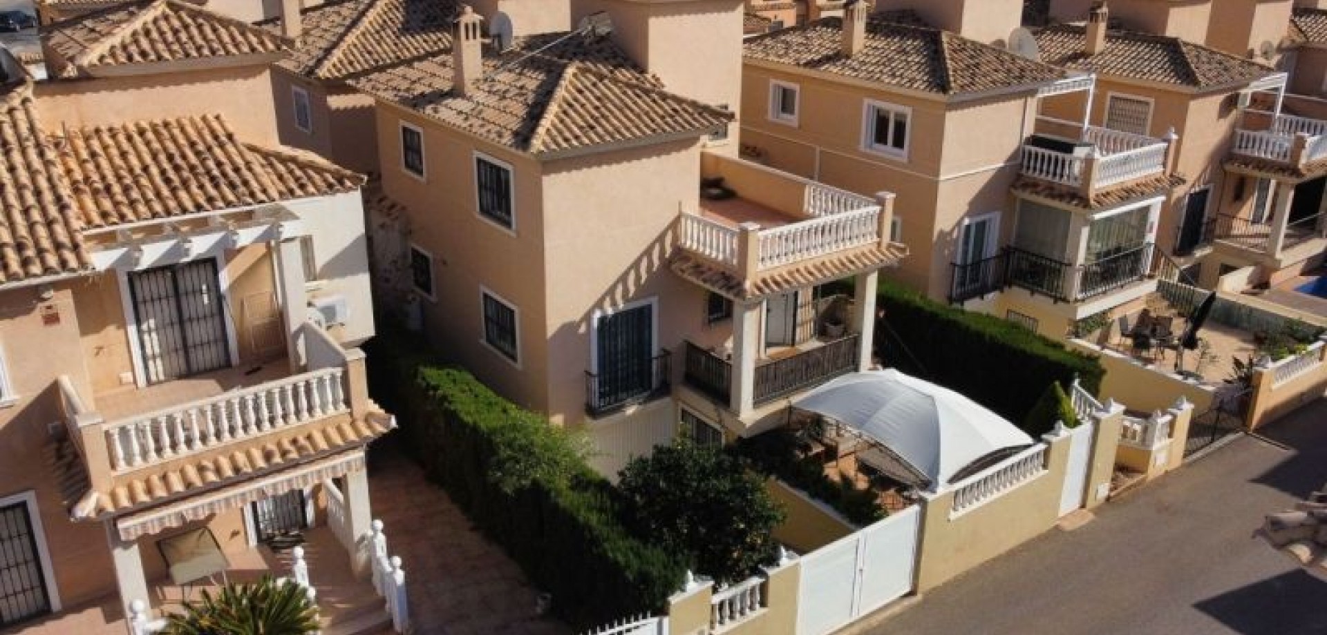 Freistehende, nach Süden ausgerichtete Villa mit Garage, großer Terrasse, Gemeinschaftspool, geschlossener Wohnanlage und außergewöhnlichen Annehmlichkeiten Entdecken Sie diese wundervolle, unabhängige Villa mit 3 Schlafzimmern und 2 Bädern, die Ihnen maximalen Komfort und Stil bietet. Dieses Anwesen befindet sich in einer geschlossenen Wohnanlage und verfügt über eine eigene Garage im Untergeschoss, die Komfort und Sicherheit bietet. Genießen Sie die Terrasse und das Solarium, die sich perfekt zum Entspannen eignen, während Sie sich an der beeindruckenden Südausrichtung erfreuen, die den ganzen Tag über natürliches Licht garantiert. Die Villa bietet Zugang zu einem Gemeinschaftspool, ideal zum Abkühlen an warmen Sommertagen. Seine Lage ist unschlagbar: nur wenige Schritte vom Consum-Laden und nur 2 km vom Strand entfernt, wo Sie die Sonne und das Meer genießen können. Darüber hinaus werden Golfliebhaber erfreut sein zu erfahren, dass es nur 4 km entfernt Golfplätze gibt. Es wird komplett möbliert verkauft, so dass Sie sofort einziehen und Ihr neues Zuhause genießen können. Diese Villa ist der Traum-Rückzugsort, der Luxus, Komfort und die Nähe zu den besten Attraktionen der Gegend vereint. Verpassen Sie nicht die Gelegenheit, dieses Juwel in einer privilegierten Umgebung zu erwerben. Ihr neues Zuhause erwartet Sie!