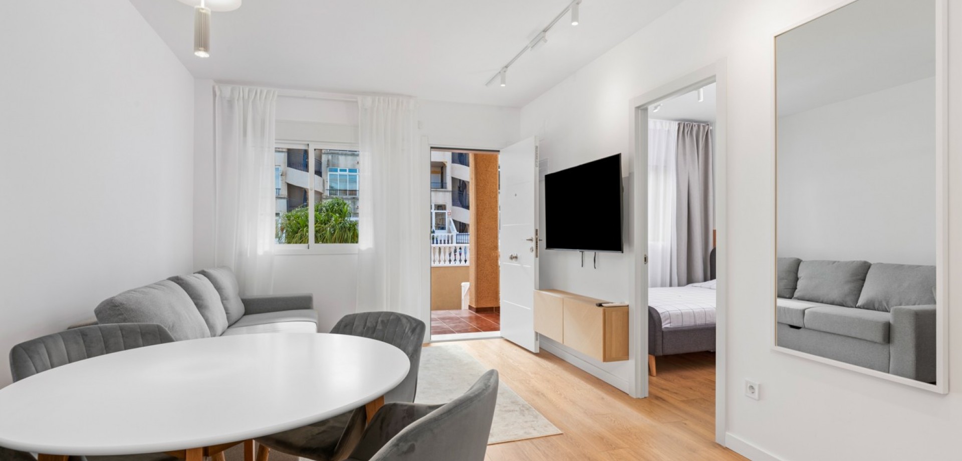 Entdecken Sie den perfekten Mix aus modernem Komfort und mediterranem Charme in dieser vollständig renovierten Erdgeschosswohnung mit Südausrichtung in La Ciñuelica, Punta Prima.