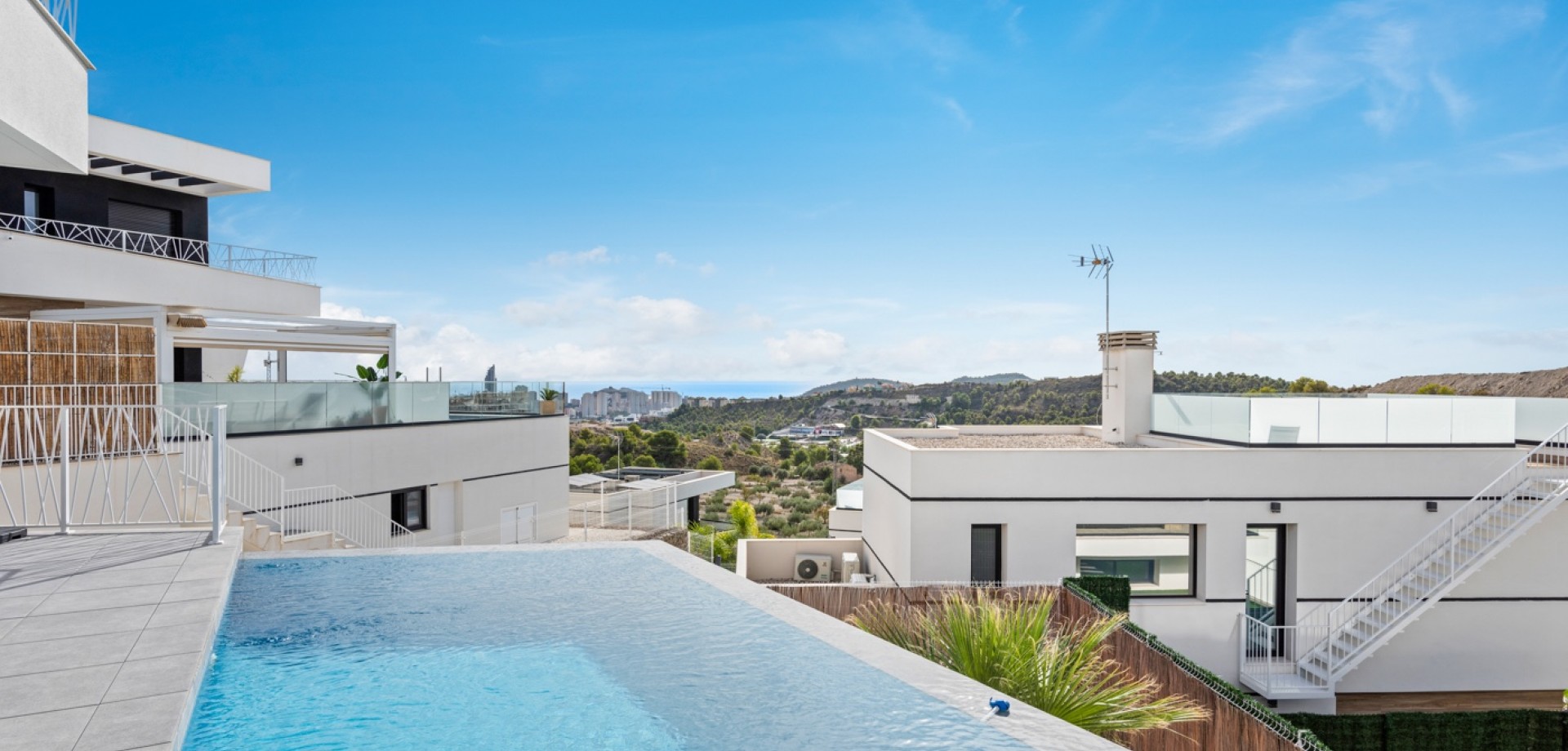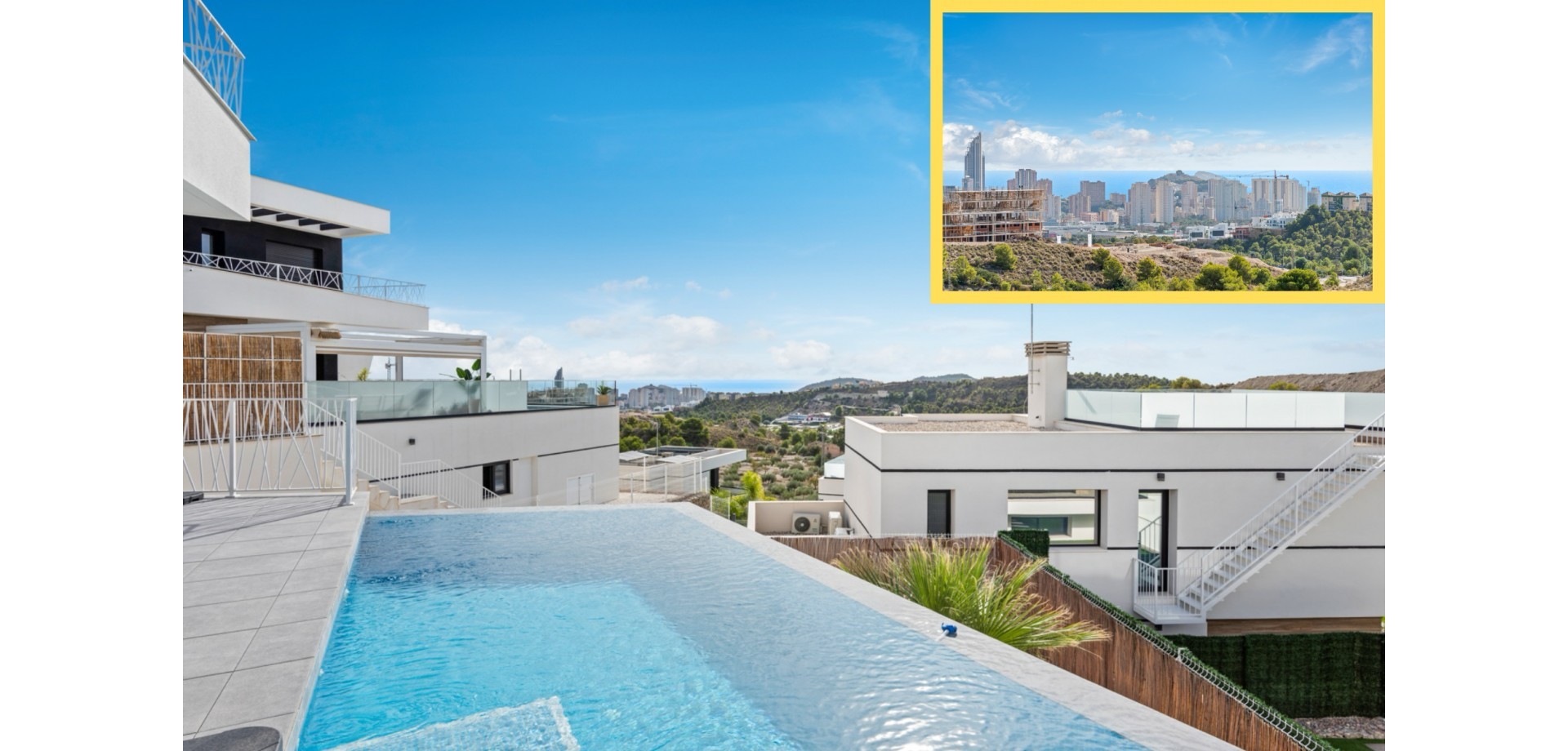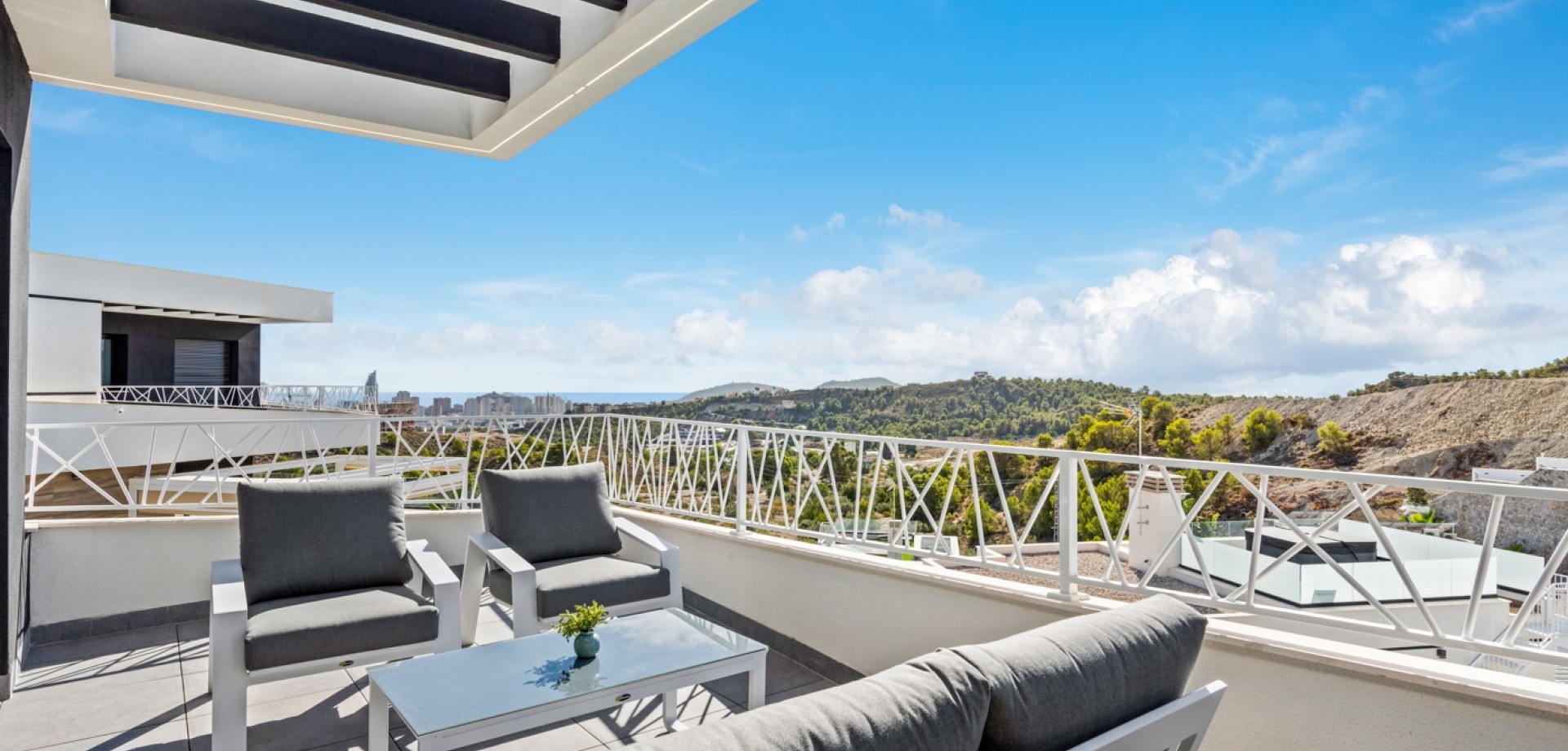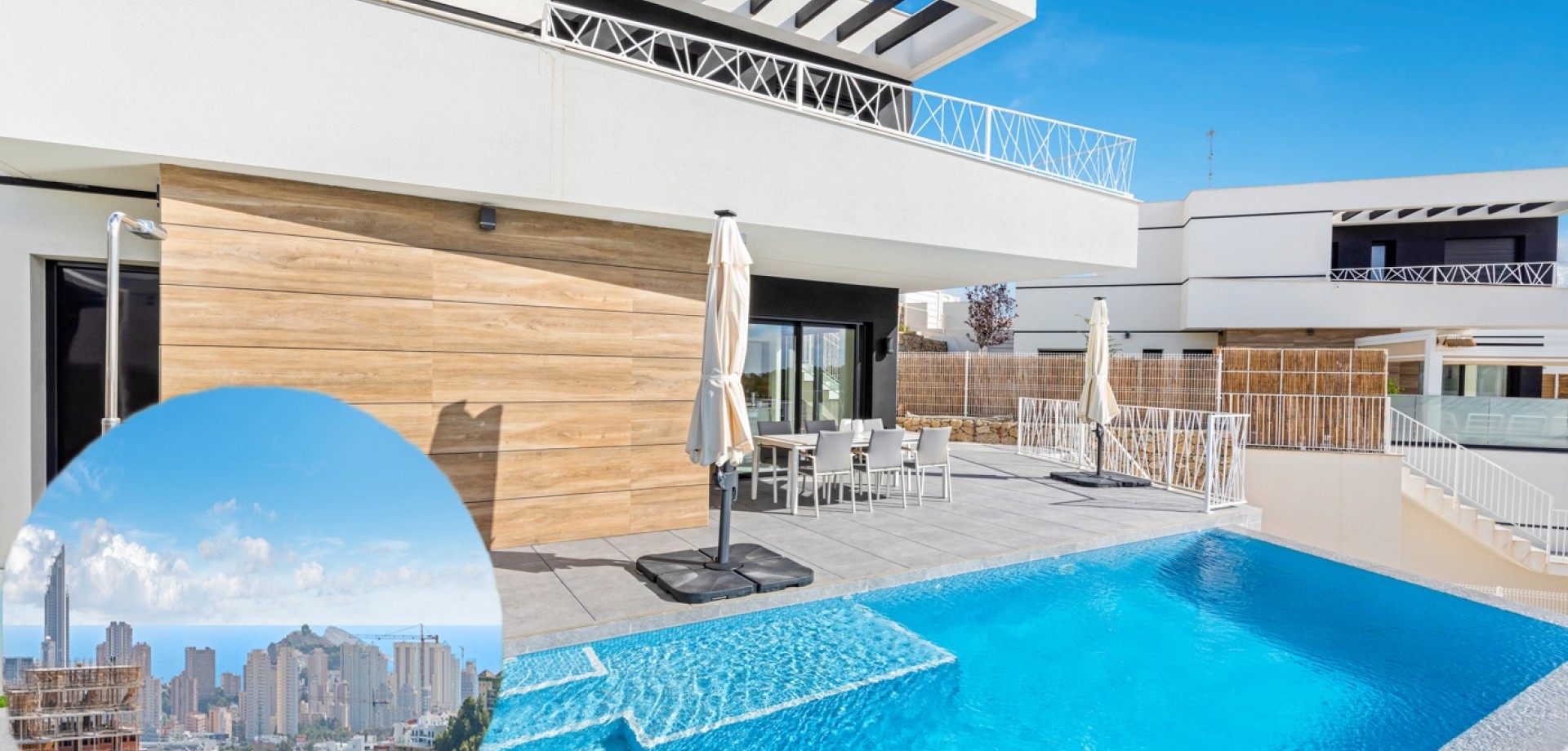 Komplett möblierte, moderne Villa in Finestrat mit spektakulärem Blick über die Skyline von Benidorm Hoch oben im prestigeträchtigen Stadtteil Finestrat gelegen, bietet diese wunderschöne, komplett eingerichtete Villa einen atemberaubenden Blick auf die berühmte Skyline von Benidorm und das glitzernde Mittelmeer. Das Haus wurde im Hinblick auf luxuriöses Wohnen konzipiert und verfügt über 3 geräumige Schlafzimmer und 3 moderne Badezimmer, was es perfekt für Familien oder Gäste macht. Die Villa verfügt über einen geräumigen, offenen Wohnraum, der Innen- und Außenbereiche nahtlos miteinander verbindet. Betreten Sie Ihren privaten Rückzugsort: einen kristallklaren Swimmingpool mit einem ruhigen Ruhebereich und einer erfrischenden Außendusche, perfekt zum Sonnenbaden oder zum stilvollen Entspannen. In erhöhter Lage gelegen, vereint dieses Haus Privatsphäre und unvergleichliche Ausblicke und schafft ein Gefühl von Ruhe und Exklusivität. Das elegante Design wird durch hochwertige Oberflächen und den zusätzlichen Komfort einer vollständigen Möblierung ergänzt und sorgt so für ein reibungsloses Umzugserlebnis. Egal, ob Sie den Sonnenuntergang auf der Terrasse genießen oder mit Panoramablick speisen, diese Villa verkörpert das Beste des mediterranen Lebens – perfekt, um das ganze Jahr über zu genießen.