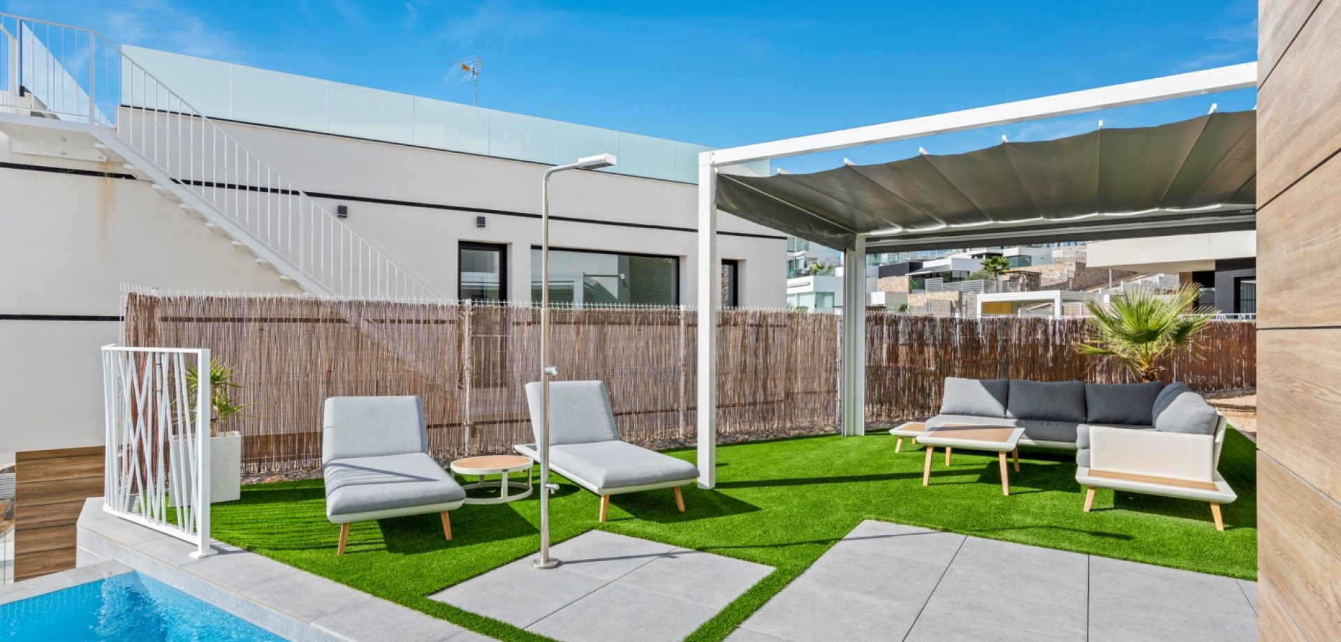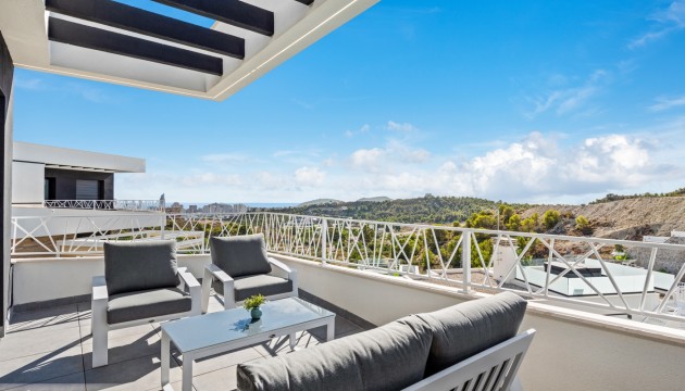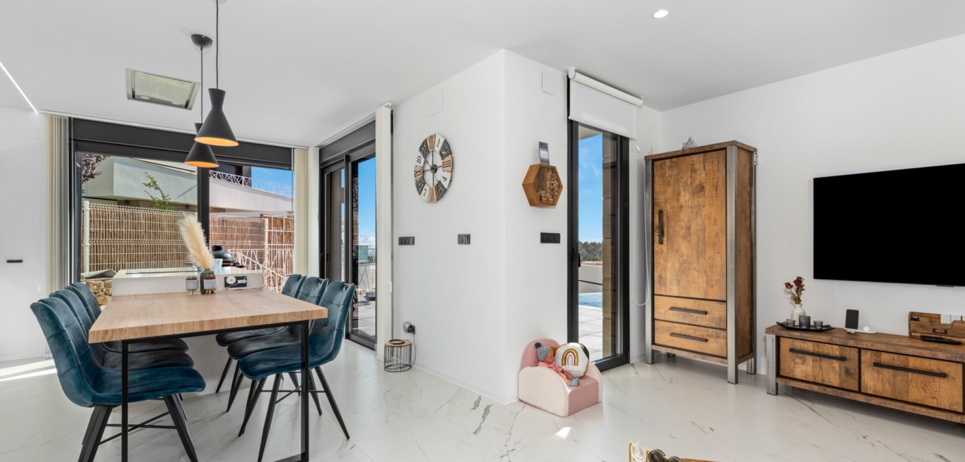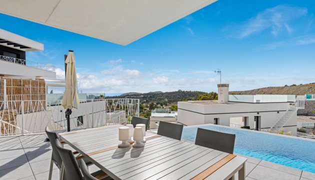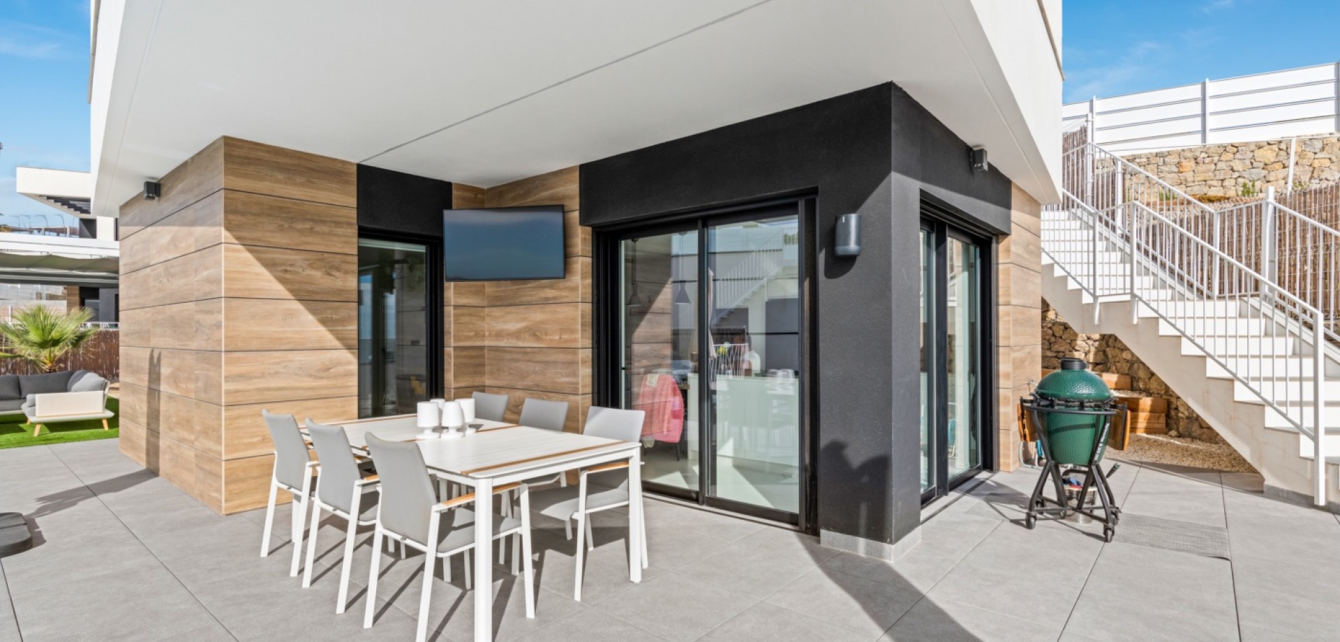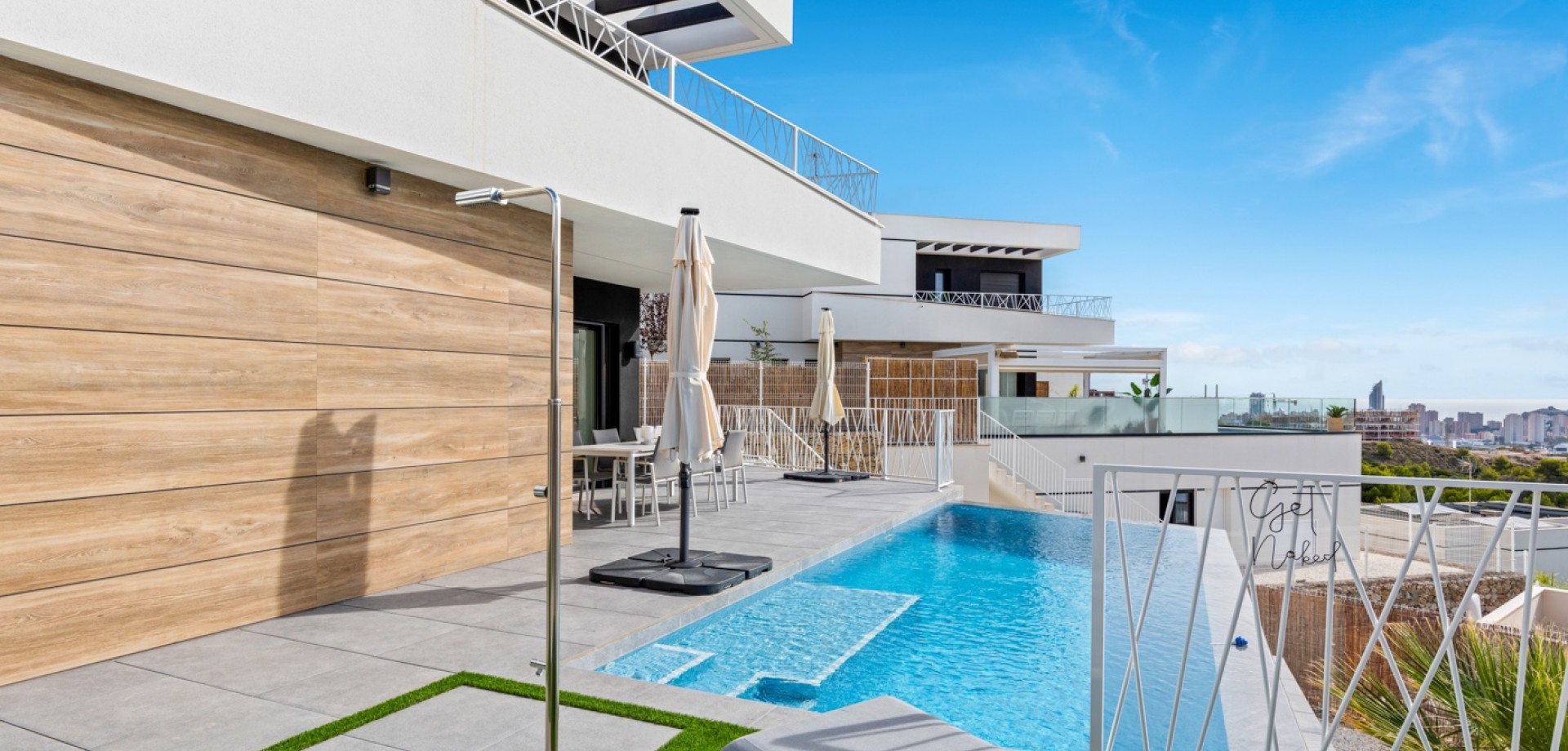 Komplett möblierte, moderne Villa in Finestrat mit spektakulärem Blick über die Skyline von Benidorm Hoch oben im prestigeträchtigen Stadtteil Finestrat gelegen, bietet diese wunderschöne, komplett eingerichtete Villa einen atemberaubenden Blick auf die berühmte Skyline von Benidorm und das glitzernde Mittelmeer. Das Haus wurde im Hinblick auf luxuriöses Wohnen konzipiert und verfügt über 3 geräumige Schlafzimmer und 3 moderne Badezimmer, was es perfekt für Familien oder Gäste macht. Die Villa verfügt über einen geräumigen, offenen Wohnraum, der Innen- und Außenbereiche nahtlos miteinander verbindet. Betreten Sie Ihren privaten Rückzugsort: einen kristallklaren Swimmingpool mit einem ruhigen Ruhebereich und einer erfrischenden Außendusche, perfekt zum Sonnenbaden oder zum stilvollen Entspannen. In erhöhter Lage gelegen, vereint dieses Haus Privatsphäre und unvergleichliche Ausblicke und schafft ein Gefühl von Ruhe und Exklusivität. Das elegante Design wird durch hochwertige Oberflächen und den zusätzlichen Komfort einer vollständigen Möblierung ergänzt und sorgt so für ein reibungsloses Umzugserlebnis. Egal, ob Sie den Sonnenuntergang auf der Terrasse genießen oder mit Panoramablick speisen, diese Villa verkörpert das Beste des mediterranen Lebens – perfekt, um das ganze Jahr über zu genießen.