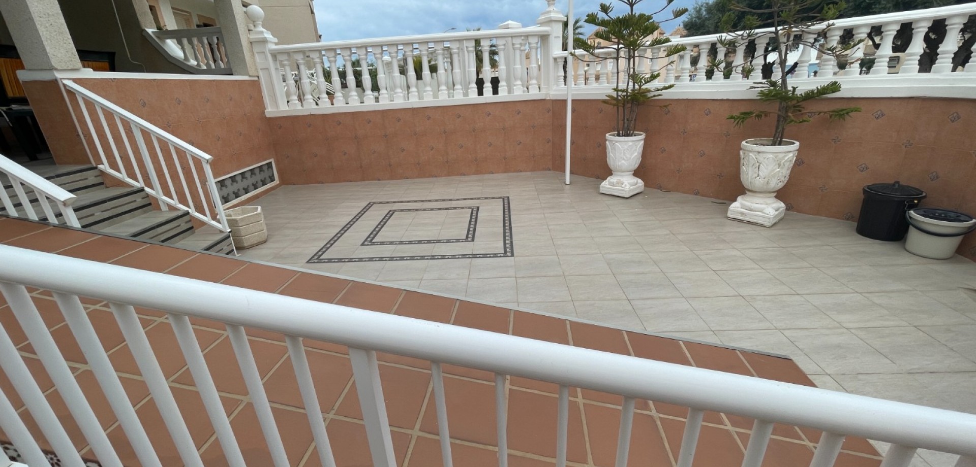 Exklusives Reihenhaus in einer der besten Lagen von Guardamar, nur 300 Meter vom Strand entfernt Wir präsentieren dieses prächtige Reihenhaus, das in einer der privilegiertesten Lagen von Guardamar del Segura liegt. Nur 300 Meter vom Meer entfernt, vereint diese Immobilie perfekt Ruhe, Komfort und Nähe zu allen wesentlichen Dienstleistungen: Supermärkte, Restaurants, Geschäfte, Parks und Freizeitbereiche – alles in fußläufiger Entfernung. Gelegen in einer gepflegten Wohnanlage mit Gemeinschaftspool, zeichnet sich dieses Haus durch seine Geräumigkeit, Funktionalität und Potenzial sowohl als Familienresidenz als auch als Investition für Ferienvermietungen aus. Das Haus verfügt über eine große Terrasse, ideal, um das mediterrane Klima zu genießen, sowie über eine geräumige private Garage. Es hat derzeit vier Schlafzimmer mit der Möglichkeit, ein fünftes ohne bauliche Veränderungen hinzuzufügen. Darüber hinaus bietet es zwei vollständige Badezimmer, eine große separate Küche mit Stauraum und durchdachte Details für den täglichen Komfort. Ein großer Vorteil dieser Immobilie ist, dass sie mit einem Aufzug für Menschen mit eingeschränkter Mobilität ausgestattet ist, der eine einfache Bewegung zwischen den Etagen ohne architektonische Barrieren ermöglicht. Jeder Raum wurde so gestaltet, dass er maximalen Komfort bietet, einschließlich Doppelverglasung in jedem Zimmer, was eine ausgezeichnete Schall- und Wärmedämmung gewährleistet und so für Ruhe und Entspannung im Inneren sorgt. Eine ideale