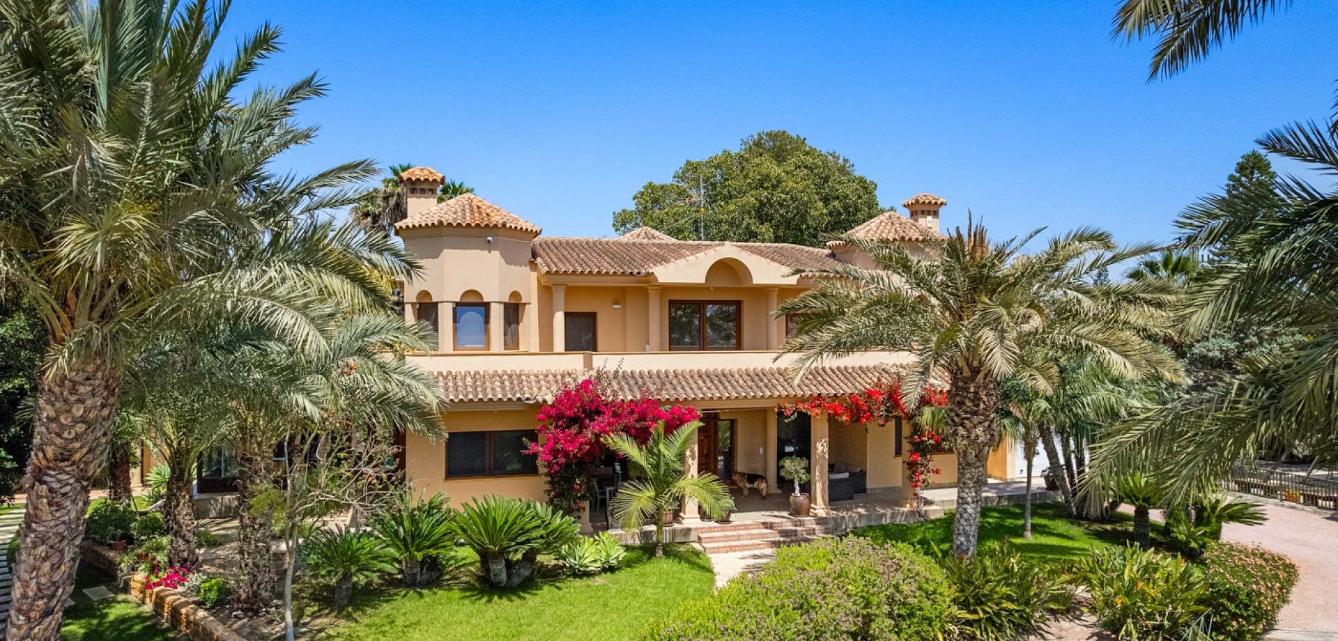 Willkommen in dieser wunderschönen Immobilie in einem beliebten Viertel von Elche. Das Anwesen liegt auf einem großen Grundstück von 4.750 m². Der Großteil des Hauses wurde seit 2019 komplett renoviert. Das Haupthaus besteht aus zwei Etagen. Im Erdgeschoss befinden sich ein geräumiger Eingangsbereich, ein Wohn- und Esszimmer, eine neu renovierte Küche, eine Waschküche, ein Schlafzimmer, ein Badezimmer sowie ein Familienzimmer/verglaste Terrasse mit herrlichem Blick auf den Garten und den Pool. Im Obergeschoss finden Sie vier Doppelzimmer und zwei Badezimmer sowie insgesamt drei Balkone. Vom Hauptschlafzimmer aus haben Sie außerdem Zugang zu einem großen begehbaren Kleiderschrank. Das Untergeschoss ist sehr geräumig und bietet viel Potenzial. Derzeit wird es als Fitnessraum/Kinderzimmer genutzt. Auf dieser Ebene befindet sich auch der Technikraum. Das Grundstück verfügt über großzügige und gepflegte Außenbereiche. Vor dem Betreten des Hauses finden Sie eine große Veranda mit viel Schatten für die warmen Sommertage. Der Garten ist wunderschön und bietet zudem eine voll ausgestattete Außenküche. Am Pool gibt es zudem einen cleveren Unterbau, der aus zwei Umkleideräumen, einem Abstellraum, einem Badezimmer und einer Dusche besteht. Dieser Bereich ist überdacht und über Treppen zugänglich. Auf dem Grundstück befindet sich außerdem eine Doppelgarage mit automatischem Tor. Für weitere Informationen oder zur Vereinbarung eines Besichtigungstermins kontaktieren Sie uns bitte!