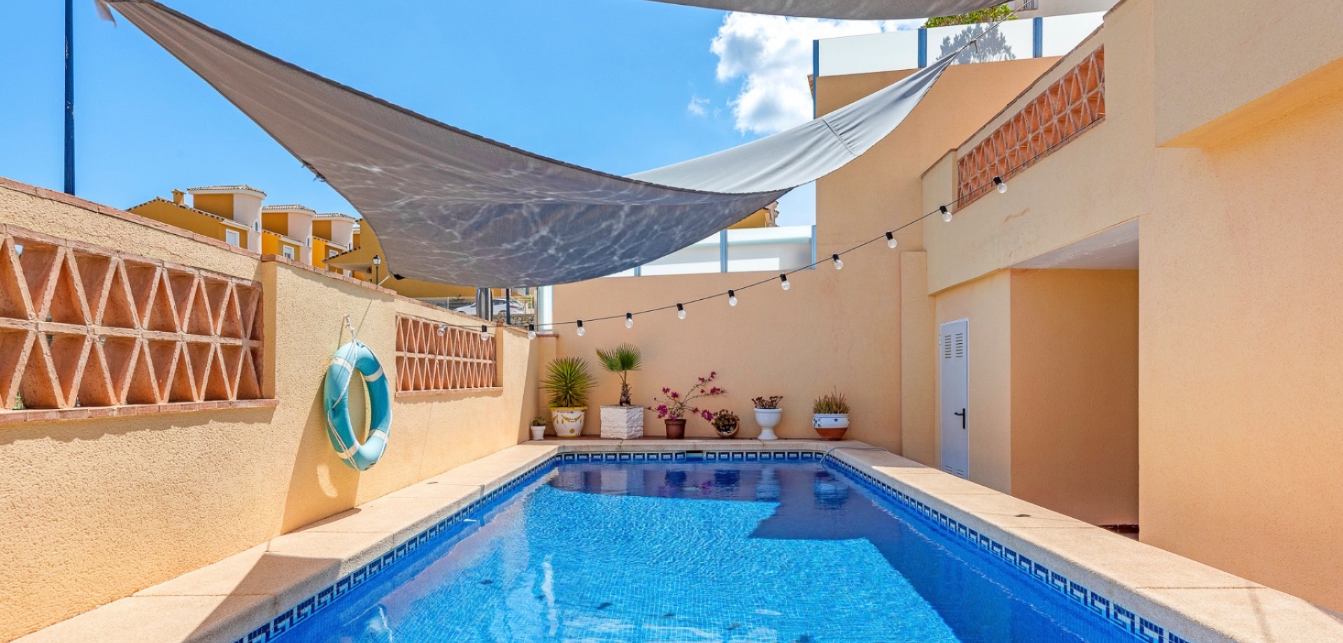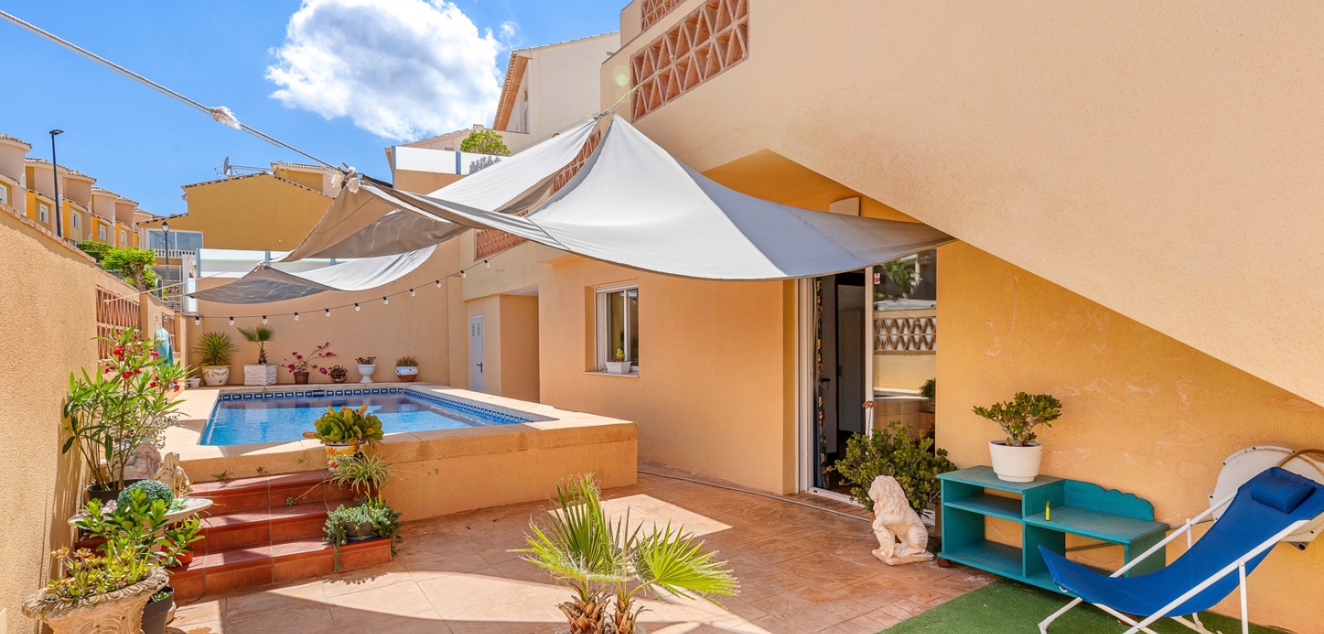 Diese Immobilie befindet sich in der Wohngegend San Rafael in Alfaz del Pi und bietet eine praktische Raumaufteilung über drei Etagen mit einer bebauten Fläche von 263,65 m² auf einem 319,10 m² großen Grundstück. Im obersten Stockwerk befinden sich zwei Schlafzimmer, jeweils mit eigenem Bad. Eines der Schlafzimmer verfügt über einen kleinen Anbau mit einem zusätzlichen Bett. Beide Schlafzimmer haben Zugang zu einem gemeinsamen Balkon. Das Erdgeschoss besteht aus einem Wohnzimmer mit Kamin, einer Küche, einem Schlafzimmer und einem Badezimmer. Alle Räume auf dieser Etage bieten direkten Zugang zu den Außenbereichen und sorgen für viel Tageslicht. Im Untergeschoss gibt es ein Schlafzimmer, ein weiteres Zimmer, das derzeit als Abstellraum genutzt wird und Zugang zu einem größeren Lagerraum hat, sowie einen Freizeitraum mit Zugang zur Garage. Von dieser Etage gelangt man auch zur privaten Poolanlage. Zusätzlich gibt es einen separaten Abstellraum neben dem Pool und viel Außenfläche rund um das Haus. Die Immobilie liegt in einer ruhigen Wohngegend, in der Nähe von Supermärkten, Schulen, medizinischen Einrichtungen und dem Stadtzentrum von Alfaz del Pi. Sie bietet eine funktionale Wohnlösung mit Kamin und privatem Pool in guter, ruhiger Lage.