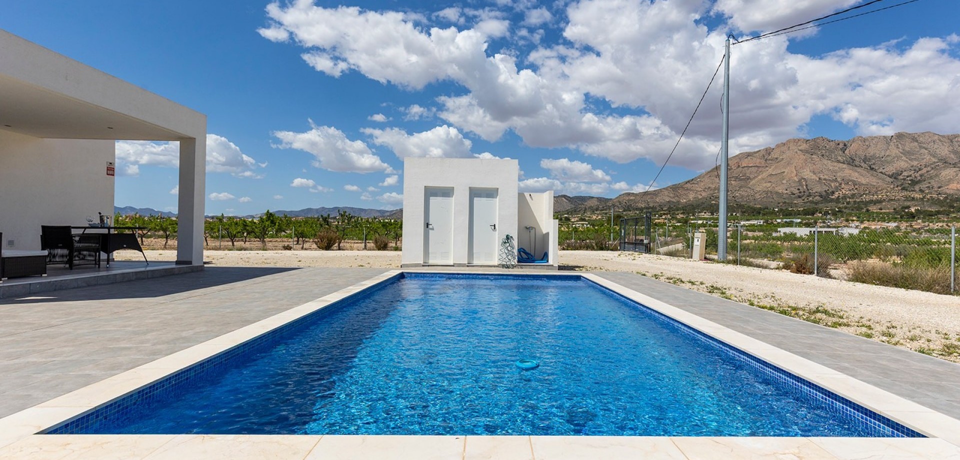 Träumen Sie von Ruhe, Platz und Luxus in der Sonne? Diese wunderschöne Neubauvilla im charmanten Macisvenda bietet all das. Auf einem großzügigen Grundstück von 10.536 m² gelegen, können Sie hier ultimative Privatsphäre, eine wunderschöne Aussicht und die Freiheit genießen, das Leben im Freien ganz nach Ihren Wünschen zu gestalten. Die moderne Architektur, kombiniert mit einer hochwertigen Ausstattung, sorgt für ein komfortables und stilvolles Wohnumfeld. Aufteilung des Hauses: 3 geräumige Schlafzimmer, jedes mit viel natürlichem Licht und einer schönen Aussicht 2 moderne Badezimmer mit luxuriöser Ausstattung und Massagebadewanne oder begehbarer Dusche. Es gibt auch eine zusätzliche Dusche und Toilette im Nebengebäude in der Nähe des Pools. Offenes Wohn-/Esszimmer mit direktem Zugang zur Terrasse und zum Pool Elegante, voll ausgestattete Küche Treten Sie nach draußen und lassen Sie sich von dem wunderschönen 32 m² großen privaten Swimmingpool verzaubern, der perfekt positioniert ist, um die Sonne und den Blick auf die umliegende Natur zu genießen. Ob Sie ein dauerhaftes Zuhause, einen luxuriösen Urlaubsort oder eine wertvolle Investition suchen – diese Villa bietet alle Zutaten für ein komfortables Leben in einer idyllischen Umgebung. Hauptmerkmale: Neubau – bezugsfertig Alles auf einer Ebene, keine Treppen. Großes Grundstück mit vielen Möglichkeiten Absolute Privatsphäre Schwimmbad, Terrasse und moderne Ausstattung Nur wenige Minuten von Annehmlichkeiten und ca. 50 Minuten von der Küste entfernt Fordern Sie noch heute eine Besichtigung an und lassen Sie sich von diesem einzigartigen Ort überraschen.