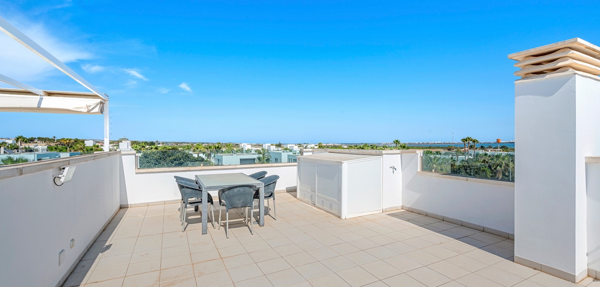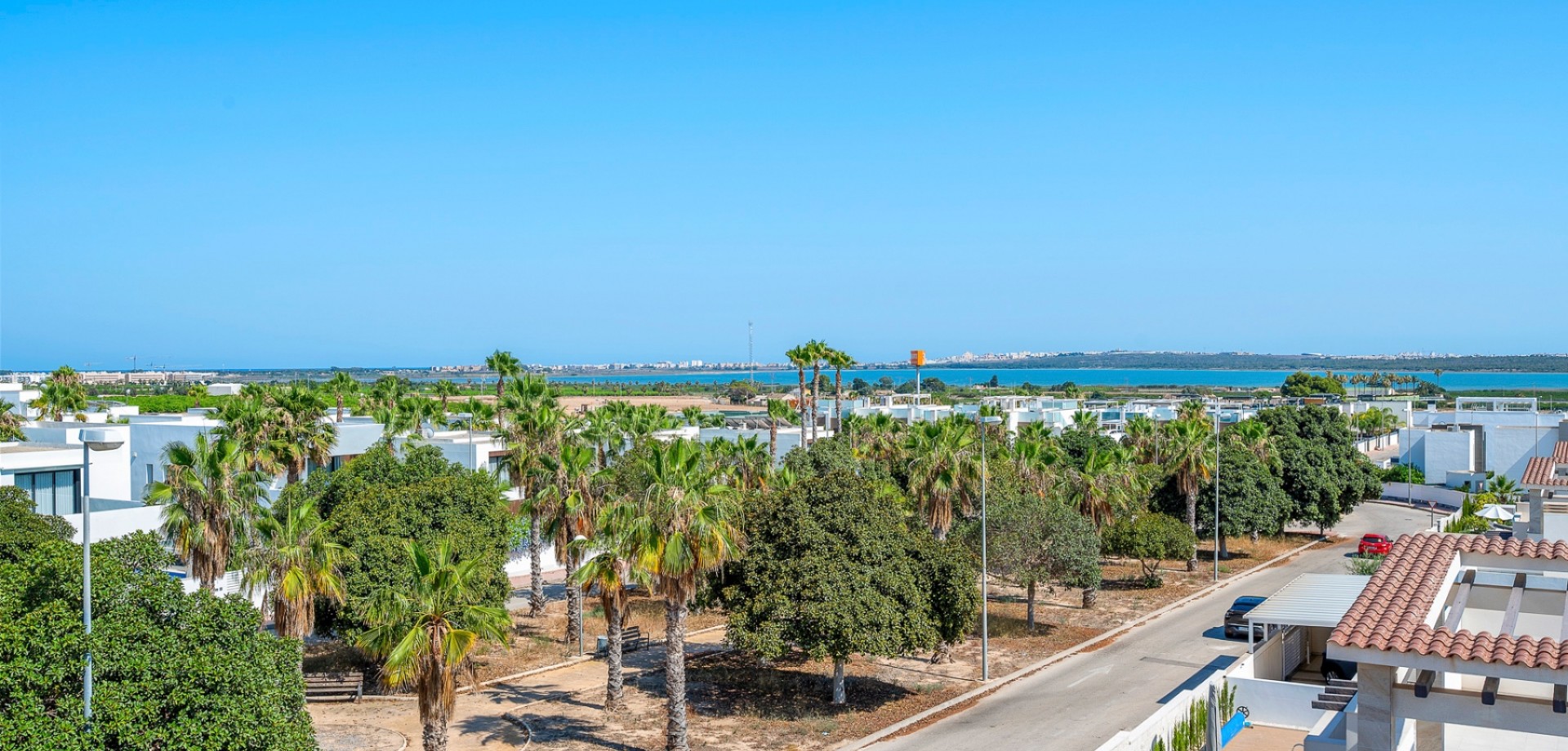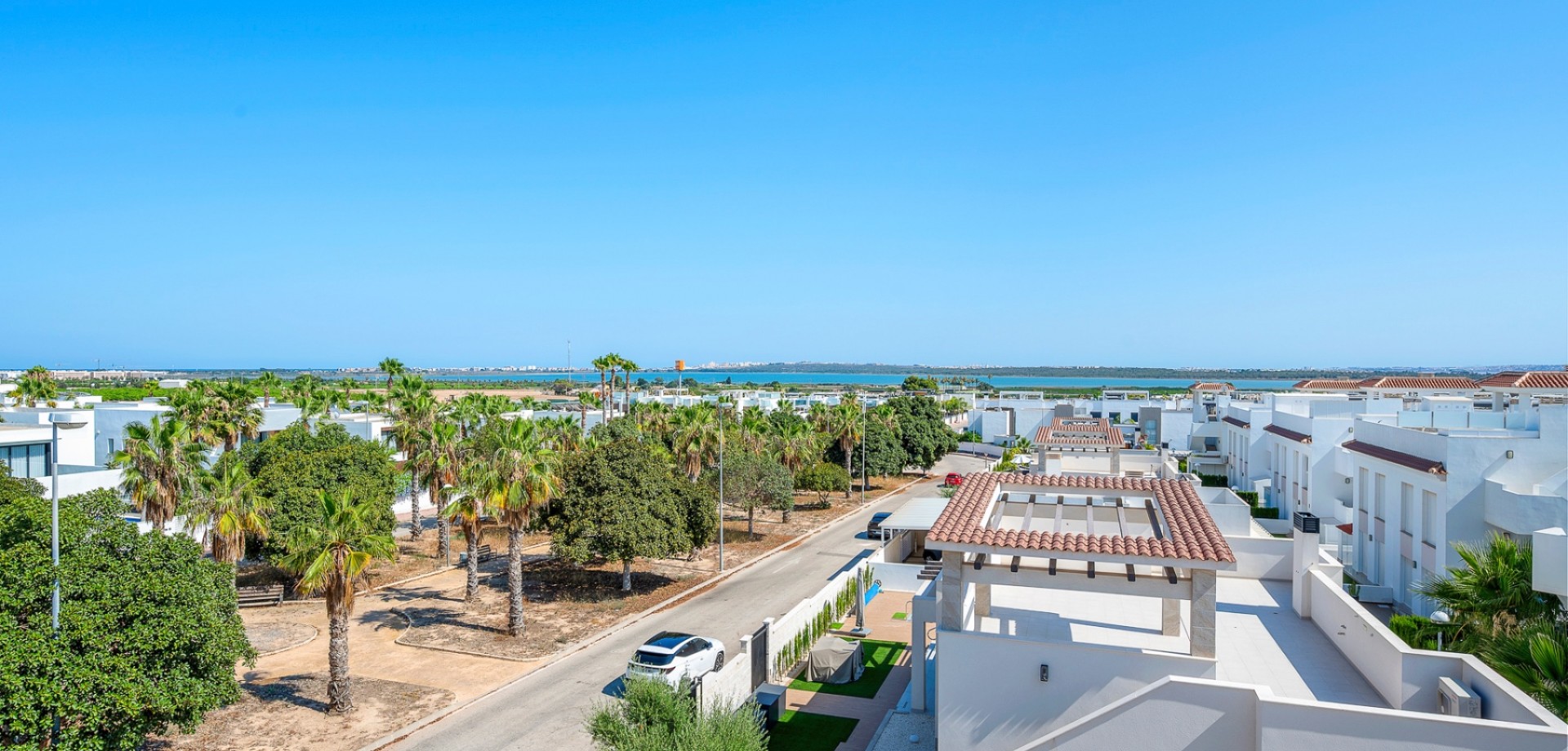 Diese Immobilie befindet sich in der Wohnanlage Riva in Doña Pepa (Ciudad Quesada). Es handelt sich um eine Doppelhaushälfte, die sich über vier Etagen erstreckt. Im Untergeschoss gibt es ein Schlafzimmer, ein komplettes Badezimmer, einen Freizeitraum und Abstellfläche. Das Erdgeschoss verfügt über ein Wohn- und Esszimmer mit Zugang zur Veranda und Terrasse, eine separate Küche mit Zugang zum Patio sowie ein Badezimmer. Im ersten Stock befinden sich zwei Doppelschlafzimmer mit Einbauschränken, ein Badezimmer, ein Ankleidezimmer in der Hauptsuite und Balkone. Die oberste Etage bietet ein privates Solarium mit Waschküche und Blick auf die Lagunen von Torrevieja.