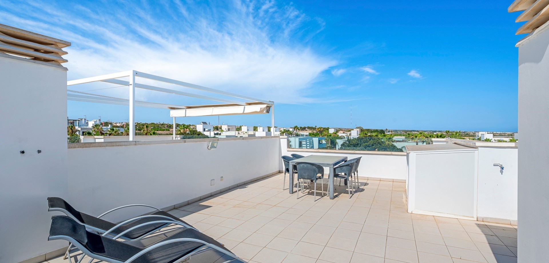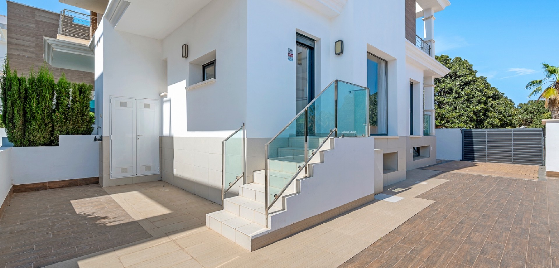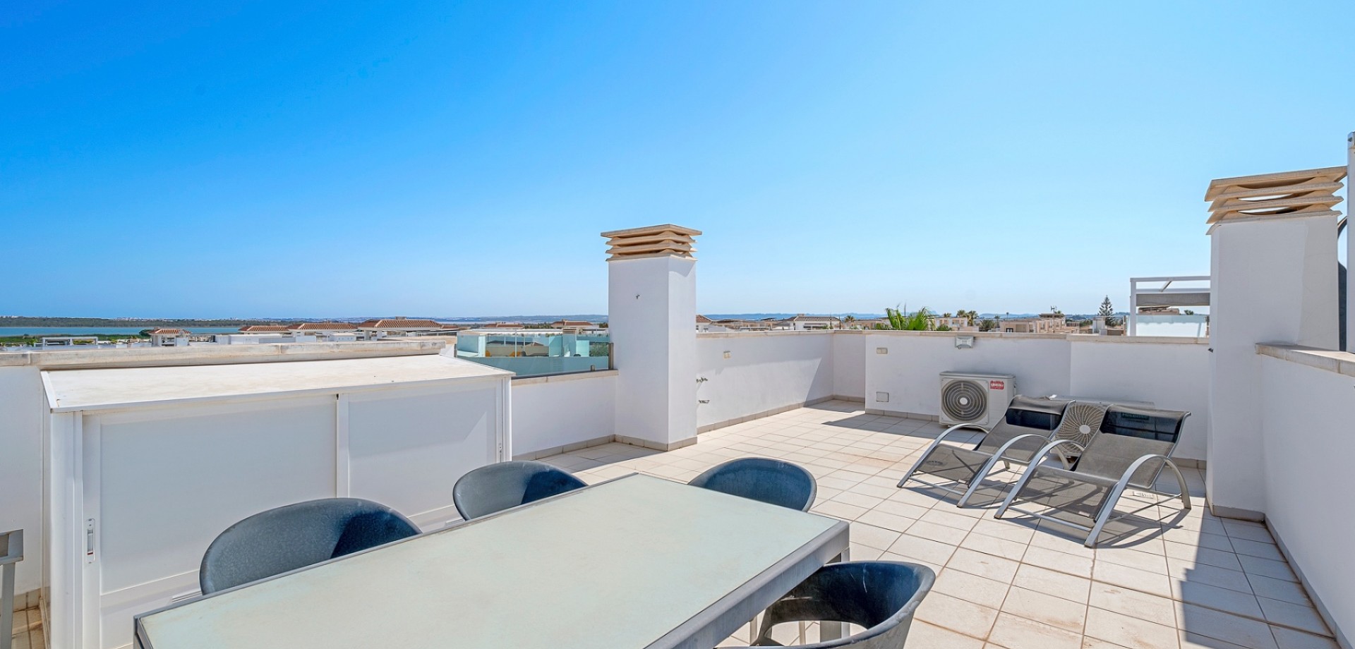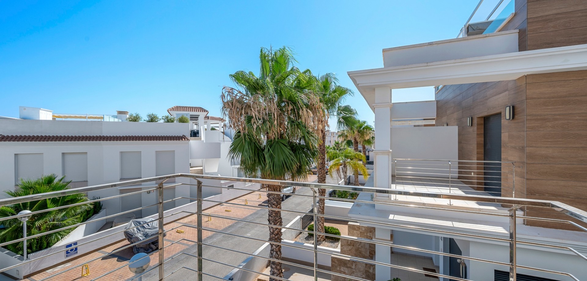 Diese Immobilie befindet sich in der Wohnanlage Riva in Doña Pepa (Ciudad Quesada). Es handelt sich um eine Doppelhaushälfte, die sich über vier Etagen erstreckt. Im Untergeschoss gibt es ein Schlafzimmer, ein komplettes Badezimmer, einen Freizeitraum und Abstellfläche. Das Erdgeschoss verfügt über ein Wohn- und Esszimmer mit Zugang zur Veranda und Terrasse, eine separate Küche mit Zugang zum Patio sowie ein Badezimmer. Im ersten Stock befinden sich zwei Doppelschlafzimmer mit Einbauschränken, ein Badezimmer, ein Ankleidezimmer in der Hauptsuite und Balkone. Die oberste Etage bietet ein privates Solarium mit Waschküche und Blick auf die Lagunen von Torrevieja.