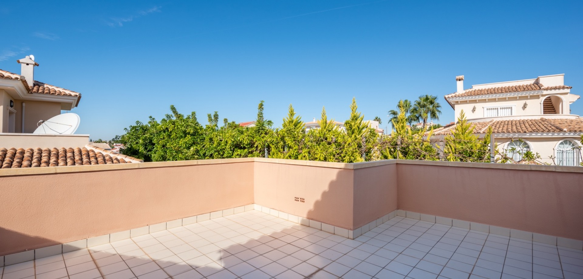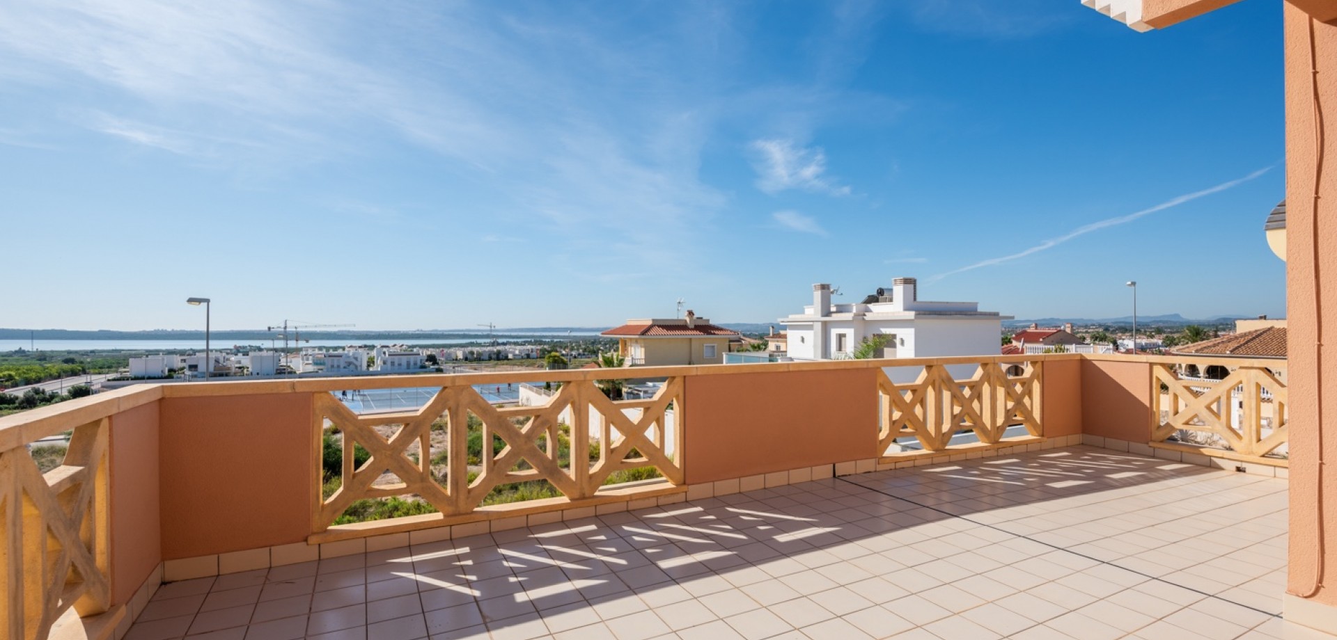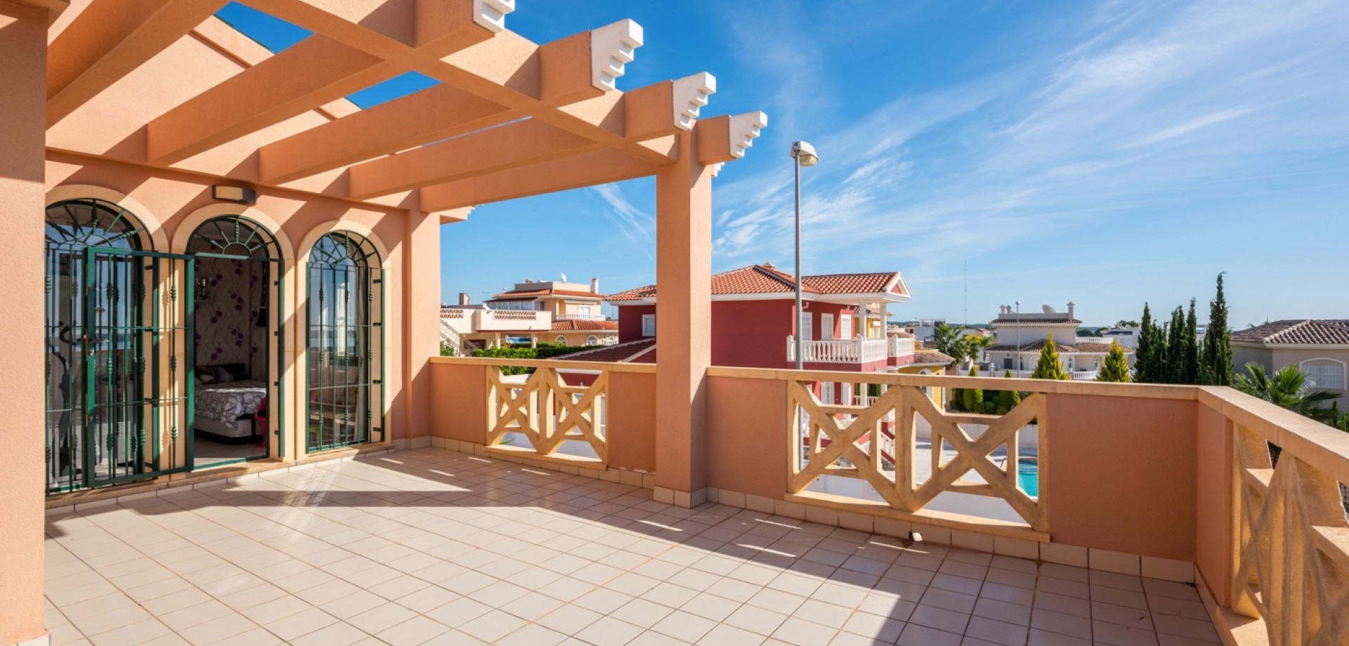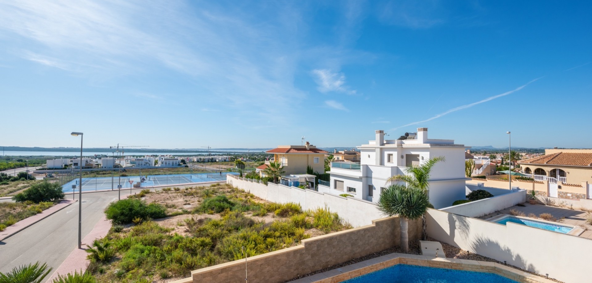 Diese wunderschöne Villa mit 4 Schlafzimmern befindet sich in Ciudad Quesada und bietet einen atemberaubenden Blick auf den Salzsee. Die Villa hat eine Wohnfläche von 192 m² und erstreckt sich über zwei Etagen. Sie besteht aus 4 Doppelzimmern, 2 Badezimmern, einer modernen Küche und einem großen Wohnzimmer mit Essbereich und Lounge. Die Villa verfügt außerdem über einen Abstell- / Hauswirtschaftsraum. Die Villa ist mit Klimaanlage ausgestattet. AußenbereichDie Villa befindet sich auf einem nach Süden ausgerichteten Grundstück von 546 m². Sie verfügt über einen schönen gefliesten Garten, in dem Sie einen Swimmingpool und viel Platz für Sitzbereiche im Freien und Sonnenliegen finden. Am Eingang gibt es außerdem eine große überdachte Terrasse. Hinter dem Haus befindet sich ein großer Parkplatz mit Platz für mehrere Autos. Die Villa bietet zudem eine große Terrasse im ersten Stock mit unglaublichem Blick über die Salzseen und Torrevieja. UmgebungCiudad Quesada ist ein gemütlicher und beliebter Ort an der Costa Blanca. Hier finden Sie Geschäfte, Restaurants, Cafés, Bars, Apotheken, Banken, Friseure, medizinische und zahnärztliche Dienste und vieles mehr. In der Hauptstraße wurde kürzlich ein neues Einkaufszentrum mit mehreren Geschäften gebaut. Ciudad Quesada bietet außerdem zahlreiche Aktivitäten für die ganze Familie, wie den berühmten Golfplatz La Marquesa, Bowling, Minigolf, Tennisplätze, Fußballfelder, Fitnessstudios, Spas, einen saisonalen Wasserpark und vieles mehr.