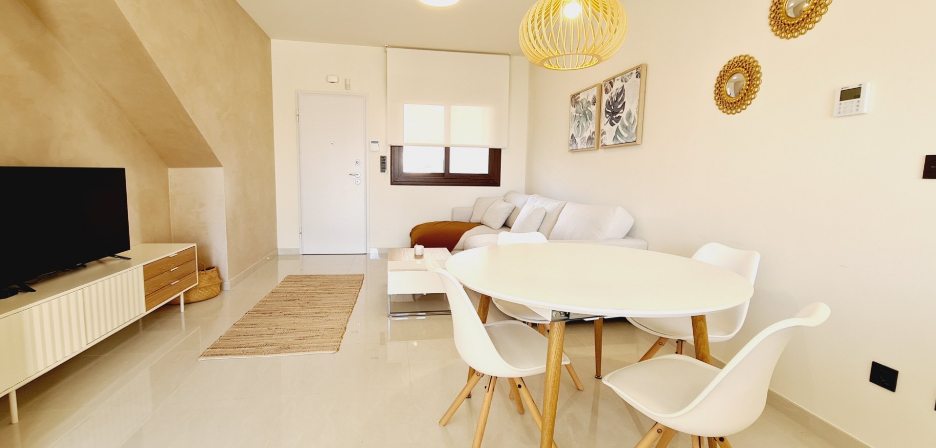Dieser moderne Neubau-Bungalow in Los Balcones befindet sich in einer der beliebtesten Wohngegenden von Torrevieja. Ideal als dauerhafter Wohnsitz, Ferienimmobilie oder Investition an der Costa Blanca. Die Immobilie verfügt über einen hellen Wohn-Essbereich mit offener Küche, 2 Schlafzimmer und 2 Badezimmer. Vom Wohnbereich aus gelangt man auf eine private Terrasse von 10 m², ideal zum Entspannen und Genießen des mediterranen Klimas. Teil einer gepflegten Wohnanlage mit Gemeinschaftspool und Grünflächen, in der Nähe aller wichtigen Einrichtungen und nur wenige Autominuten von den Stränden und dem Zentrum von Torrevieja entfernt. Ausstattung: 2 Schlafzimmer und 2 Badezimmer Offene Küche mit Wohnbereich Private Terrasse (10 m²) Neubau Gemeinschaftspool Ruhige Wohnlage Sehr gute Investitionsmöglichkeit ???? Kontaktieren Sie uns für weitere Informationen oder einen Besichtigungstermin.