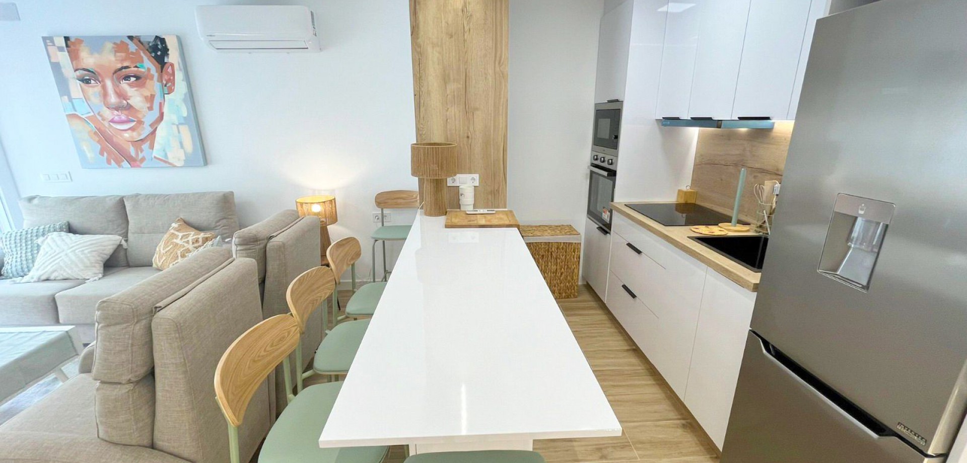 Diese renovierte Drei-Zimmer-Wohnung befindet sich in einer der praktischsten Küstenregionen von Punta Prima, nur einen kurzen Spaziergang von Cala Piteras und dem bekannten Restaurant Nautilus mit seinen panoramischen Meerblicken entfernt. Die Immobilie kombiniert moderne Innenausstattungen, eine praktische Raumaufteilung und eine begehrte Lage innerhalb einer etablierten Wohnanlage. Sie ist vollständig möbliert und sofort bezugsfertig. Beim Betreten werden Sie in einen offenen Wohn-, Küchen- und Essbereich empfangen. Dieser zentrale Raum bildet das Herz des Hauses und wurde so gestaltet, dass er sowohl Entspannung als auch Geselligkeit unterstützt. Die Küche ist komplett renoviert und umfasst moderne Geräte, eine Insellösung und großzügigen Stauraum. Die Immobilie bietet drei Schlafzimmer. Das Hauptschlafzimmer verfügt über ein eigenes Badezimmer, zwei zusätzliche Schlafzimmer und ein gut ausgestattetes Badezimmer. Die Wohnanlage umfasst einen Gemeinschaftspool, der von einem angelegten Garten umgeben ist. Diese Bereiche bieten zusätzlichen Platz, um den mediterranen Lebensstil zu genießen, egal ob Sie schwimmen, sich sonnen oder im Schatten entspannen möchten. Punta Prima ist eine der etabliertesten Küstenregionen an der Orihuela Costa, bekannt für seine zugänglichen Strände, Uferpromenaden und die Nähe zu wichtigen Dienstleistungen. Cala Piteras, die nur wenige Gehminuten entfernt liegt, ist eine beliebte Bucht, die für ihr klares Wasser und malerische Küstenwege bekannt ist. Ebenso in der Nähe befindet sich das Restaurant Nautilus, einer der meistbesuchten Gastronomiebetriebe an der Küste, das beeindruckende Ausblicke auf das Mittelmeer bietet. Die Lage der Immobilie in Punta Prima gewährleistet einen einfachen Zugang zu Supermärkten, Cafés, Apotheken, öffentlichen Verkehrsmitteln und den umfangreichen Annehmlichkeiten der Orihuela Costa. La Zenia Boulevard, mehrere Golfplätze und zahlreiche Strände entlang der Küste sind alle in kurzer Fahrzeit erreichbar. Der Flughafen Alicante ist etwa 45 Minuten entfernt, und der Flughafen Murcia ist rund 35 Minuten entfernt, was eine hervorragende ganzjährige Anbindung bietet.
