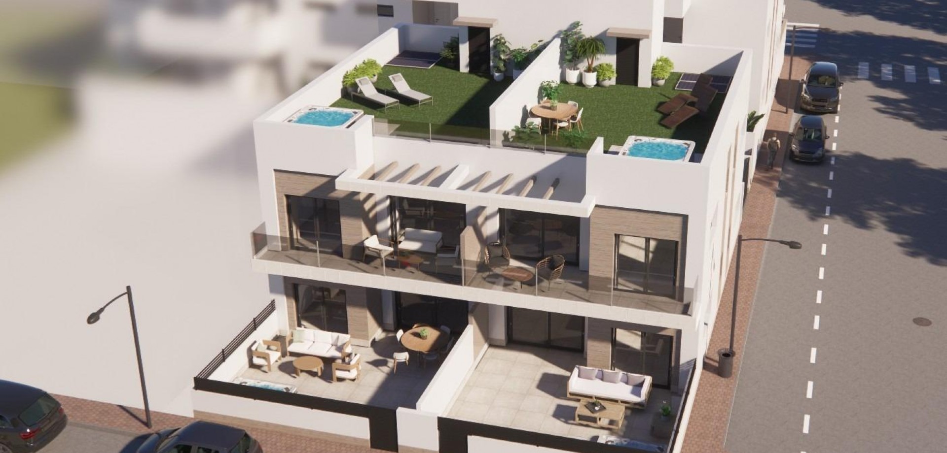 Neubauwohnungen in Rojales in der Nähe von Golfplätzen und Stränden Modernes Wohnen in einer aufstrebenden Gegend von Rojales Diese neue Wohnanlage befindet sich in einem modernen Erweiterungsgebiet der charmanten Stadt Rojales, im Herzen der Costa Blanca Süd. Das Projekt umfasst in seiner ersten Phase 14 neu gebaute Wohnungen, die Komfort, Qualität und eine ausgezeichnete Lage bieten. Die Wohngegend ermöglicht einen bequemen Zugang zu allen Dienstleistungen des täglichen Bedarfs wie Supermärkten, Restaurants, Banken und Apotheken und ist somit ideal sowohl für den dauerhaften Wohnsitz als auch für den Urlaub. Wahl zwischen Wohnungen im Erdgeschoss oder im obersten Stockwerk Die Wohnanlage bietet moderne Wohnungen mit 2 Schlafzimmern und 2 Badezimmern, darunter ein Hauptschlafzimmer mit eigenem Bad. Käufer können zwischen Wohnungen im Erdgeschoss mit großzügigen privaten Terrassen, die sich perfekt für das Leben im Freien eignen, oder Wohnungen im obersten Stockwerk mit Terrasse und privatem Solarium wählen, die ideal zum Sonnenbaden und Entspannen sind. Einige der Wohnungen im obersten Stockwerk sind mit dem Aufzug erreichbar, was zusätzlichen Komfort und Barrierefreiheit bietet. Hochwertige Ausstattung und Energieeffizienz Alle Wohnungen sind mit hochwertigen Materialien und modernen Ausstattungsmerkmalen gebaut. Die Badezimmer verfügen über Fußbodenheizung, Einbaumöbel mit Spiegeln und Duschwände. Die Küchen sind komplett möbliert und mit Elektrogeräten ausgestattet und bieten ein modernes und funktionales Design. Motorisierte Rollläden sind ebenso enthalten wie die Vorinstallation für eine Klimaanlage. Jede Immobilie profitiert außerdem von der Installation von 1-kW-Photovoltaik-Solarmodulen, die zu einer verbesserten Energieeffizienz und reduzierten Betriebskosten beitragen, sowie von der Vorinstallation für einen privaten Whirlpool. Parkplätze und Gemeinschaftskomfort Jedes Haus verfügt über einen privaten Parkplatz in der Tiefgarage, der Sicherheit und Komfort bietet. Das Wohndesign konzentriert sich auf Praktikabilität und modernes Wohnen und bietet eine ruhige Umgebung in einem gut geplanten neuen Stadtgebiet von Rojales. Lebensstil und Umgebung von Rojales Rojales ist eine traditionelle spanische Stadt, die für ihre freundliche Atmosphäre und ihre ausgezeichnete Lebensqualität bekannt ist. Sie bietet alle wichtigen Dienstleistungen sowie einen nahe gelegenen Naturpark, der sich ideal für Spaziergänge und Outdoor-Aktivitäten eignet. Die Gegend ist besonders bei Golfbegeisterten beliebt, da der Golfplatz La Marquesa weniger als 2 km entfernt ist und zwei weitere Golfplätze nur eine kurze Autofahrt entfernt liegen. Die mit der Blauen Flagge ausgezeichneten Strände von Guardamar del Segura sind nur 7 km entfernt und bieten lange Sandstrände und eine schöne Promenade. Wasserparks und Freizeiteinrichtungen in Rojales und Torrevieja sind ebenfalls in der Nähe. Entfernungen zu den wichtigsten Sehenswürdigkeiten Golfplatz La Marquesa: 2 km Strände von Guardamar: 7 km Torrevieja: 12 km Flughafen Alicante: 45 km Flughafen Murcia Corvera: 55 km Ihr neues Zuhause an der Costa Blanca Diese neu gebauten Apartments in Rojales bieten eine hervorragende Kombination aus Lage, Qualität und Lebensstil. Kontaktieren Sie uns noch heute, um weitere Informationen zu erhalten oder einen Besichtigungstermin zu vereinbaren und sich Ihr neues Zuhause an der Costa Blanca Süd zu sichern.