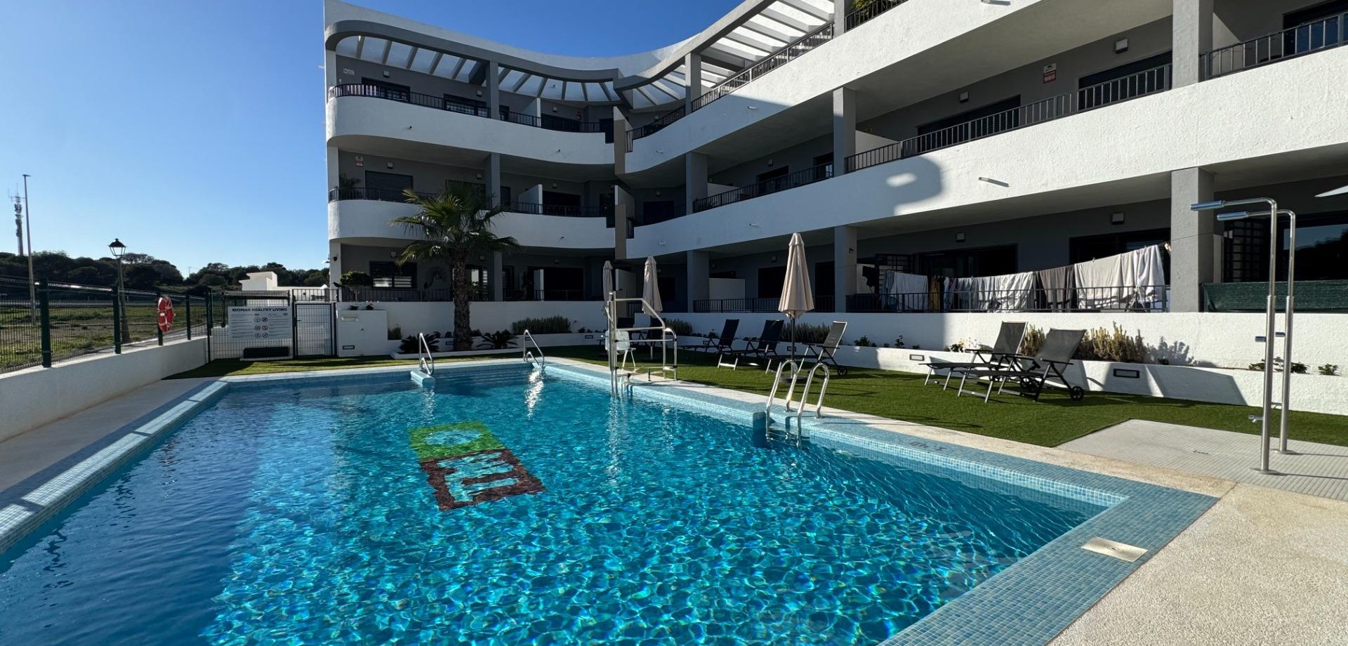 Elegante Erdgeschoss-PMR-Wohnung – Mil Palmeras~~Erleben Sie komfortables und stilvolles Leben an der Küste in dieser schönen Eckwohnung im Erdgeschoss, vollständig gestaltet und barrierefrei für Personen mit eingeschränkter Mobilität (PMR). Komfort, Sicherheit und Eleganz vereinen sich mühelos, sodass Sie oder Ihre Gäste sich frei und selbstständig bewegen können.~~Die Wohnung verfügt über 2 Schlafzimmer und ein modernes, voll ausgestattetes Badezimmer, alles mit Blick auf Barrierefreiheit und Benutzerfreundlichkeit. Dank der Ecklage und Ost–Süd-Ausrichtung genießt die Wohnung ganztägig natürliches Licht.~~Treten Sie hinaus in Ihren privaten Garten, ein sicherer und ruhiger Ort für morgendlichen Kaffee, entspannte Mittagessen oder ruhige Abende umgeben von Grün.~~Die Wohnung gehört zu einem prestigeträchtigen, gepflegten Komplex mit PMR-freundlichen Einrichtungen wie Gemeinschaftspool, Sonnenterrasse und komplett ausgestatteter Fitness. Die goldenen Strände von Mil Palmeras sind nur 5 Autominuten entfernt.~~Die Immobilie befindet sich in ausgezeichnetem Zustand und ist bezugsfertig, mit Klimaanlage, Einbauschränken, privatem Parkplatz und Abstellraum. Alles ist für ein sicheres, komfortables und barrierefreies Wohnen konzipiert.~~Eine seltene Gelegenheit, eine helle, barrierefreie und elegant gestaltete PMR-Wohnung nahe dem Meer zu besitzen.