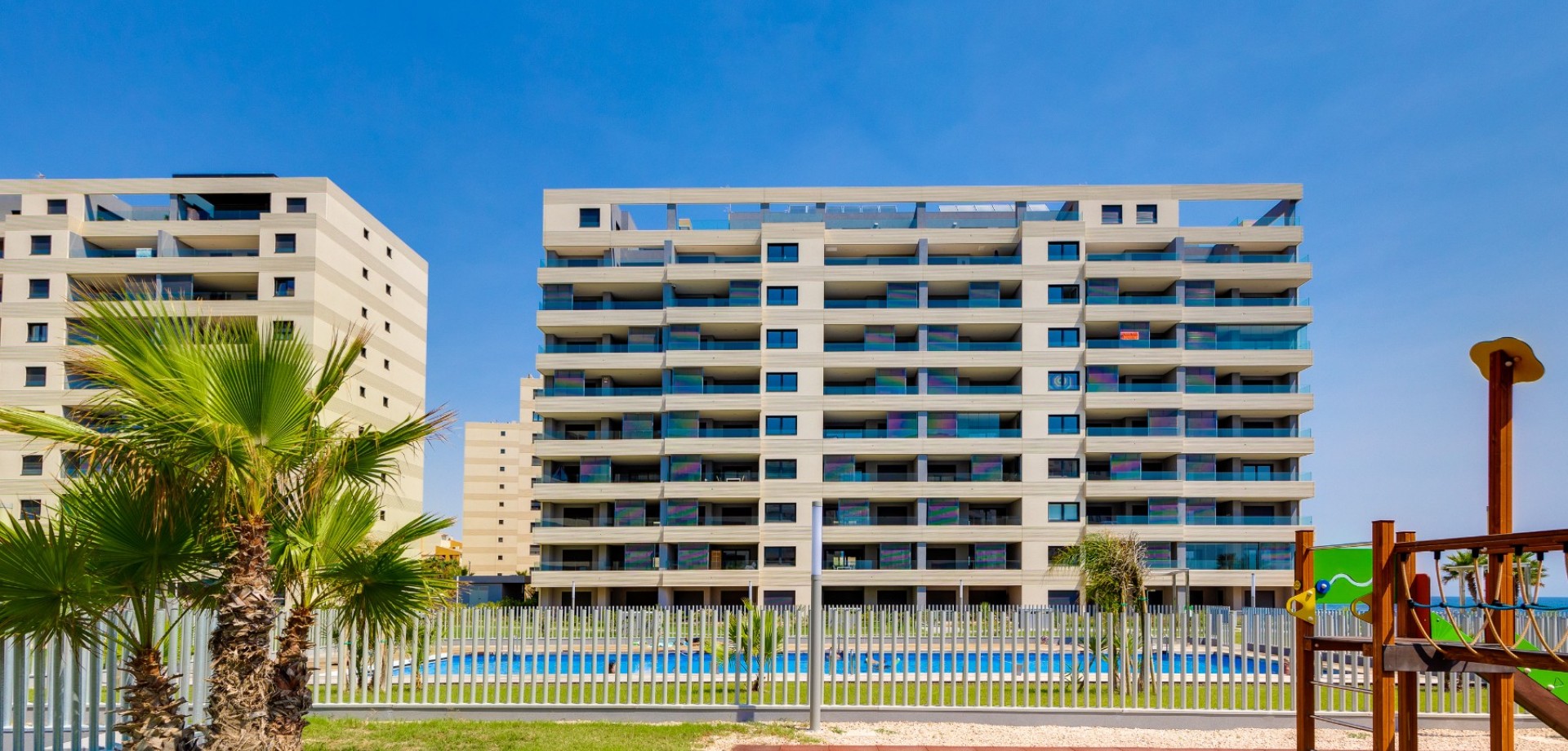 Träumen Sie davon, direkt am Mittelmeer zu wohnen? Dieses exklusive Apartment befindet sich in erster Strandreihe in Punta Prima , einer der begehrtesten Gegenden an der Costa Blanca. Hier erwachen Sie zum Rauschen der Wellen und genießen von Ihrer eigenen Terrasse aus einen spektakulären Meerblick. Die Wohnung ist Teil des renommierten Wohnprojekts Residencial Posidonia , das für seine moderne Architektur, hohe Qualität und fantastische Lage direkt am Meer bekannt ist. Die Wohnung besticht durch ihr modernes und stilvolles Design mit großen Fenstern, die viel Tageslicht hereinlassen und eine helle und luftige Atmosphäre schaffen. Die geräumige Terrasse ist mit einer Pergola ausgestattet, die angenehmen Schatten spendet und den perfekten Rahmen zum Entspannen, für Abendessen bei Sonnenuntergang und gemütliche Abende mit Familie und Freunden bietet. Das Haus wird komplett möbliert verkauft, sodass Sie direkt einziehen und vom ersten Tag an das Leben am Mittelmeer genießen können. Zur Wohnung gehören außerdem: Privater Parkplatz in der Tiefgarage eigener Abstellraum moderne Pergola auf der Terrasse Hochwertig und komplett möbliert Exklusive Gemeinschaftsbereiche Residencial Posidonia bietet seinen Bewohnern hervorragende Einrichtungen: großes Schwimmbad wunderschön angelegte Gartenbereiche Trainings- und Erholungsbereiche Direkter Fußweg zum Strand und zur Promenade Perfekte Lage Punta Prima ist bekannt für seine wunderschönen Strände, guten Restaurants und den hervorragenden Service. In der Nähe befinden sich außerdem das beliebte Einkaufszentrum La Zenia Boulevard sowie mehrere Golfplätze, Yachthäfen und malerische Gegenden. Dies ist eine einmalige Gelegenheit, sich eine exklusive Immobilie am Meer an der Costa Blanca zu sichern, die sich perfekt als Ferienhaus, Kapitalanlage oder ganzjähriger Wohnsitz in der Sonne eignet.