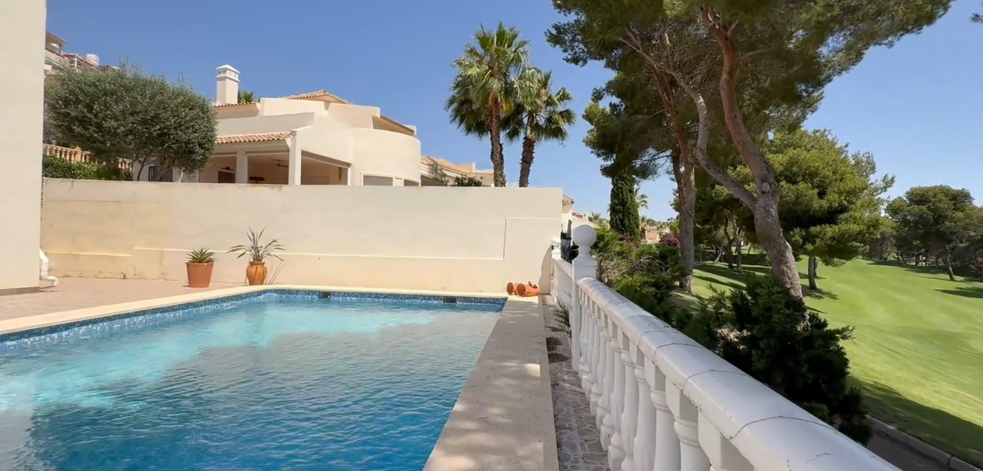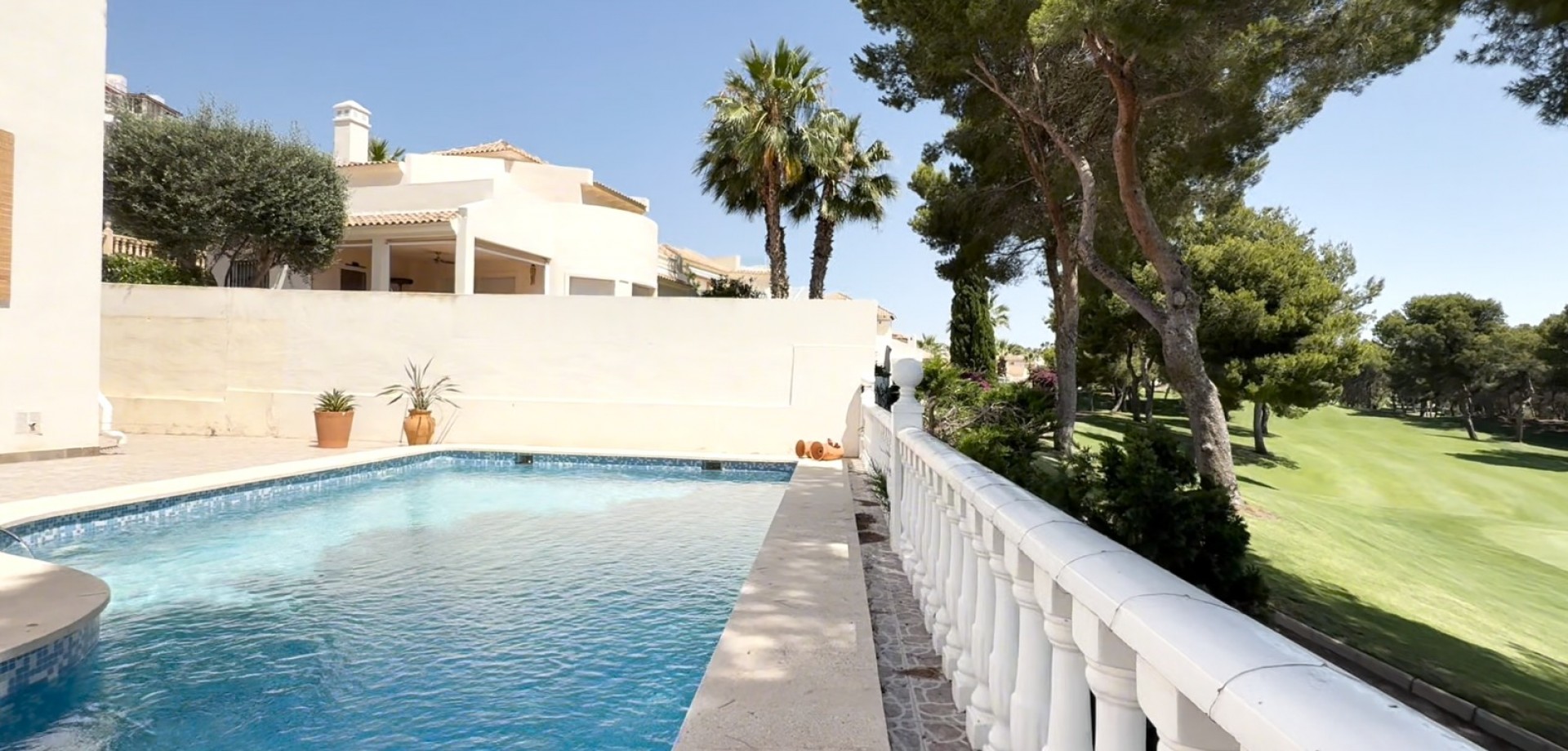 Große freistehende Villa mit 4 Schlafzimmern, 2 Bädern in erster Reihe zum Las Ramblas Golfplatz. Diese sehr gut gepflegte Villa verfügt außerdem über einen privaten Swimmingpool, eine Garage und eine Dachterrasse. Nicht nur in der Nähe des Golfplatzes, sondern auch aller Annehmlichkeiten und nur 5 Autominuten zum Strand. Vereinbaren Sie noch heute einen Besichtigungstermin!