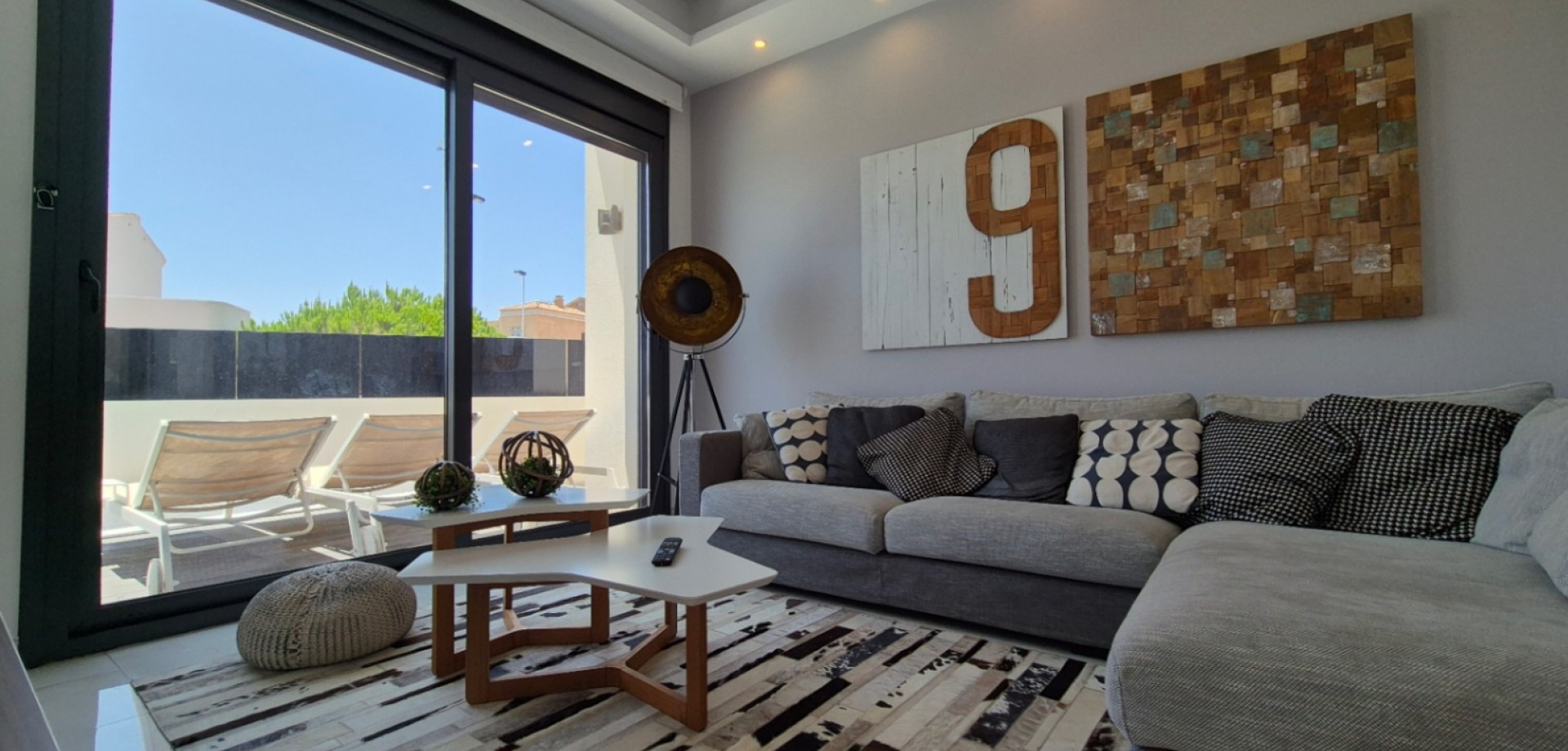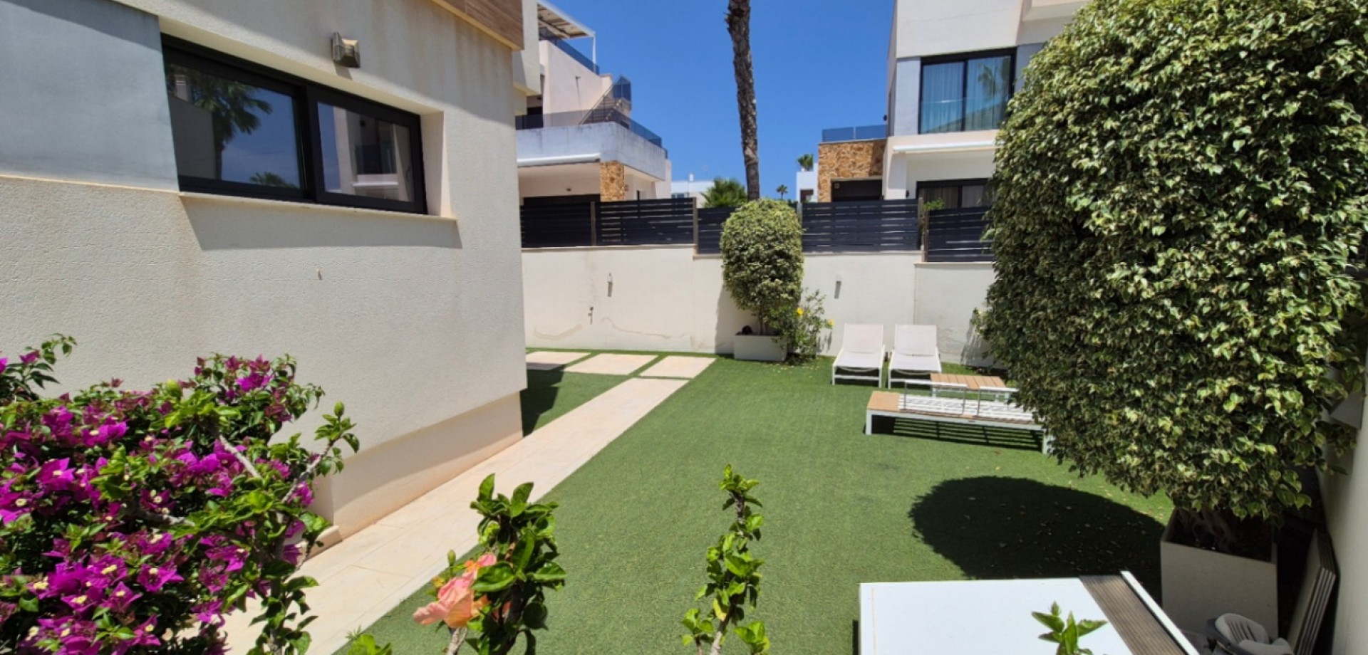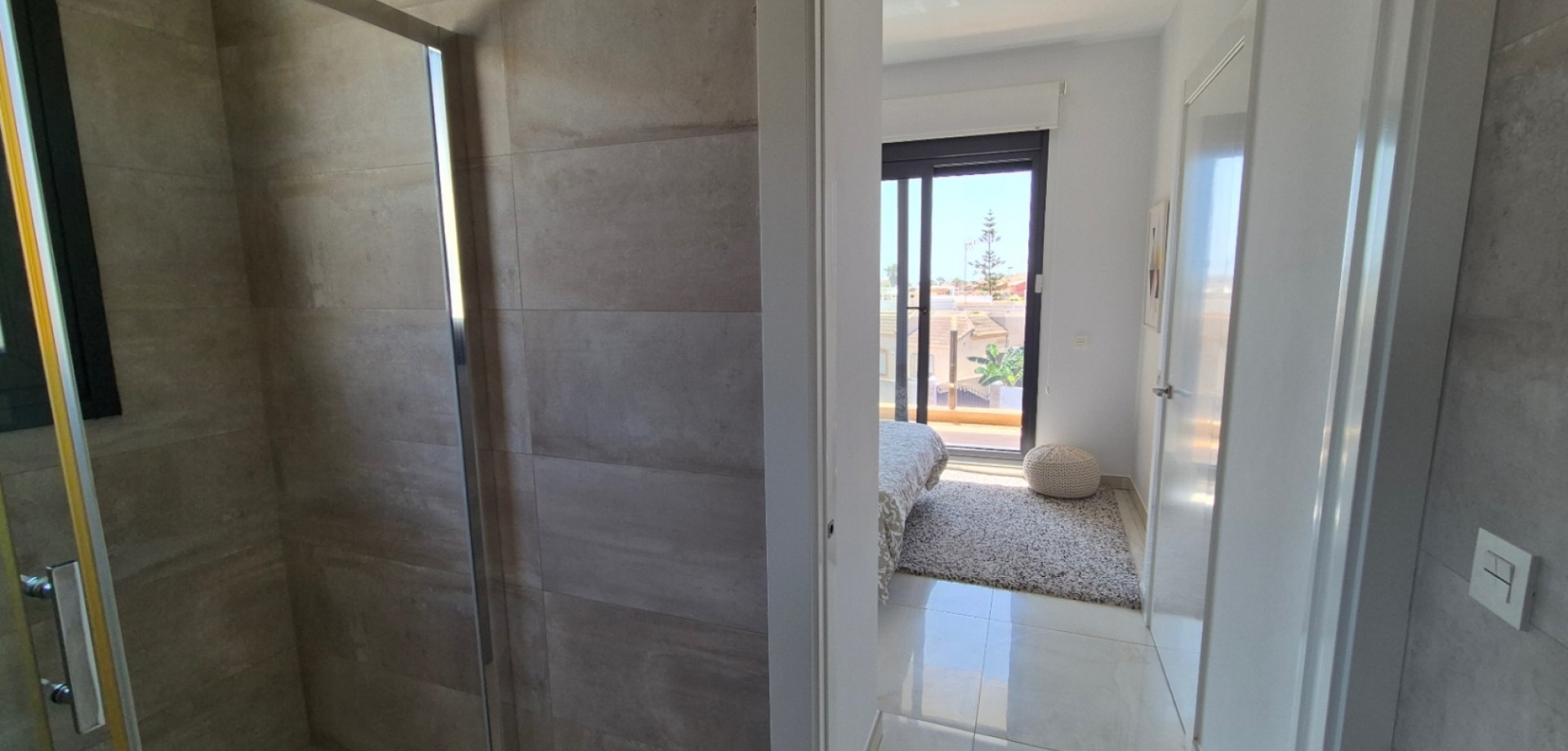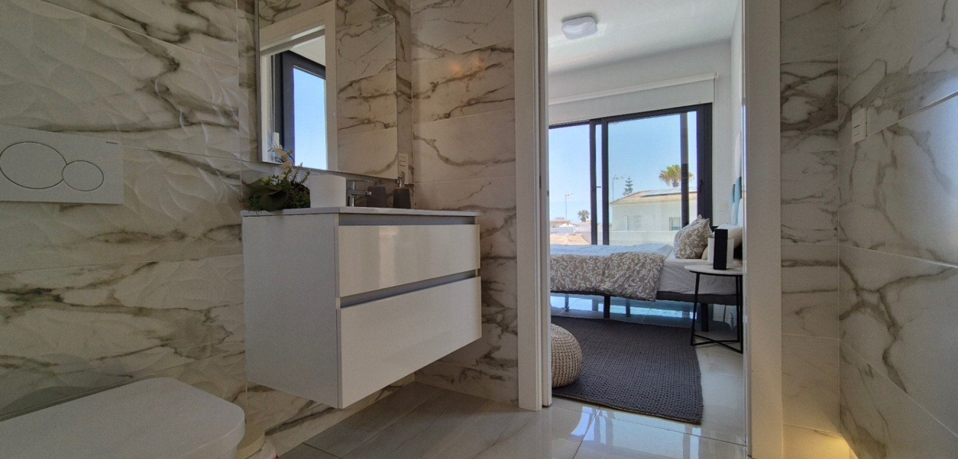 Moderne Villa mit privatem Schwimmbad und Parkplatz abseits der Straße. Diese Immobilie besteht im Erdgeschoss aus einem großen Wohn- und Essbereich, einer Küche, 1 Schlafzimmer und 1 Badezimmer. Im oberen Stockwerk befinden sich 2 weitere Schlafzimmer, jeweils mit eigenem Badezimmer, sowie eine Treppe, die zur Dachterrasse führt, von wo aus man einen Blick auf das Meer hat. Darüber hinaus gibt es einen großen Keller mit einem Unterhaltungsraum, 1 Schlafzimmer, 1 Badezimmer und einem Waschraum. Das perfekte Zuhause für dauerhaftes Wohnen oder als Ferienhaus, in der Nähe aller Annehmlichkeiten und nur 2 Minuten vom Strand entfernt.