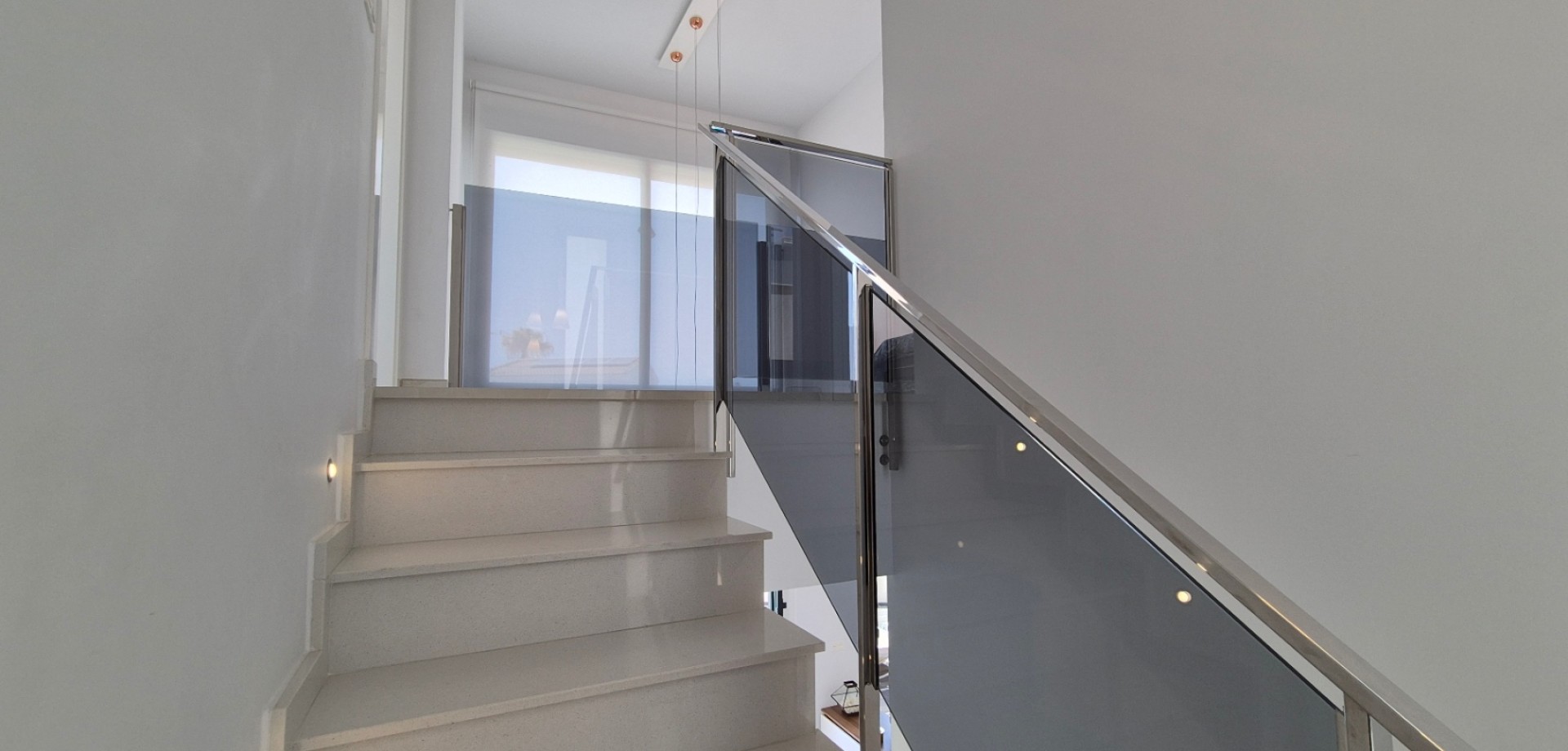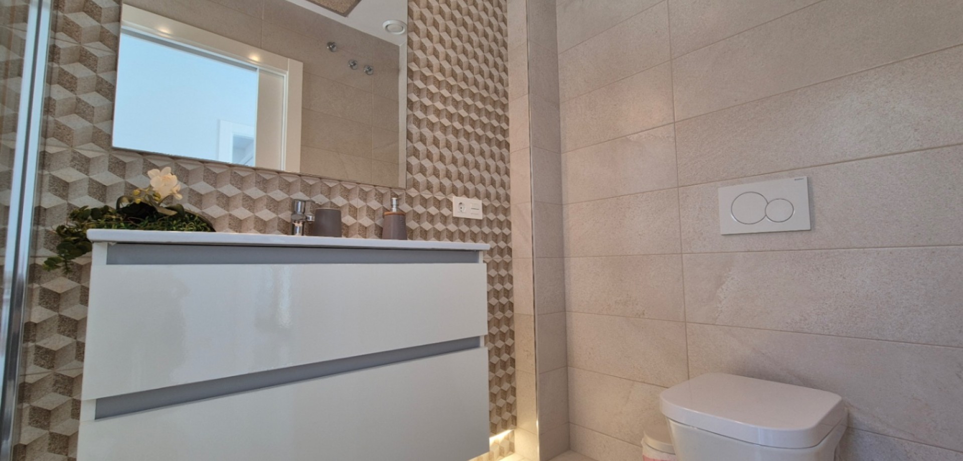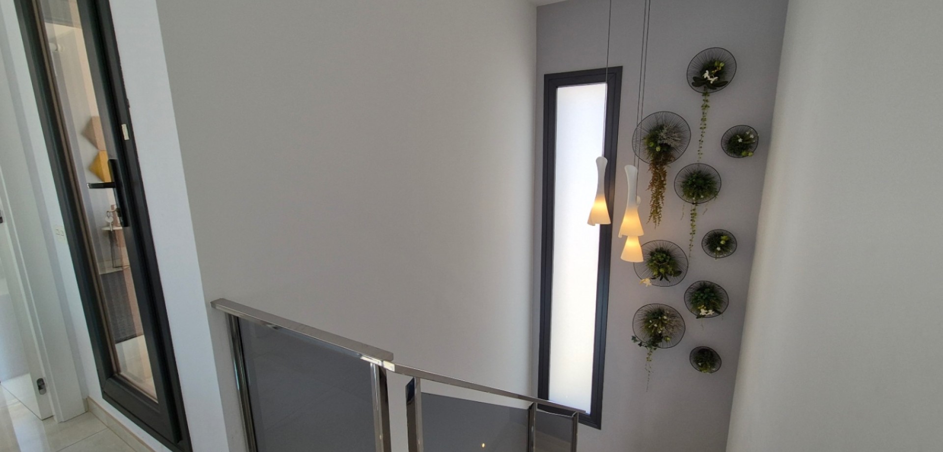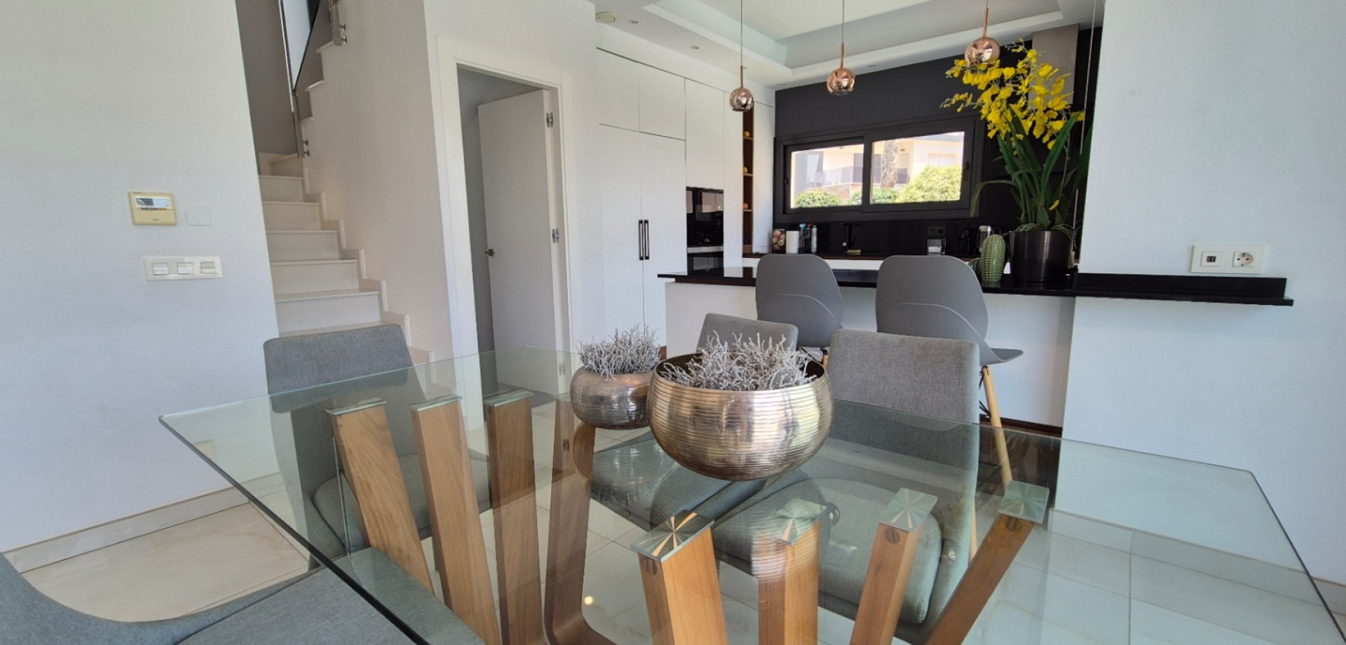 Moderne Villa mit privatem Schwimmbad und Parkplatz abseits der Straße. Diese Immobilie besteht im Erdgeschoss aus einem großen Wohn- und Essbereich, einer Küche, 1 Schlafzimmer und 1 Badezimmer. Im oberen Stockwerk befinden sich 2 weitere Schlafzimmer, jeweils mit eigenem Badezimmer, sowie eine Treppe, die zur Dachterrasse führt, von wo aus man einen Blick auf das Meer hat. Darüber hinaus gibt es einen großen Keller mit einem Unterhaltungsraum, 1 Schlafzimmer, 1 Badezimmer und einem Waschraum. Das perfekte Zuhause für dauerhaftes Wohnen oder als Ferienhaus, in der Nähe aller Annehmlichkeiten und nur 2 Minuten vom Strand entfernt.