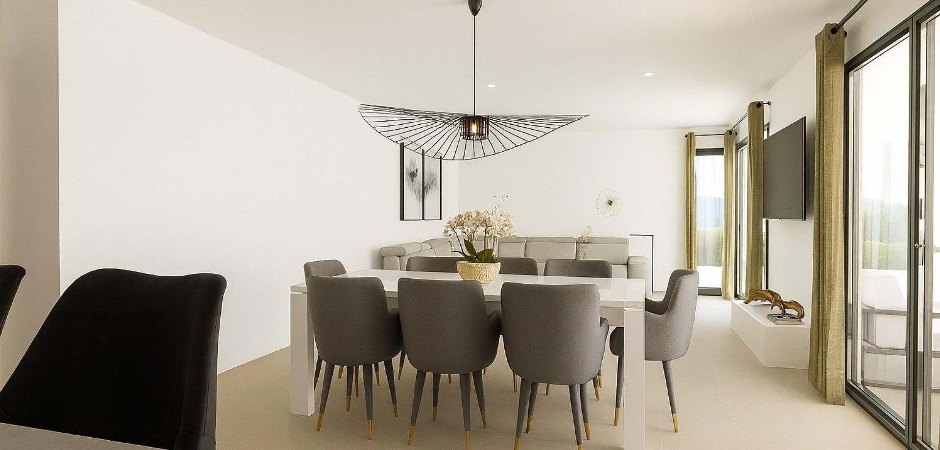 NEUE VILLEN MIT POOL IN HONDON DE LAS NIEVES Entdecken Sie die Eleganz und den Komfort dieser wunderschönen freistehenden Villen mit einer Fläche zwischen 108 und 128 m², die Ihnen einen außergewöhnlichen Lebensstil bieten und alle ebenerdig sind. Genießen Sie die Privatsphäre dieser Villa, in der Sie sich in Ihrem eigenen Garten entspannen, eine Oase der Ruhe schaffen oder sich in Ihrem privaten Pool erfrischen können, um die warmen Sommertage zu genießen. Das Anwesen ist in zwei große Bereiche unterteilt: Wohnbereich: Hier finden wir ein geräumiges Wohn-Esszimmer mit offener Küche (Küchenmöbel inklusive), das durch zwei große Fenster mit der großen modernen Veranda verbunden ist, die zum Gartenbereich und zum Pool führt. Als zusätzlicher Raum verfügt das Haus über einen strategisch günstig gelegenen Waschraum, der von jedem Punkt des Hauses aus leicht zu erreichen ist. Ruhebereich: In diesem Bereich befinden sich 3 Schlafzimmer. Das Hauptschlafzimmer verfügt über einen großen begehbaren Kleiderschrank und ein eigenes Bad. Es gibt auch ein zweites Badezimmer für die übrigen Schlafzimmer und den Rest des Hauses. In einer ruhigen Wohnlage gelegen, bietet Ihnen diese Villa die gewünschte Privatsphäre und Ruhe, während Sie gleichzeitig nur wenige Minuten von Dienstleistungen, Geschäften, Supermärkten und Restaurants entfernt sind. Es ist die perfekte Balance zwischen ruhiger Abgeschiedenheit und dem Komfort des modernen Lebens. In dieser Urbanisation in Hondón de las Nieves ist jeder Tag eine Gelegenheit, sich mit der Welt zu verbinden. Hondón de las Nieves ist eine Gemeinde in der Autonomen Gemeinschaft Valencia, Spanien. Sie liegt im Südwesten der Provinz Alicante, in der Region Vinalopó Medio. Die Strände und der Flughafen von Alicante sind nur 30 Autominuten entfernt.