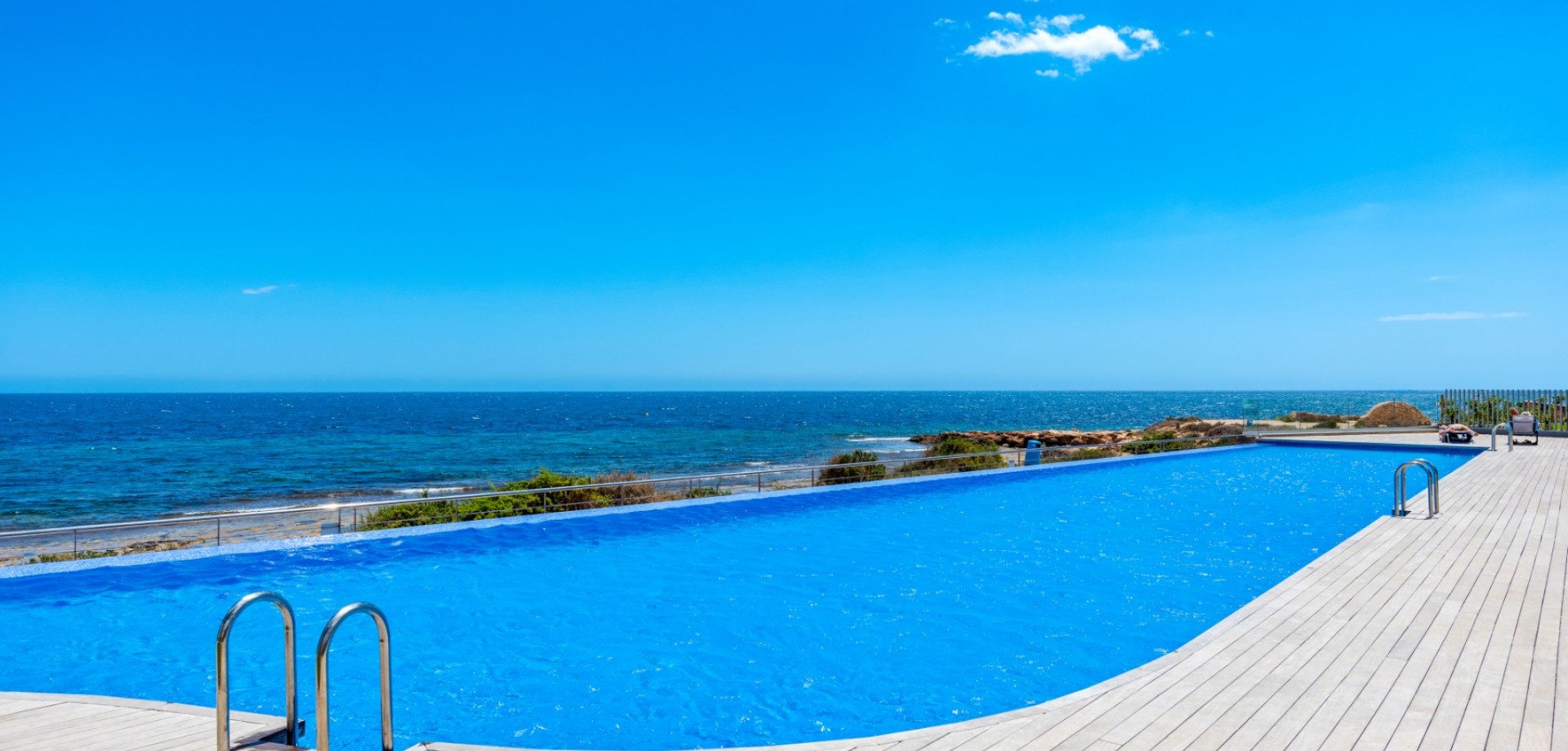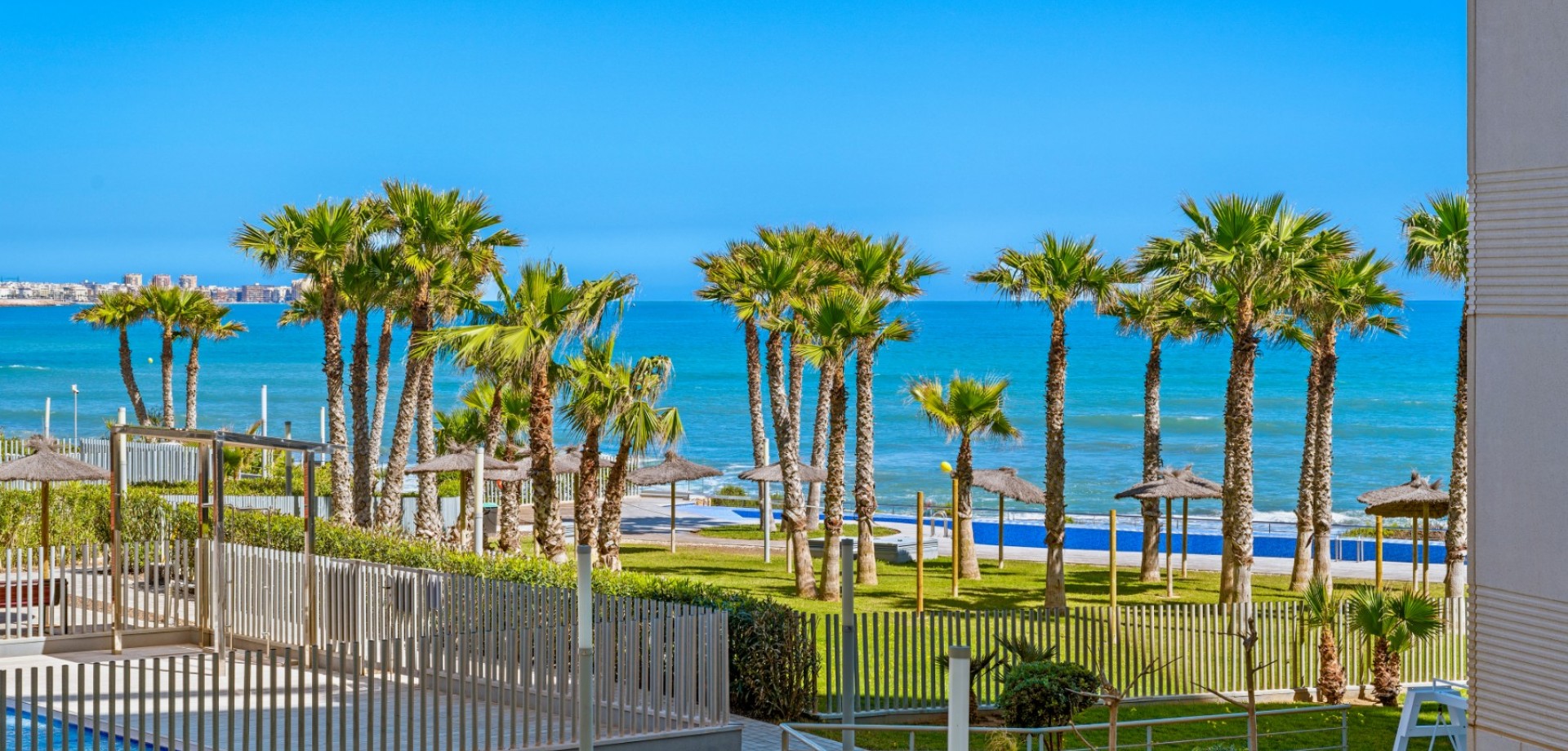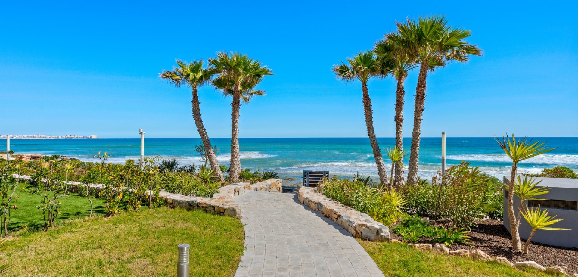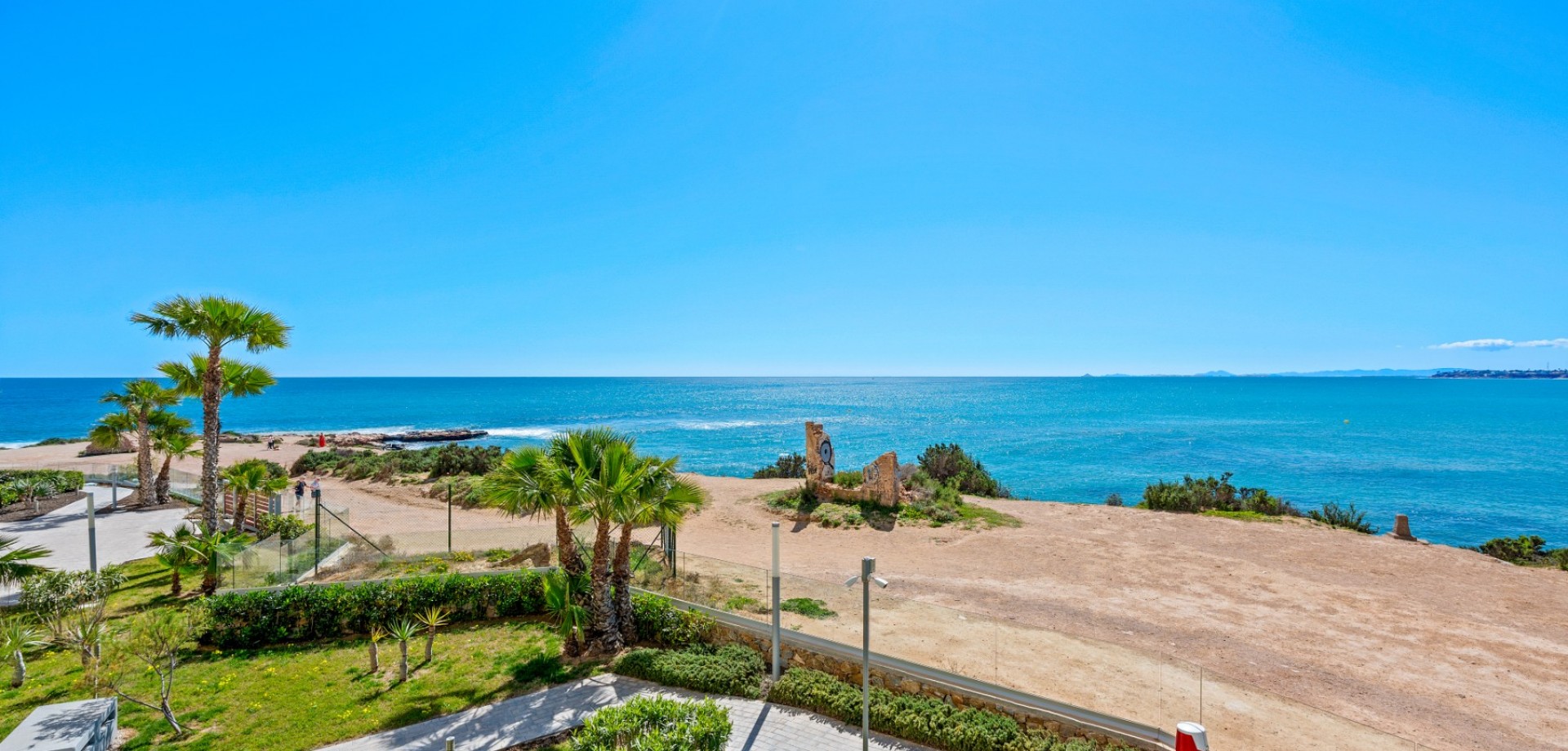 Ich habe immer von einem luxuriösen Eck-Penthouse in erster Reihe im begehrten Luxusresort "Posidonia" in Punta Prima, Orihuela-Costa geträumt. Hier haben Sie die einmalige Gelegenheit, stolzer Besitzer dieses Juwels in diesem wunderschönen Resort zu werden. Es bietet mehr Annehmlichkeiten als ein Hotel und eignet sich natürlich auch hervorragend zur Vermietung, sodass Sie eine attraktive Rendite erzielen können. Und nicht zu vergessen: Sie können Ihr gemütliches Domizil jederzeit selbst nutzen. Dieses atemberaubende Anwesen bietet zahlreiche Annehmlichkeiten. Das Juwel verfügt über drei Schlafzimmer und zwei Badezimmer, eines davon en suite. Selbstverständlich bieten alle Räume, einschließlich der riesigen Terrasse, die von fast jedem Zimmer aus zugänglich ist, einen spektakulären Panoramablick auf das Meer und liegen nur 50 Meter vom Strand Rocio del Mar entfernt. Beim Betreten des Anwesens fallen einem nicht nur der großzügige Wohnbereich und die offene, moderne Küche ins Auge, sondern vor allem die großen Schiebefenster, die einen atemberaubenden Panoramablick auf das Meer eröffnen. Hier können Sie die herrliche, geräumige Terrasse mit Sonne, Meer und Ruhe genießen. Beobachten Sie die Yachten, Segelboote und Jetskys, die von den Häfen der nur wenige Kilometer entfernten Stadt Torrevieja vorbeifahren, und bewundern Sie die malerische Stadt Torrevieja von Ihrer Terrasse aus. Das geräumige Hauptschlafzimmer bietet einen wunderschönen Meerblick und direkten Zugang zur großzügigen Terrasse – ein wahrgewordener Traum, jeden Morgen aufzuwachen und als Erster die Sonne über dem Meer zu sehen. Das angrenzende Badezimmer lässt keine Wünsche offen und verfügt über eine große, ebenerdige Dusche mit Fußbodenheizung. Das Gästezimmer bietet ausreichend Platz für ein Doppelbett und ist selbstverständlich mit großen Einbauschränken ausgestattet. Das Familienbadezimmer verfügt über eine große, ebenerdige Dusche, WC und Waschbecken sowie eine Fußbodenheizung. Resort: Der hochmoderne Gemeinschaftsbereich dieses wunderschönen Resorts umfasst: Drei Schwimmbecken (eines davon beheizt und ganzjährig nutzbar), Liegestühle, Kinderspielplatz, Kinderbecken. Kontaktieren Sie uns für eine (Video-)Vorführung.