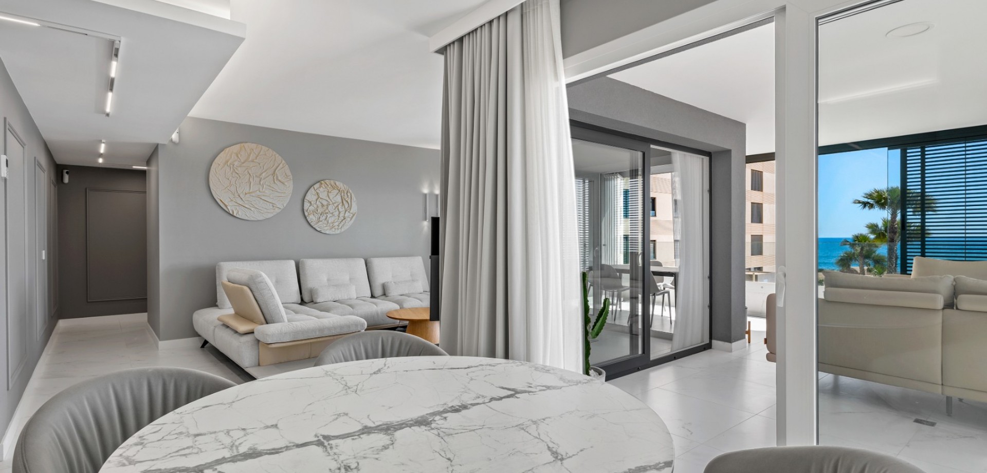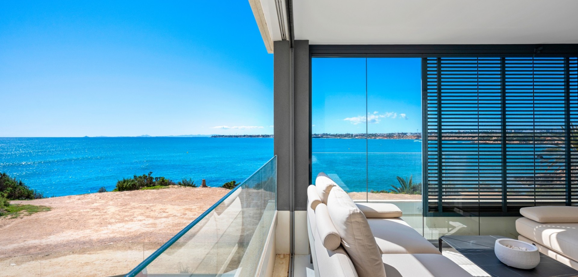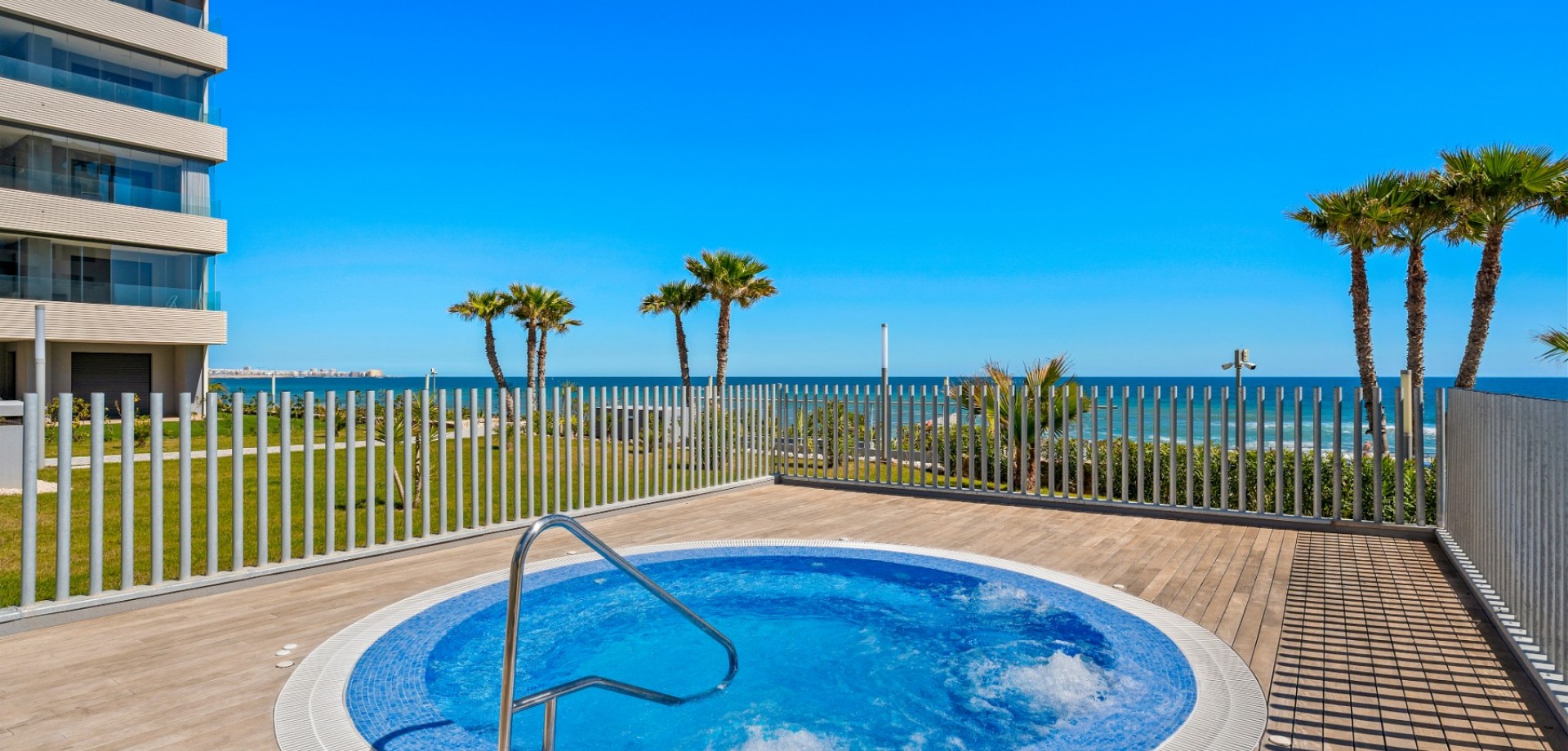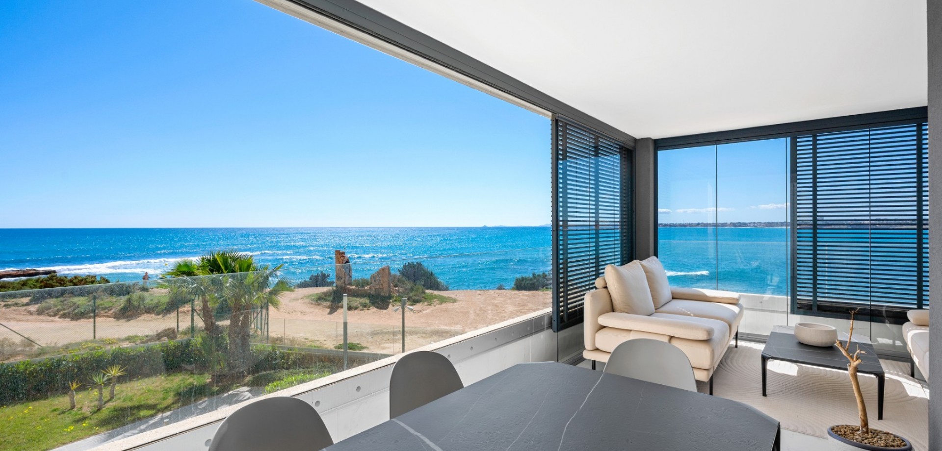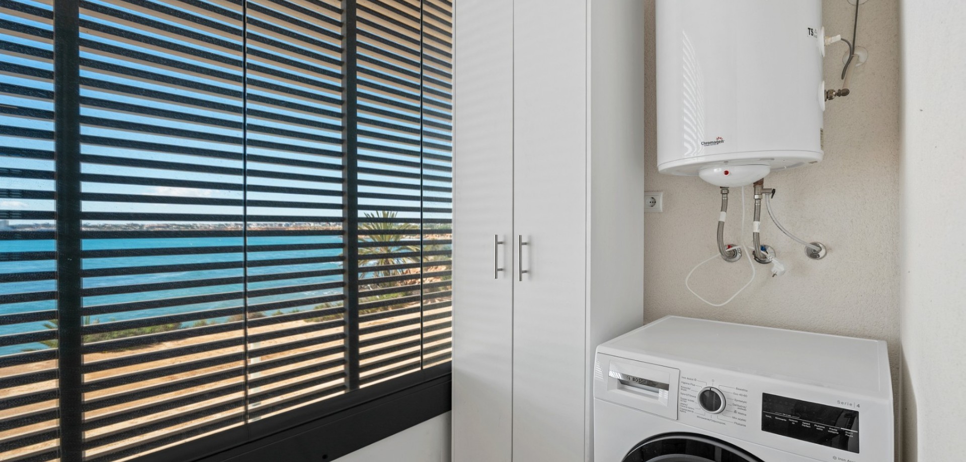 Ich habe immer von einem luxuriösen Eck-Penthouse in erster Reihe im begehrten Luxusresort "Posidonia" in Punta Prima, Orihuela-Costa geträumt. Hier haben Sie die einmalige Gelegenheit, stolzer Besitzer dieses Juwels in diesem wunderschönen Resort zu werden. Es bietet mehr Annehmlichkeiten als ein Hotel und eignet sich natürlich auch hervorragend zur Vermietung, sodass Sie eine attraktive Rendite erzielen können. Und nicht zu vergessen: Sie können Ihr gemütliches Domizil jederzeit selbst nutzen. Dieses atemberaubende Anwesen bietet zahlreiche Annehmlichkeiten. Das Juwel verfügt über drei Schlafzimmer und zwei Badezimmer, eines davon en suite. Selbstverständlich bieten alle Räume, einschließlich der riesigen Terrasse, die von fast jedem Zimmer aus zugänglich ist, einen spektakulären Panoramablick auf das Meer und liegen nur 50 Meter vom Strand Rocio del Mar entfernt. Beim Betreten des Anwesens fallen einem nicht nur der großzügige Wohnbereich und die offene, moderne Küche ins Auge, sondern vor allem die großen Schiebefenster, die einen atemberaubenden Panoramablick auf das Meer eröffnen. Hier können Sie die herrliche, geräumige Terrasse mit Sonne, Meer und Ruhe genießen. Beobachten Sie die Yachten, Segelboote und Jetskys, die von den Häfen der nur wenige Kilometer entfernten Stadt Torrevieja vorbeifahren, und bewundern Sie die malerische Stadt Torrevieja von Ihrer Terrasse aus. Das geräumige Hauptschlafzimmer bietet einen wunderschönen Meerblick und direkten Zugang zur großzügigen Terrasse – ein wahrgewordener Traum, jeden Morgen aufzuwachen und als Erster die Sonne über dem Meer zu sehen. Das angrenzende Badezimmer lässt keine Wünsche offen und verfügt über eine große, ebenerdige Dusche mit Fußbodenheizung. Das Gästezimmer bietet ausreichend Platz für ein Doppelbett und ist selbstverständlich mit großen Einbauschränken ausgestattet. Das Familienbadezimmer verfügt über eine große, ebenerdige Dusche, WC und Waschbecken sowie eine Fußbodenheizung. Resort: Der hochmoderne Gemeinschaftsbereich dieses wunderschönen Resorts umfasst: Drei Schwimmbecken (eines davon beheizt und ganzjährig nutzbar), Liegestühle, Kinderspielplatz, Kinderbecken. Kontaktieren Sie uns für eine (Video-)Vorführung.