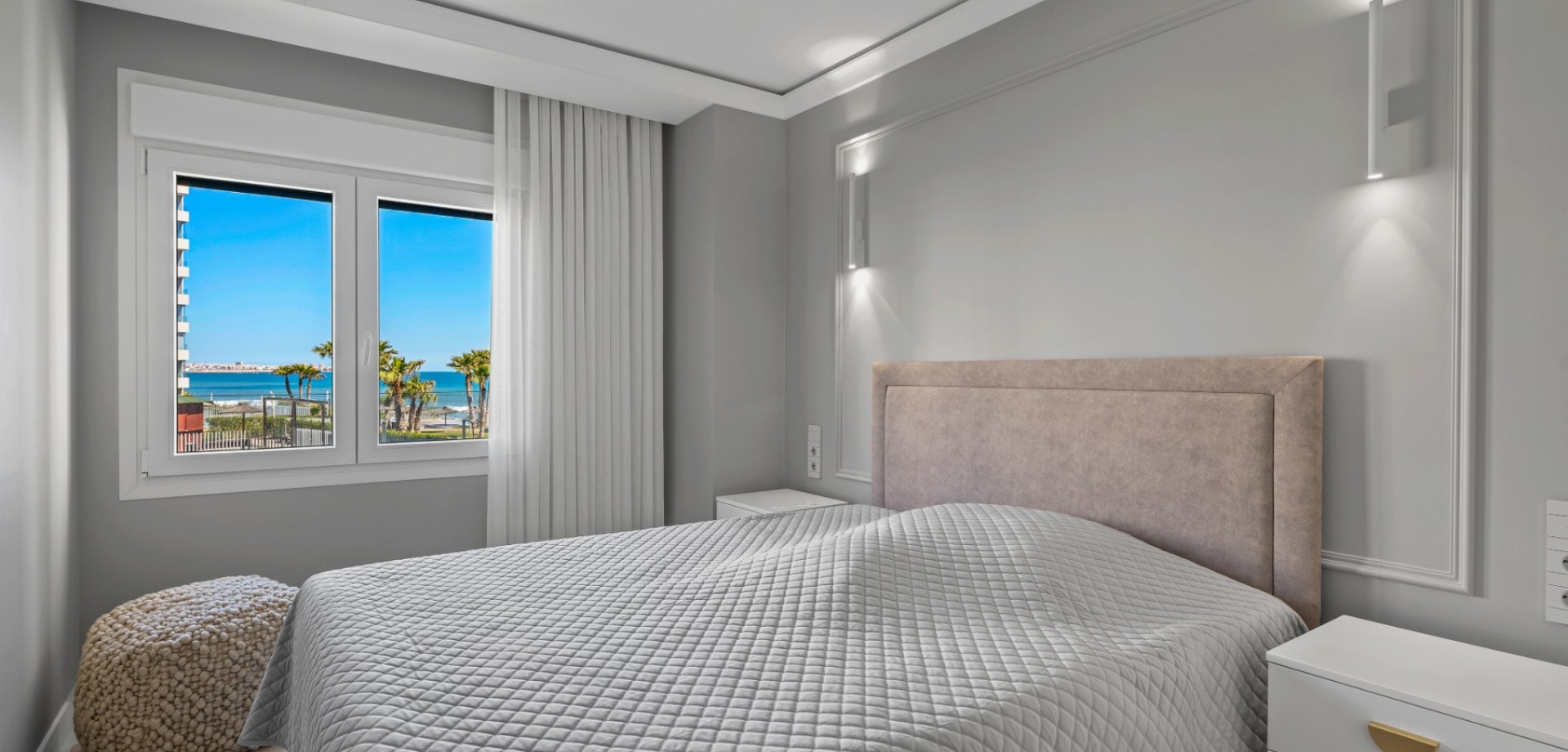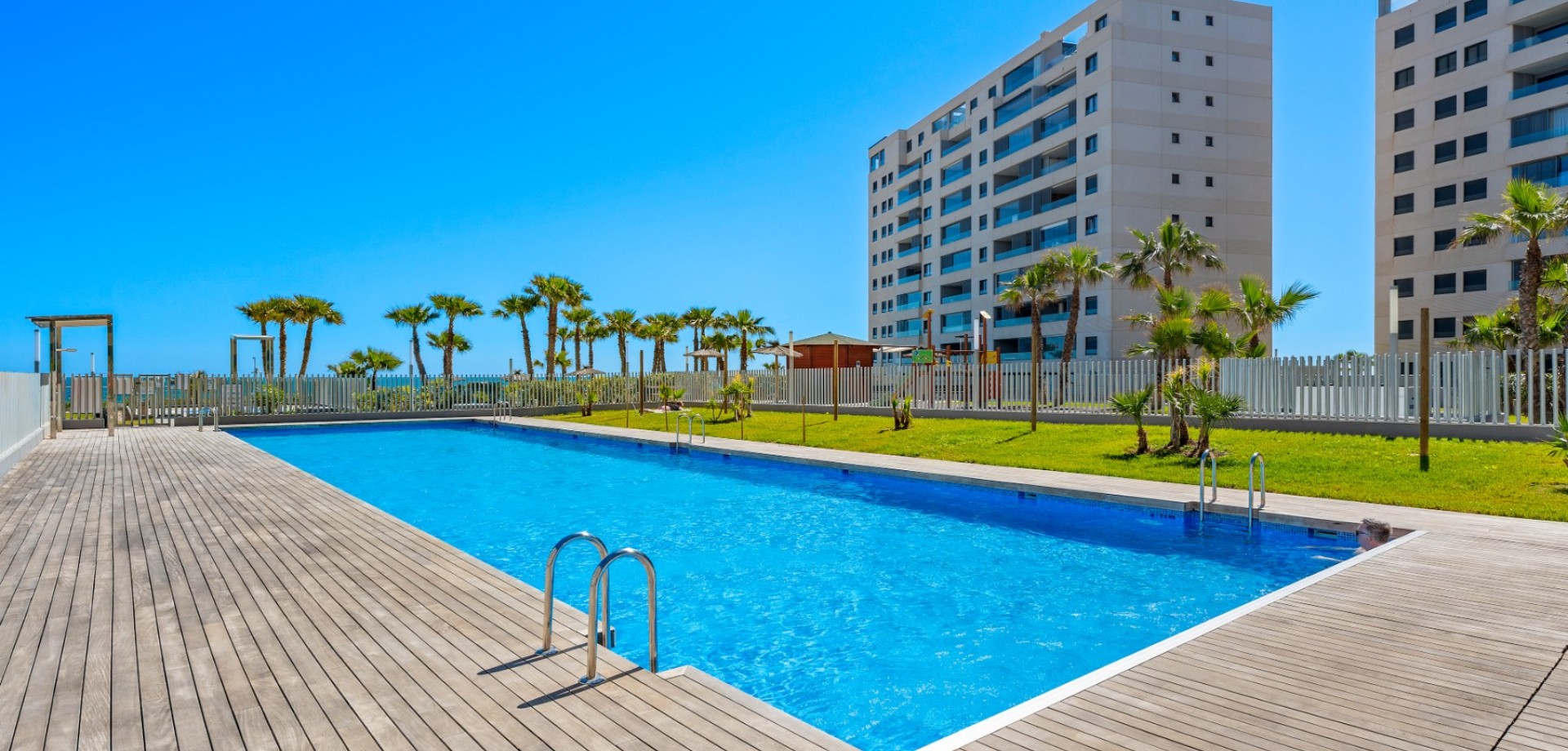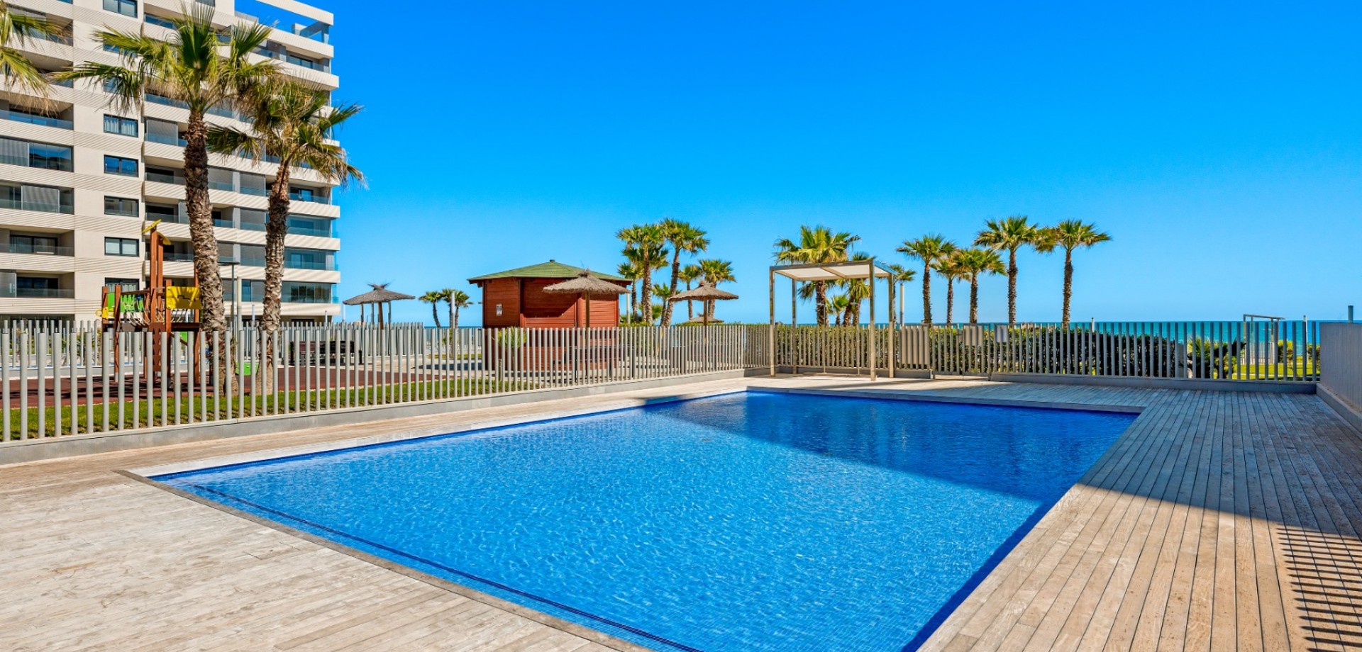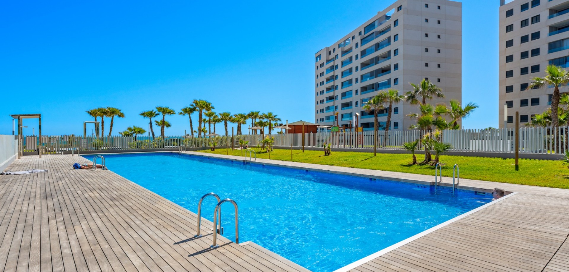 Ich habe immer von einem luxuriösen Eck-Penthouse in erster Reihe im begehrten Luxusresort "Posidonia" in Punta Prima, Orihuela-Costa geträumt. Hier haben Sie die einmalige Gelegenheit, stolzer Besitzer dieses Juwels in diesem wunderschönen Resort zu werden. Es bietet mehr Annehmlichkeiten als ein Hotel und eignet sich natürlich auch hervorragend zur Vermietung, sodass Sie eine attraktive Rendite erzielen können. Und nicht zu vergessen: Sie können Ihr gemütliches Domizil jederzeit selbst nutzen. Dieses atemberaubende Anwesen bietet zahlreiche Annehmlichkeiten. Das Juwel verfügt über drei Schlafzimmer und zwei Badezimmer, eines davon en suite. Selbstverständlich bieten alle Räume, einschließlich der riesigen Terrasse, die von fast jedem Zimmer aus zugänglich ist, einen spektakulären Panoramablick auf das Meer und liegen nur 50 Meter vom Strand Rocio del Mar entfernt. Beim Betreten des Anwesens fallen einem nicht nur der großzügige Wohnbereich und die offene, moderne Küche ins Auge, sondern vor allem die großen Schiebefenster, die einen atemberaubenden Panoramablick auf das Meer eröffnen. Hier können Sie die herrliche, geräumige Terrasse mit Sonne, Meer und Ruhe genießen. Beobachten Sie die Yachten, Segelboote und Jetskys, die von den Häfen der nur wenige Kilometer entfernten Stadt Torrevieja vorbeifahren, und bewundern Sie die malerische Stadt Torrevieja von Ihrer Terrasse aus. Das geräumige Hauptschlafzimmer bietet einen wunderschönen Meerblick und direkten Zugang zur großzügigen Terrasse – ein wahrgewordener Traum, jeden Morgen aufzuwachen und als Erster die Sonne über dem Meer zu sehen. Das angrenzende Badezimmer lässt keine Wünsche offen und verfügt über eine große, ebenerdige Dusche mit Fußbodenheizung. Das Gästezimmer bietet ausreichend Platz für ein Doppelbett und ist selbstverständlich mit großen Einbauschränken ausgestattet. Das Familienbadezimmer verfügt über eine große, ebenerdige Dusche, WC und Waschbecken sowie eine Fußbodenheizung. Resort: Der hochmoderne Gemeinschaftsbereich dieses wunderschönen Resorts umfasst: Drei Schwimmbecken (eines davon beheizt und ganzjährig nutzbar), Liegestühle, Kinderspielplatz, Kinderbecken. Kontaktieren Sie uns für eine (Video-)Vorführung.