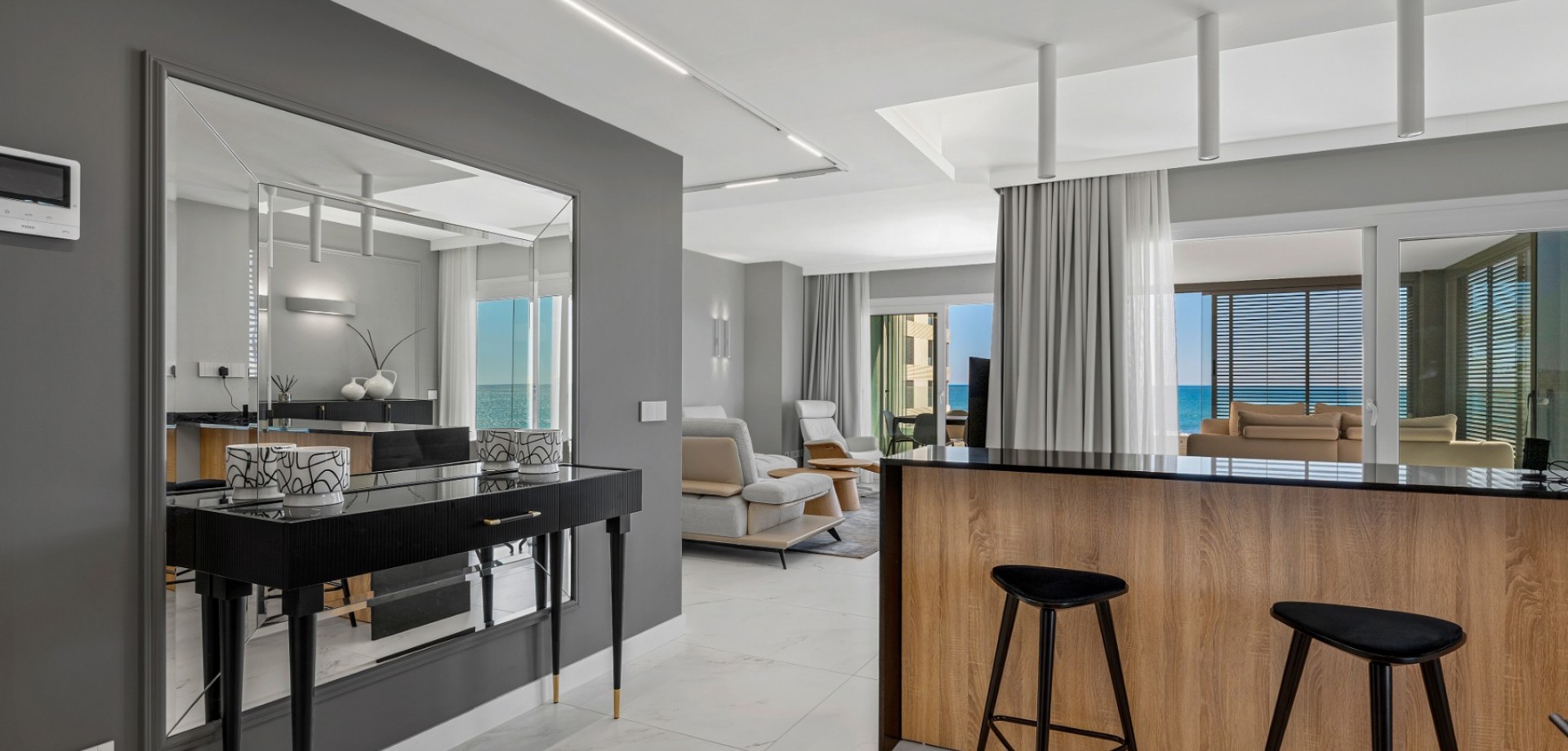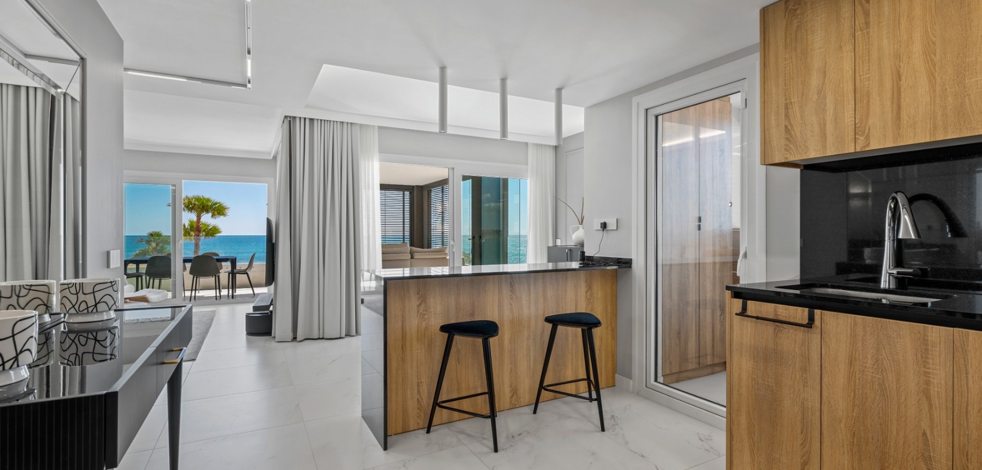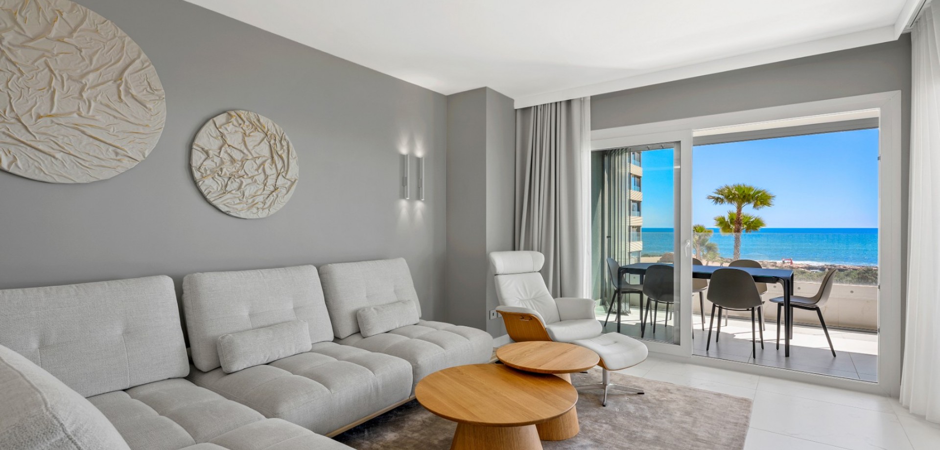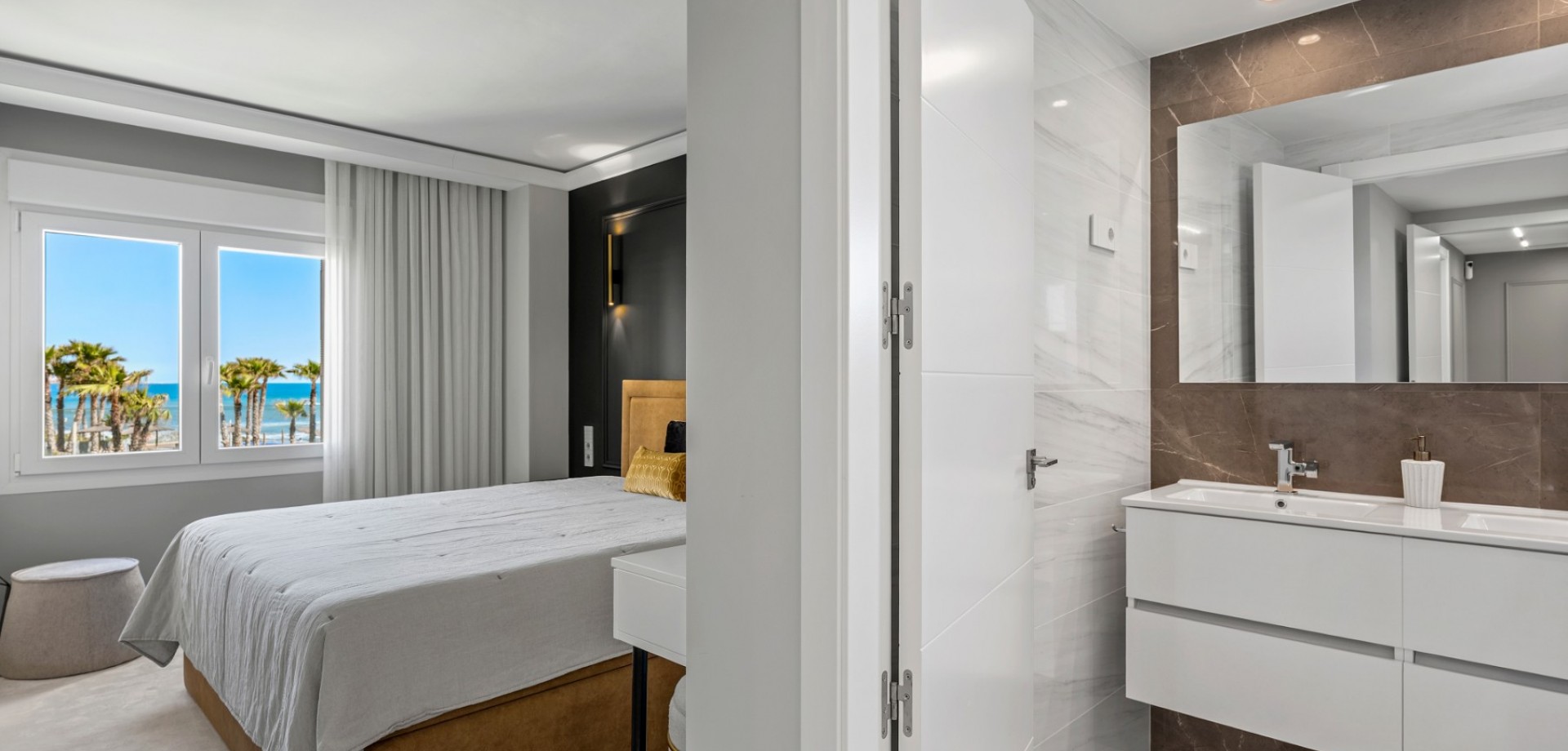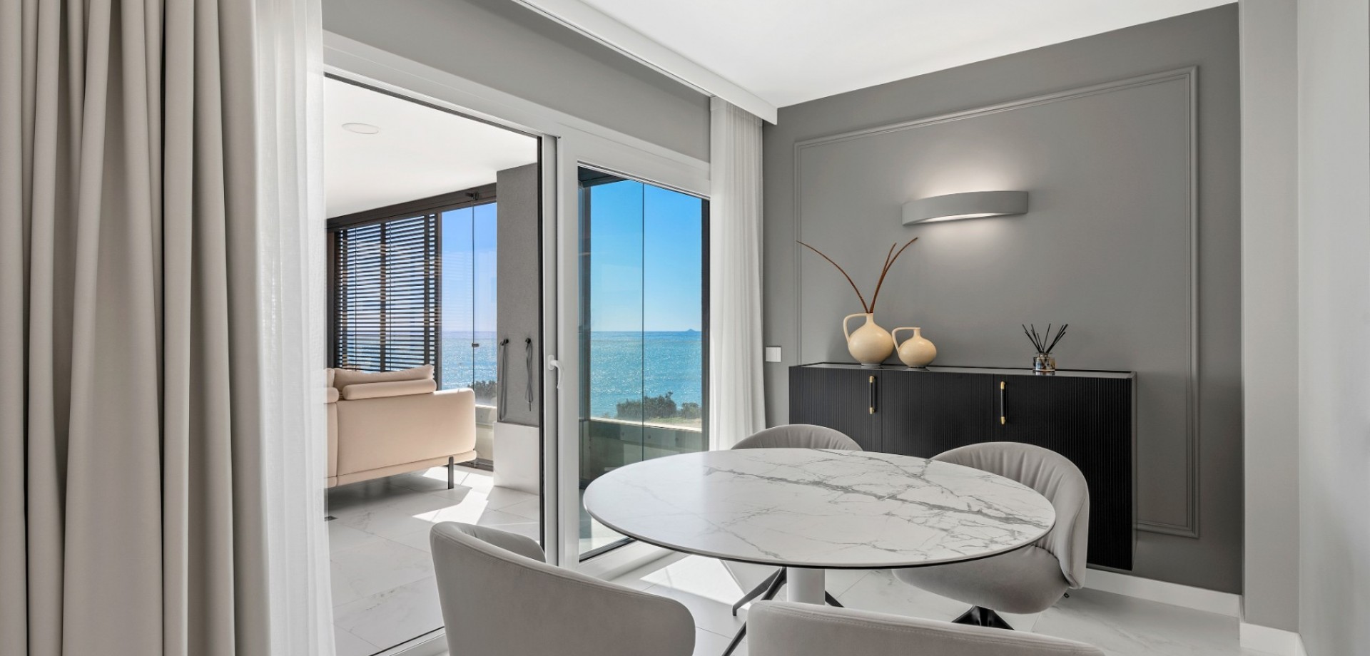 Ich habe immer von einem luxuriösen Eck-Penthouse in erster Reihe im begehrten Luxusresort "Posidonia" in Punta Prima, Orihuela-Costa geträumt. Hier haben Sie die einmalige Gelegenheit, stolzer Besitzer dieses Juwels in diesem wunderschönen Resort zu werden. Es bietet mehr Annehmlichkeiten als ein Hotel und eignet sich natürlich auch hervorragend zur Vermietung, sodass Sie eine attraktive Rendite erzielen können. Und nicht zu vergessen: Sie können Ihr gemütliches Domizil jederzeit selbst nutzen. Dieses atemberaubende Anwesen bietet zahlreiche Annehmlichkeiten. Das Juwel verfügt über drei Schlafzimmer und zwei Badezimmer, eines davon en suite. Selbstverständlich bieten alle Räume, einschließlich der riesigen Terrasse, die von fast jedem Zimmer aus zugänglich ist, einen spektakulären Panoramablick auf das Meer und liegen nur 50 Meter vom Strand Rocio del Mar entfernt. Beim Betreten des Anwesens fallen einem nicht nur der großzügige Wohnbereich und die offene, moderne Küche ins Auge, sondern vor allem die großen Schiebefenster, die einen atemberaubenden Panoramablick auf das Meer eröffnen. Hier können Sie die herrliche, geräumige Terrasse mit Sonne, Meer und Ruhe genießen. Beobachten Sie die Yachten, Segelboote und Jetskys, die von den Häfen der nur wenige Kilometer entfernten Stadt Torrevieja vorbeifahren, und bewundern Sie die malerische Stadt Torrevieja von Ihrer Terrasse aus. Das geräumige Hauptschlafzimmer bietet einen wunderschönen Meerblick und direkten Zugang zur großzügigen Terrasse – ein wahrgewordener Traum, jeden Morgen aufzuwachen und als Erster die Sonne über dem Meer zu sehen. Das angrenzende Badezimmer lässt keine Wünsche offen und verfügt über eine große, ebenerdige Dusche mit Fußbodenheizung. Das Gästezimmer bietet ausreichend Platz für ein Doppelbett und ist selbstverständlich mit großen Einbauschränken ausgestattet. Das Familienbadezimmer verfügt über eine große, ebenerdige Dusche, WC und Waschbecken sowie eine Fußbodenheizung. Resort: Der hochmoderne Gemeinschaftsbereich dieses wunderschönen Resorts umfasst: Drei Schwimmbecken (eines davon beheizt und ganzjährig nutzbar), Liegestühle, Kinderspielplatz, Kinderbecken. Kontaktieren Sie uns für eine (Video-)Vorführung.