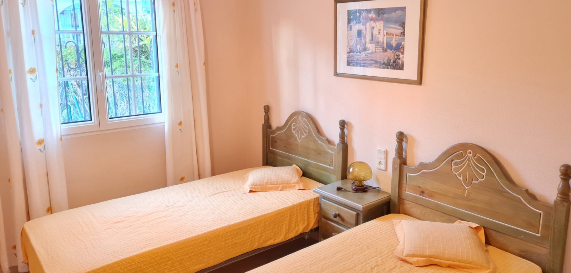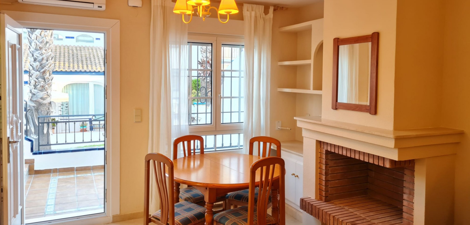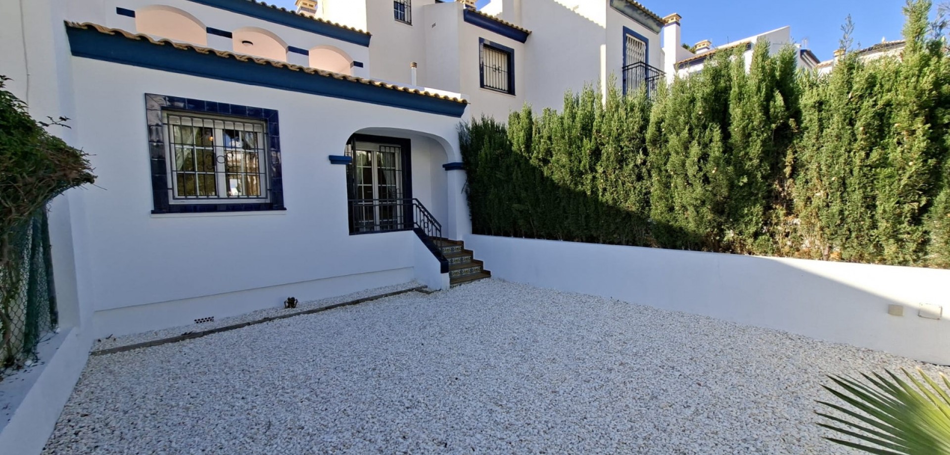 Dieser wunderschöne, nach Süden ausgerichtete Bungalow Lola befindet sich in der begehrten Gegend von Villamartin Rioja in Orihuela Costa. Einkaufsmöglichkeiten und Restaurants sind fußläufig erreichbar, und die kristallklaren Strände sind nur 10 Autominuten entfernt. Der Bungalow Lola wurde komplett renoviert und wird möbliert verkauft. Er ist eine äußerst begehrte Immobilie in dieser Gegend. Der gesamte Wohnbereich befindet sich im Erdgeschoss mit einer Wohnfläche von 63,50 m², ergänzt durch einen 80m² großen, angelegten Garten vor und hinter dem Haus. Auf dieser Ebene befindet sich das helle Wohn-Esszimmer mit einem gemütlichen Kamin. Die moderne Küche wurde komplett renoviert und verfügt über brandneue Schränke, eine Frühstücksbar, Granitarbeitsplatten, eine Dunstabzugshaube aus Edelstahl, ein Cerankochfeld, einen Backofen und einen elektrischen Warmwasserbereiter. Das Anwesen umfasst zwei geräumige Schlafzimmer mit Einbauschränken und ein Badezimmer mit Badewanne. Eine Außentreppe führt zum 36,67 m² großen privaten Solarium im Obergeschoss. Dieses ist teilweise überdacht und verfügt über Beleuchtung und Wasseranschluss – ein vielseitiger und sonniger Raum, der ganzjährig genutzt werden kann. Das Solarium kann in ein drittes Schlafzimmer und ein zweites Badezimmer umgewandelt werden. Das Haus ist mit einer Split-Klimaanlage im Wohnzimmer, Deckenventilatoren in den Schlafzimmern und einer Zentralheizung mit Heizkörpern ausgestattet, die von einem Gaskessel gespeist wird (Gasanschluss derzeit außer Betrieb). Die Wohnanlage ist gepflegt und verfügt über Gemeinschaftsgärten und zwei Poolbereiche, von denen sich einer direkt hinter dem Haus befindet. Umgeben von renommierten Golfplätzen wie dem Villamartín Golf Club, Las Ramblas Golf und dem Real Club de Golf Campoamor, Las Colinas, und in unmittelbarer Nähe zu einer Vielzahl von Einkaufs- und Gastronomieangeboten dank der fußläufig erreichbaren Einkaufszentren Rioja, Los Dolses und La Fuente, bietet die Immobilie einen idealen mediterranen Lebensstil. Der Zenia Boulevard, das größte Open-Air-Einkaufszentrum der Provinz Alicante an der südlichen Costa Blanca, ist ebenfalls nur eine kurze Autofahrt entfernt. Mit seiner Kombination aus Komfort, Wohnen im Freien und erstklassiger Lage bietet dieser möblierte Bungalow Lola eine hervorragende Gelegenheit als Hauptwohnsitz, Ferienhaus oder Kapitalanlage in einer der begehrtesten Gegenden der Costa Blanca. Immobilien dieser Art sind sehr gefragt, daher empfehlen wir Interessenten, sich schnellstmöglich zu melden.