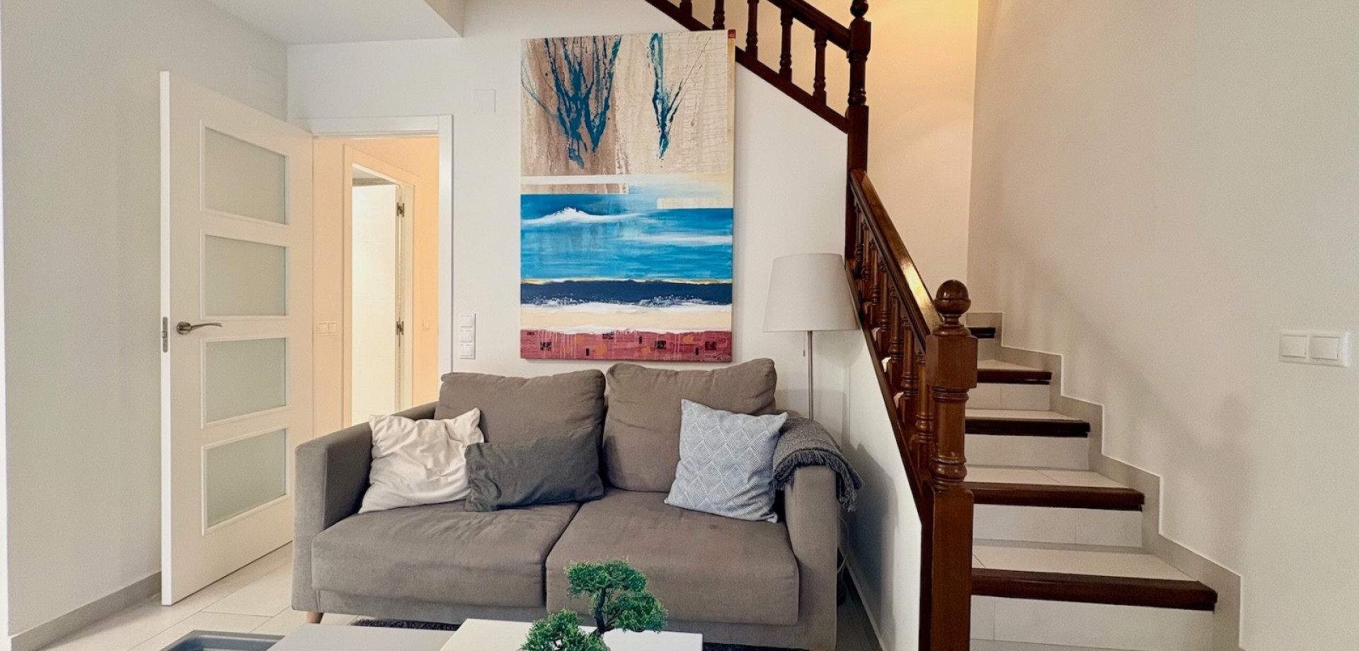 Leben Sie direkt am mediterranen Paradies! Im Herzen einer der exklusivsten und begehrtesten Gegenden im Süden der Costa Blanca, im Gemeindegebiet von Orihuela Costa, liegt „Cala del Capitán“, eine Wohnanlage mit eigenem Strand. Hier wird ein Eck-Duplex-Chalet mit einer Gesamtwohnfläche von 84,77 m² angeboten, aufgeteilt in Erdgeschoss (74,67 m²) und Obergeschoss (24,74 m²), plus einem wunderschönen privaten Garten von 46,18 m² – perfekt, um das Leben im Freien zu genießen. Das Duplex verfügt über vier Schlafzimmer und ist ideal für Familien oder Paare, die Komfort und Funktionalität in einer privilegierten Umgebung suchen. Das Haus gehört zu einer kleinen Gemeinschaft von nur 30 Wohneinheiten, die eine herrliche Gemeinschaftspool umgeben. Warum Cala Capitán und Cabo Roig für das ganzjährige Wohnen wählen? Traumstrände nur wenige Schritte entfernt: Der berühmte Strand Cala Capitán (seit vielen Jahren mit der Blauen Flagge ausgezeichnet, einschließlich 2025) liegt buchstäblich nebenan: feiner goldener Sand, kristallklares und ruhiges Wasser (ideal für Kinder und Familien), Holzsteg für barrierefreien Zugang, Strandbars, Rettungsschwimmer und eine natürliche Umgebung mit eigenem kleinen Eiland. Es ist eine der schönsten und am wenigsten überlaufenen Buchten der Orihuela Costa – perfekt für Spaziergänge, Schnorcheln oder einfach Entspannen beim Meeresrauschen. Premium mediterraner Lebensstil: Cabo Roig gilt als eines der exklusivsten Wohngebiete im Süden Alicantes. Genießen Sie ein privilegiertes Klima mit über 320 Sonnentagen im Jahr, frische Meeresbrise im Sommer und milde Winter. Küstenweg (Sendero Azul) zum Spazierengehen oder Sport direkt am Meer, Grünflächen und Ruhe ohne Massentourismus. Familienfreundliche und sichere Umgebung: Flache, ruhige Strände, Zugänglichkeit für alle Altersgruppen, gepflegte Anlage mit Gärten und einer gehobenen Wohnanlage. Ideal für Familien, Rentner oder Home-Office mit Aussicht und Frieden. Strategische Lage: Nur Minuten von La Zenia, Torrevieja, großen Einkaufszentren (Zenia Boulevard), renommierten Golfplätzen (Villamartín, Las Colinas, Campoamor), qualitativ hochwertigen Restaurants, medizinischen Einrichtungen und exzellenter Autobahnanbindung nach Alicante und Murcia. Dieses Duplex-Chalet ist mehr als nur eine Immobilie: Es ist Ihr Tor zu einem privilegierten Lebensstil am Mittelmeer, wo jeder Tag mit Kaffee im Garten beginnt und mit einem Sonnenuntergang am Strand endet. Können Sie sich vorstellen, mit dem Meer so nah aufzuwachen? Das ist Ihre Chance! Das Haus wird möbliert und ausgestattet mit allen Elektrogeräten sowie Klimaanlage verkauft. Zusammen mit dem Haus wird ein Parkplatz in derselben Anlage verkauft. Kontaktieren Sie uns jetzt für Besichtigungen und weitere Informationen!