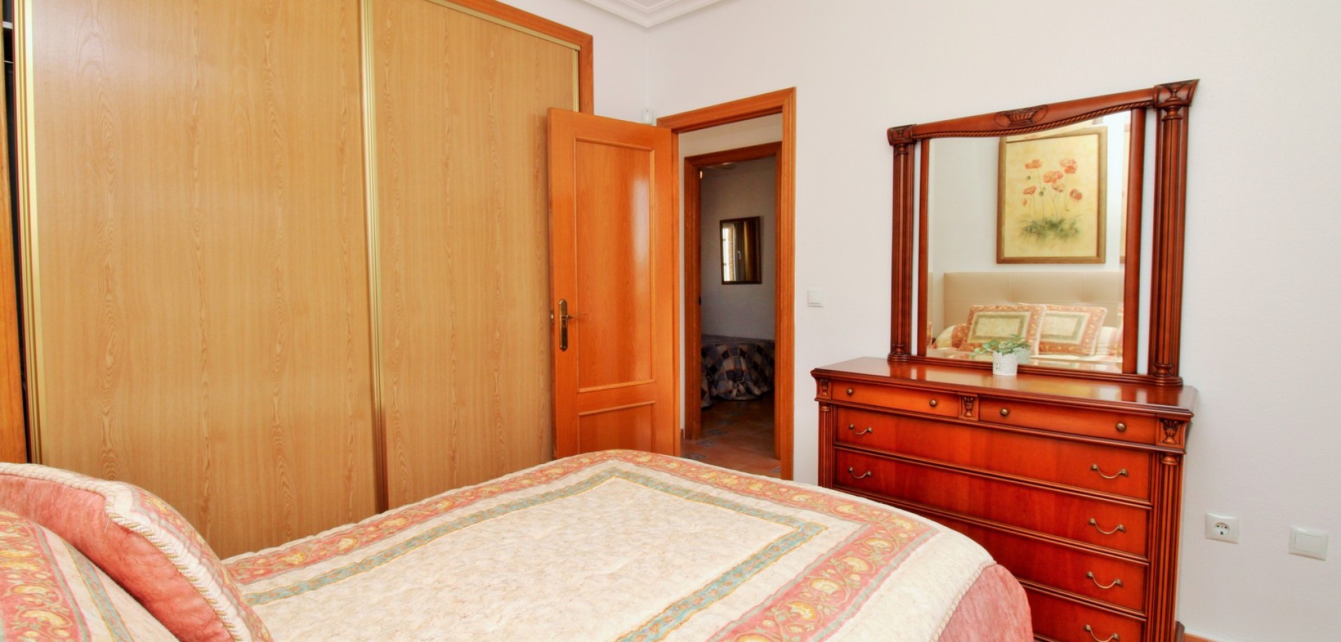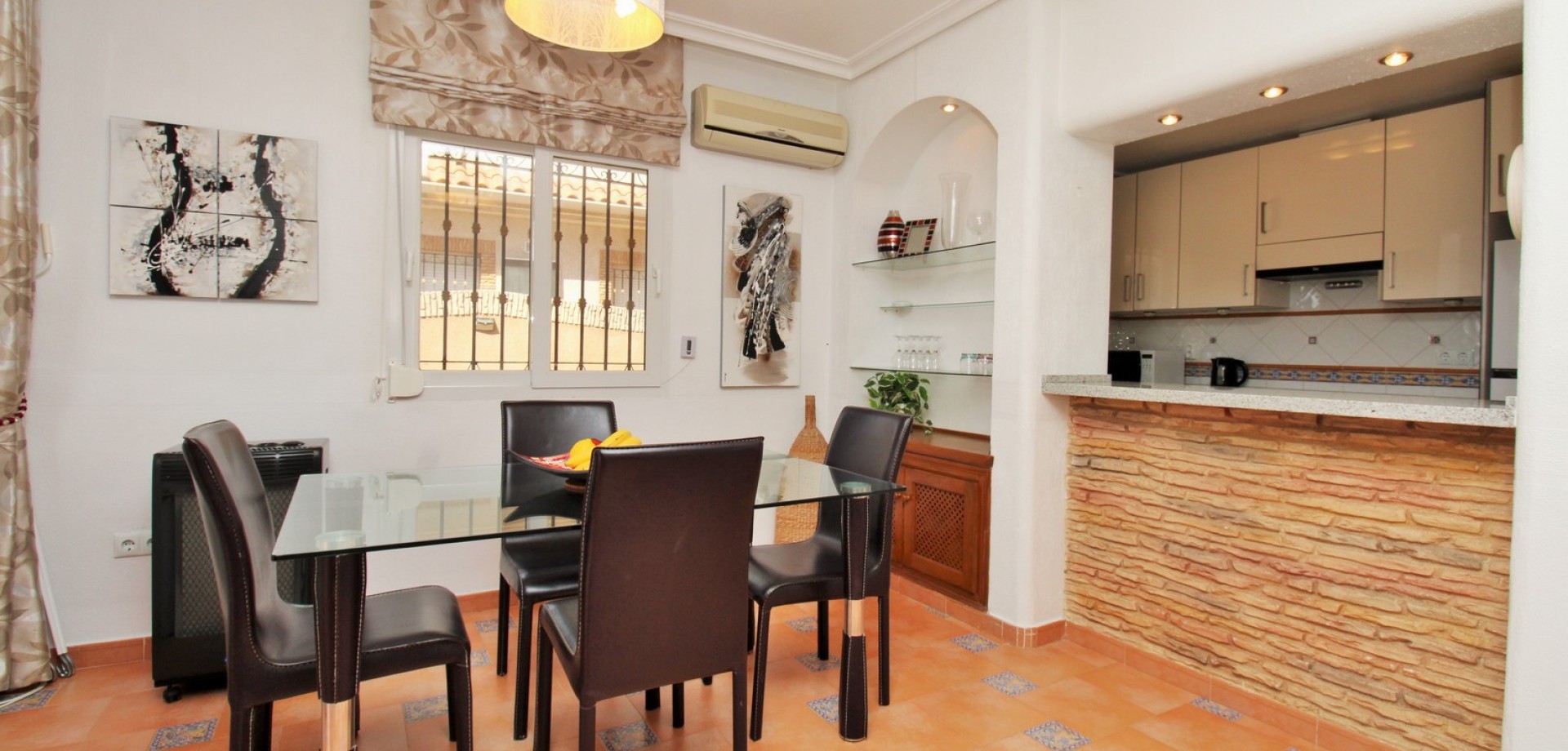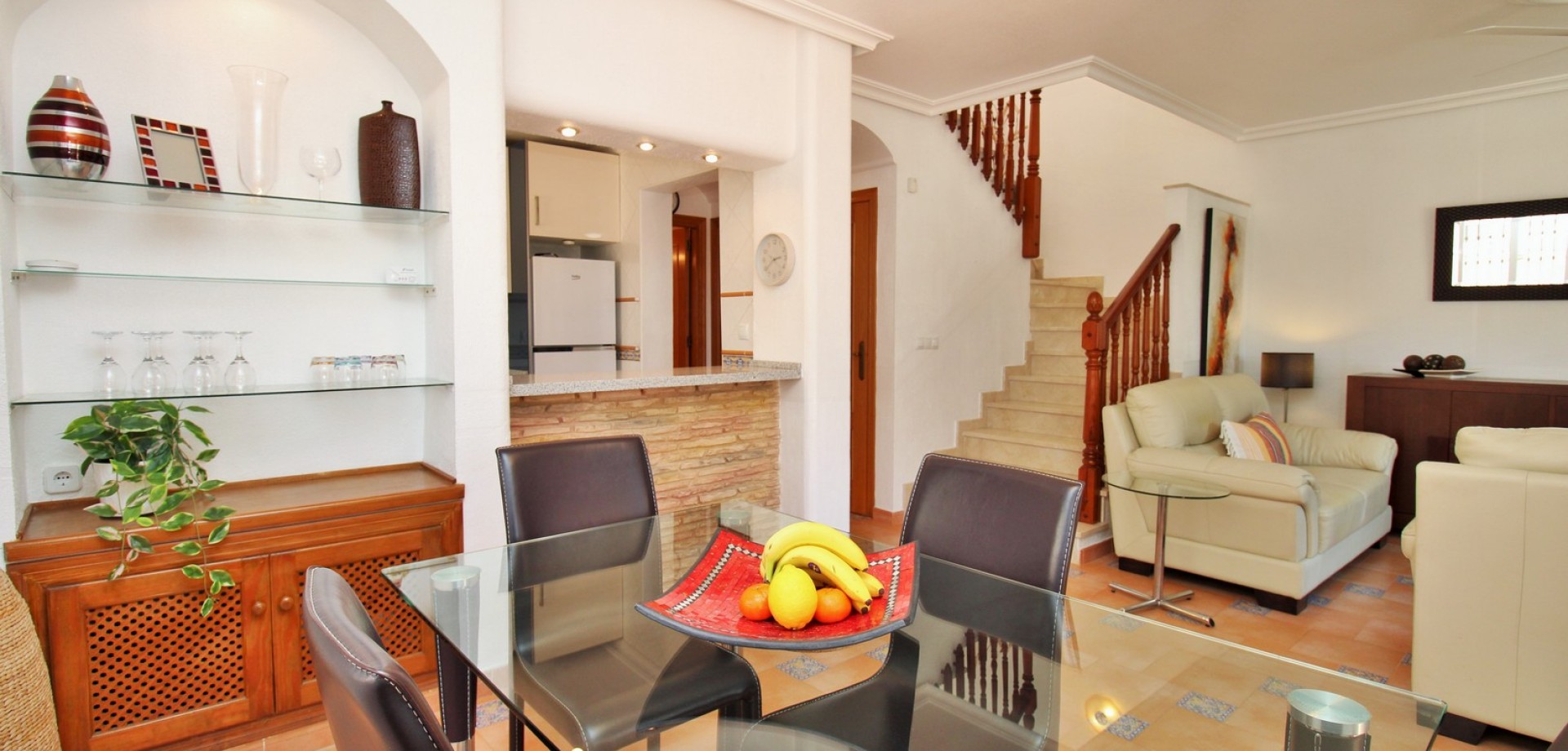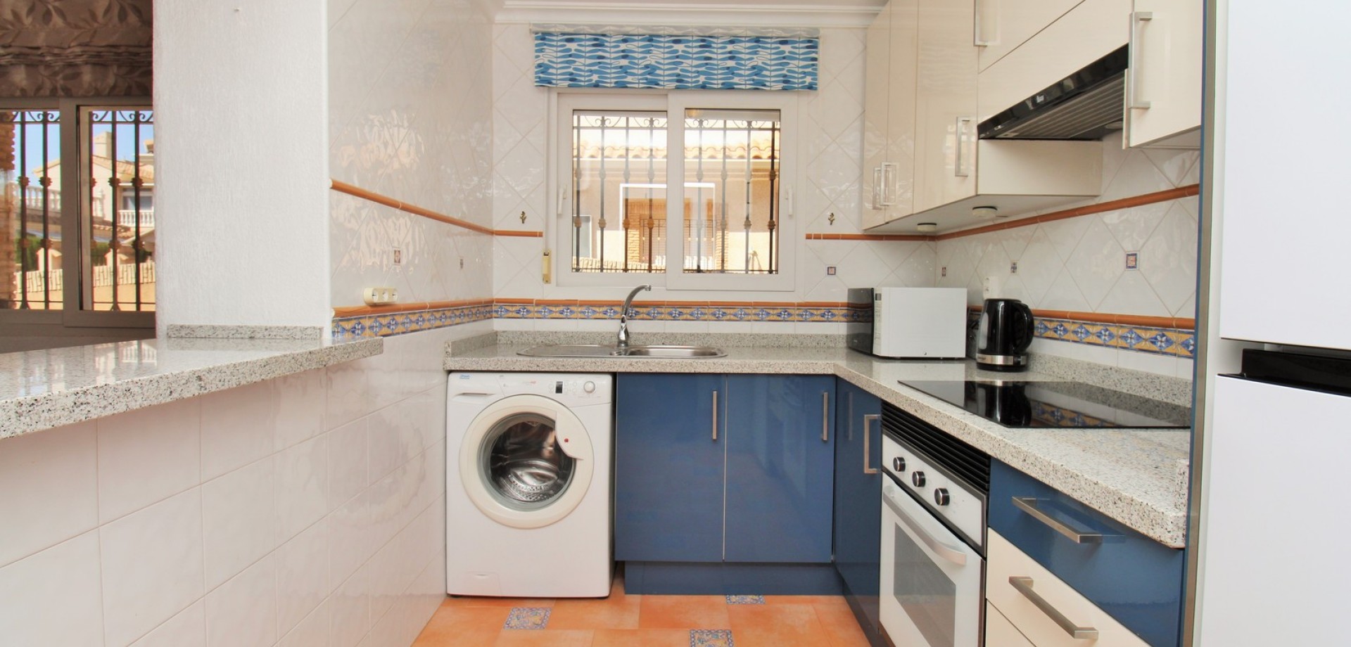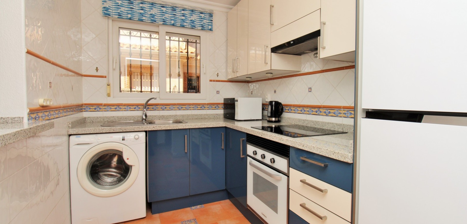 Diese gepflegte Doppelhaushälfte mit 3 Schlafzimmern und 2 Bädern befindet sich in der beliebten Wohnanlage Flamingo Hills II in Playa Flamenca und bietet großzügige Außenbereiche, eine praktische Raumaufteilung sowie eine hervorragende Lage in fußläufiger Entfernung zu allen Annehmlichkeiten. Die Immobilie liegt an einer ruhigen, privaten Gemeinschaftsstraße und ist nur wenige Gehminuten von Restaurants, Bars, Supermärkten und dem bekannten Einkaufszentrum Zenia Boulevard entfernt. Das Haus verfügt über einen privaten Garten mit Einfahrt, ideal zum Parken oder Entspannen, sowie über eine überdachte Terrasse. Im Inneren finden Sie ein helles Wohn- und Esszimmer, eine separate Küche, die teilweise modernisiert wurde, ein Schlafzimmer im Erdgeschoss mit Einbauschränken sowie ein Badezimmer mit ebenerdiger Dusche. Zusätzlich gibt es einen praktischen Abstellraum unter der Treppe. Im Obergeschoss befinden sich zwei weitere Schlafzimmer, ein zweites Badezimmer sowie der Zugang zu einer großen privaten Dachterrasse (Solarium), ideal zum Sonnenbaden oder für gesellige Abende. Die Immobilie gehört zu einer gepflegten Anlage mit Zugang zu einem schönen Gemeinschaftspool. Wird möbliert inklusive Elektrogeräten verkauft und eignet sich ideal als Hauptwohnsitz oder Ferienimmobilie.