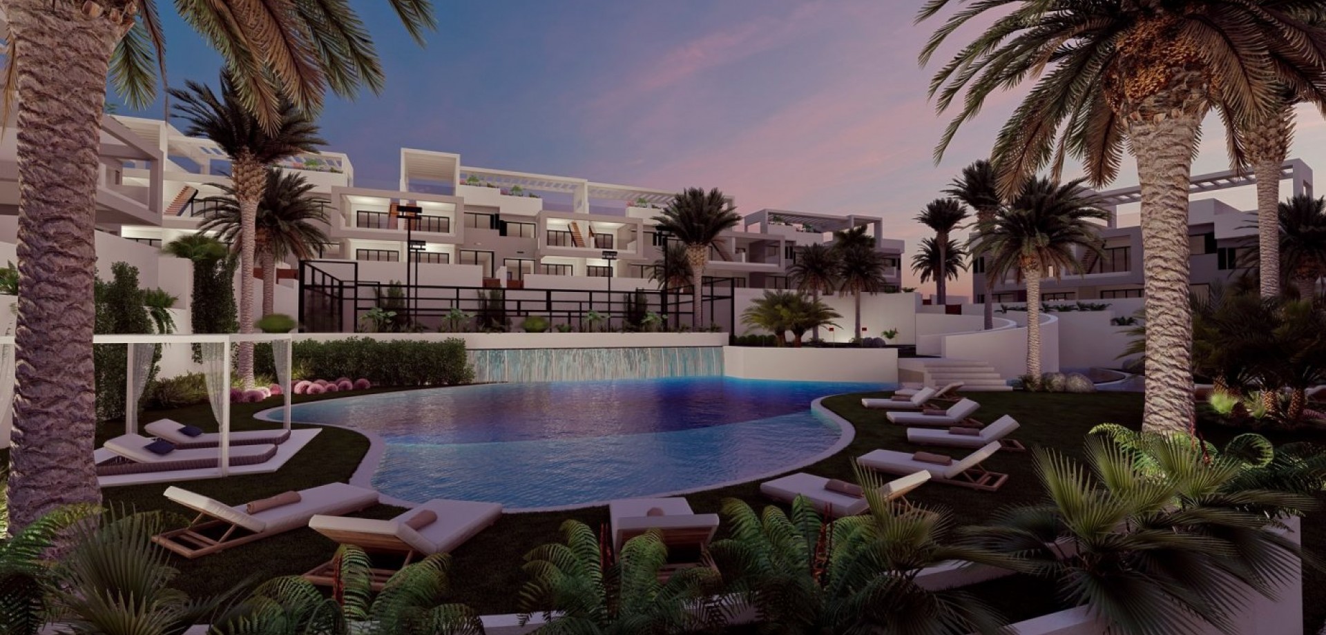 NEUBAU EINER WOHNANLAGE MIT BUNGALOW-WOHNUNGEN IN LOS BALCONES Neubau UNIQUE Wohnanlage in Los Balcones. Die Wohnanlage besteht aus 136 luxuriösen Bungalowwohnungen, die mit hochwertigen Materialien gebaut wurden. Jedes dieser Häuser hat einen magischen Blick auf die Laguna Rosa de Torrevieja und das Mittelmeer. Die Häuser haben mehr als 131m2 verteilt in einem geräumigen Wohn-Esszimmer mit offener Küche, 2 große Schlafzimmer und 2 komplette Bäder. Sie können zwischen Bungalows im Erdgeschoss mit 2 großen privaten Terrassen wählen, um das Klima der Costa Blanca zu genießen. Oder Bungalows im ersten Stock von 178m2 mit einer 85m2 großen Sonnenterrasse mit Panoramablick auf die Laguna Rosa und das Mittelmeer. Die Anlage bietet idyllische, landschaftlich gestaltete Gemeinschaftsbereiche mit 3 Swimmingpools, Whirlpools, Fitnessbereich, Paddle-Tennisplatz, Minigolf, Kinderbereich, Ladestation für Elektrofahrzeuge... und vieles mehr! Die erstklassigen Einrichtungen und Grünflächen ermöglichen es Ihnen, mit Ihrer Familie und Ihren Freunden die 320 Sonnentage zu genießen, die die Costa Blanca zu bieten hat. Los Balcones liegt etwas außerhalb von Torrevieja mit allen zugänglichen Dienstleistungen, nur 5 Minuten von Playa de los Náufragos, Supermärkten, der Schule und dem Einkaufszentrum La Zenia Boulevard und eine Minute von der Universitätsklinik Torrevieja entfernt. Die Anlage liegt 40 Minuten vom Flughafen Alicante und 1 Stunde vom Flughafen Murcia - Corvera entfernt.