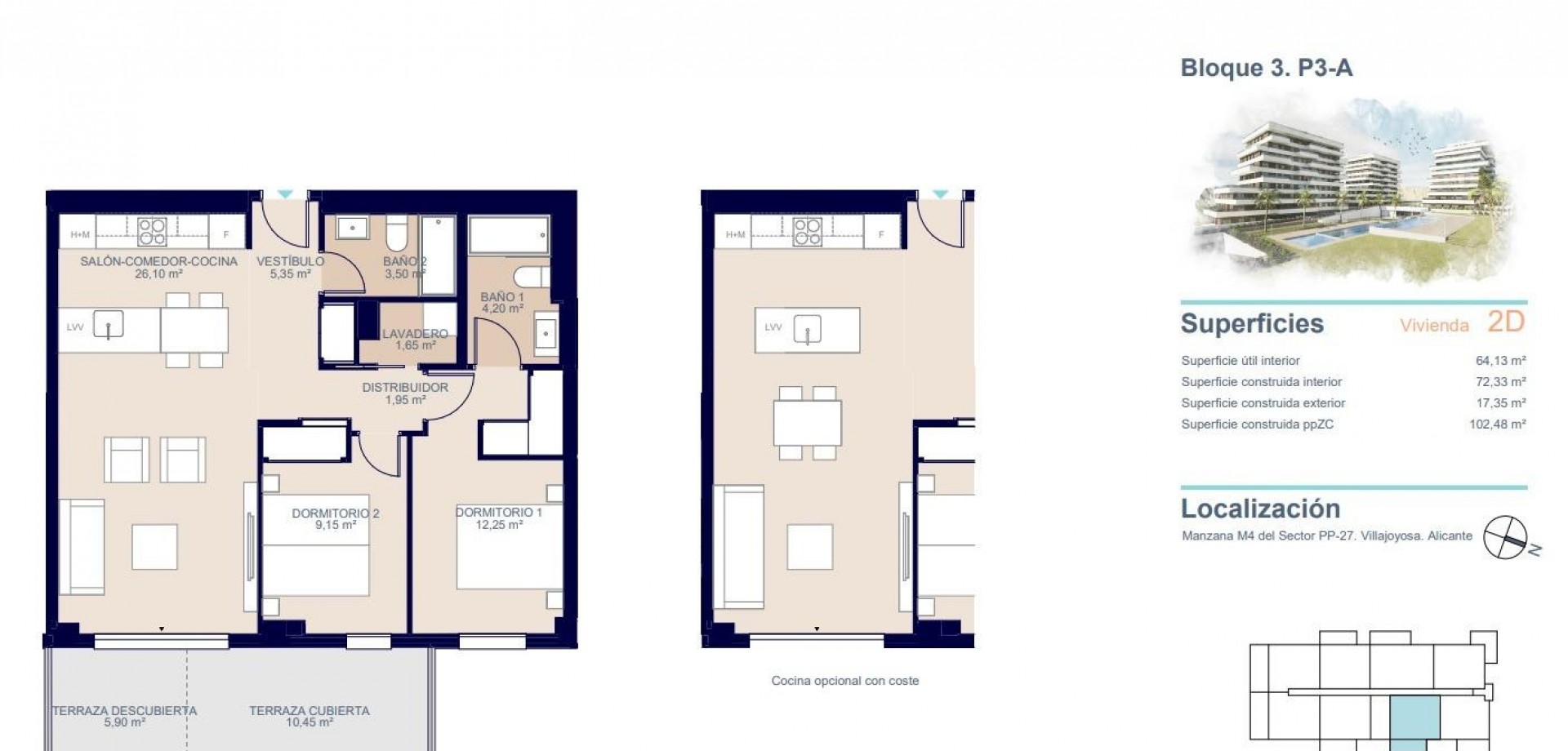NEU GEBAUTE WOHNANLAGE IN VILLAYOJOSA Neubau-Wohnanlage in Villayojosa, nur 450 Meter vom Meer entfernt. Moderne Wohnungen mit 2 und 3 Schlafzimmern, offene Küche mit Wohnbereich, große Terrassen und eine komplette Urbanisation, die einen sozialen Club, Fitnessraum und Schwimmbad umfasst. Die Wohnungen im Erdgeschoss haben einen eigenen Garten. In der Nähe Ihres neuen Zuhauses finden Sie Einkaufszentren, ein Krankenhaus und alle Arten von Dienstleistungen nur wenige Minuten entfernt. Die Anlage liegt nur 2 km vom Zentrum von Villajoyosa und 10 km von Benidorm entfernt. Ihr neues Zuhause befindet sich in einer idyllischen Ecke, Playa del Torres, eine natürliche Umgebung. Eine Bucht mit kristallklarem und ruhigem Wasser, wo das Türkisblau der Hauptdarsteller ist. Alle Immobilien haben einen privaten Parkplatz. Villajoyosa ist eine versteckte Perle an der spanischen Costa Blanca. Das bunte Fischerdorf liegt zwischen Benidorm und El Campello, etwa 30 Autominuten vom Flughafen Alicante entfernt. In den letzten Jahren hat sich der idyllische Ort zu einem begehrten Standort für Zweitwohnsitzler und Touristen entwickelt. Villajoyosa hat viel zu bieten, vom breiten Sandstrand bis zu den engen und farbenfrohen Gassen des historischen Ortskerns. Heute leben mehr als dreißigtausend Menschen in Villajoyosa, und vor allem die farbenfrohen Häuser bieten den vielen Künstlern eine Menge Inspiration. Villajoyosa ist auch für das köstliche Museum der Schokoladenfabrik Valor bekannt.
