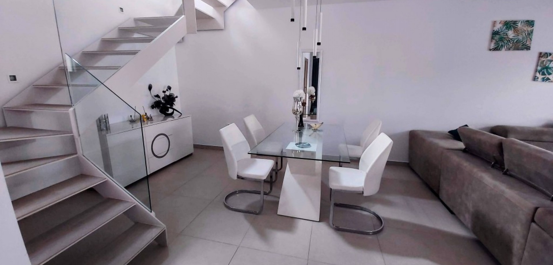 Freistehende Villa in einer Wohnanlage in Ciudad Quesada. Die Villa verfügt über 94m² bebaute Fläche und verteilt sich auf zwei Etagen. Die Hauptetage besteht aus einem geräumigen Wohnzimmer mit Essbereich, einem kompletten Badezimmer und einer voll ausgestatteten Küche. Die obere Etage besteht aus zwei Schlafzimmern mit Einbauschränken und einem Badezimmer. Vom Hauptschlafzimmer aus hat man Zugang zur Terrasse mit toller Aussicht auf die Salinas. Die Villa ist mit den neuesten technologischen Fortschritten ausgestattet und zeichnet sich durch Sicherheit, Privatsphäre und exklusives Design aus.