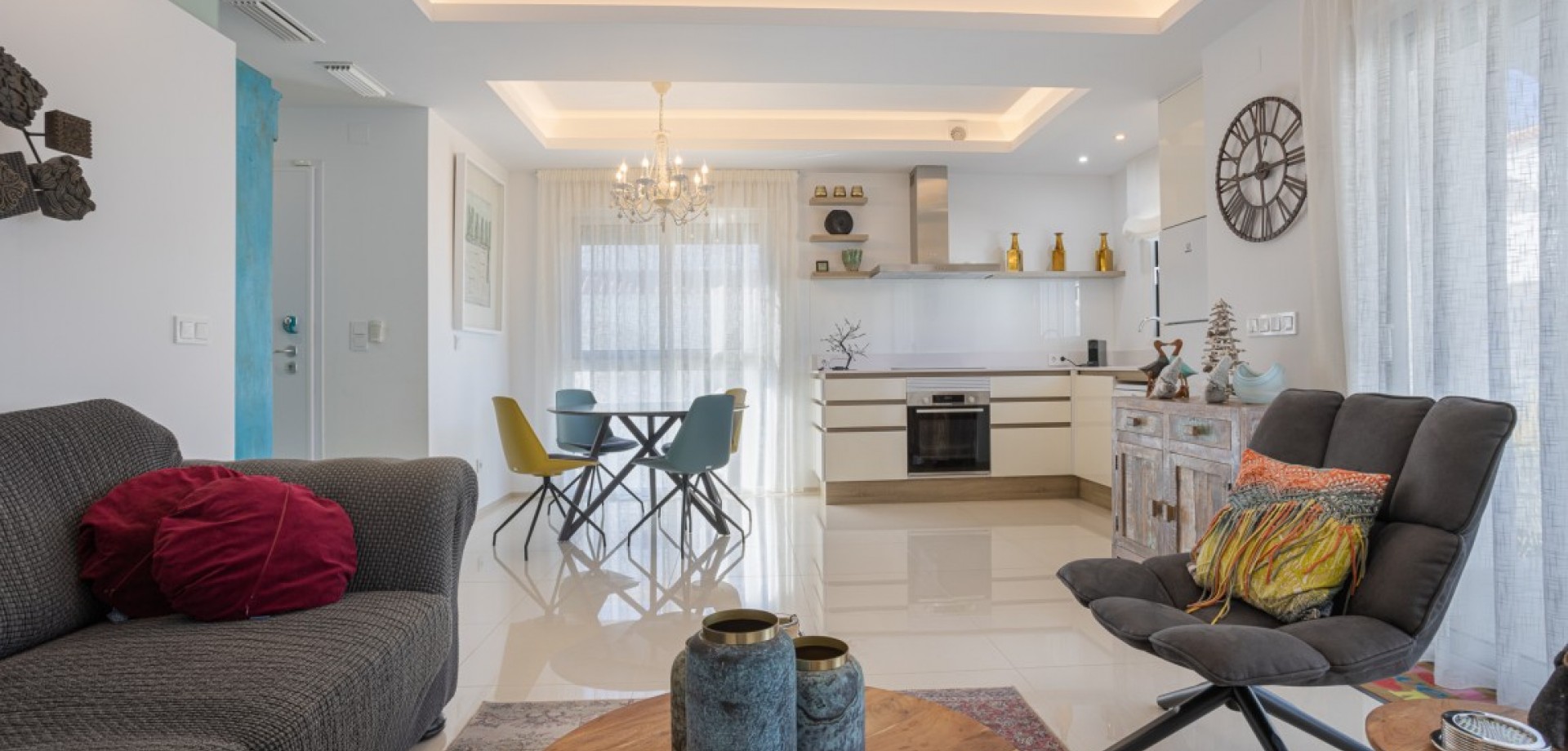 Situado en un entorno espectacular a lo largo de una de las costas más bonitas de España, la Costa Blanca Sur, en la pintoresca localidad de Rojales/Quesada. A poca distancia de la localidad costera de Torrevieja y cerca de la encantadora Guardamar del Segura con sus famosas playas de arena. La accesibilidad del Penthouse 'Allegra' es excelente. Tienes a tu disposición dos aeropuertos: el de Alicante-Elche y el de Murcia-Corvera, situados a tan solo 30 minutos y una hora de distancia respectivamente. El ático 'Allegra' está, por supuesto, completamente equipado y presenta un diseño interior moderno que cumple con los estándares actuales. Está realmente equipado con todas las comodidades y ofrece un ambiente particularmente agradable y acogedor en el que te sentirás inmediatamente como en casa. El ático cuenta, entre otras cosas, con: Dos habitaciones espaciosas y completamente amuebladas. Dos baños modernos Una cocina totalmente equipada Una gran sala de estar con muebles muy cómodos. Dos terrazas, incluido un balcón con una mesa y cuatro sillas, y una terraza en la azotea excepcionalmente grande de no menos de 78 m², que ofrece impresionantes vistas a la laguna y al hermoso jardín con tres grandes piscinas comunitarias. Un parque infantil, instalaciones de fitness y pistas de tenis gratuitas cerca. La generosa y confortable terraza en la azotea incluye: Una espaciosa mesa de comedor con seis sillas bajo un toldo retráctil. Un acogedor conjunto de salón, tumbonas, una cocina exterior completa con barbacoa, frigorífico y fregadero, así como una ducha exterior con agua fría y caliente. Además, el ático ofrece aparcamiento exterior seguro con tres portones eléctricos y una plaza de aparcamiento privada.