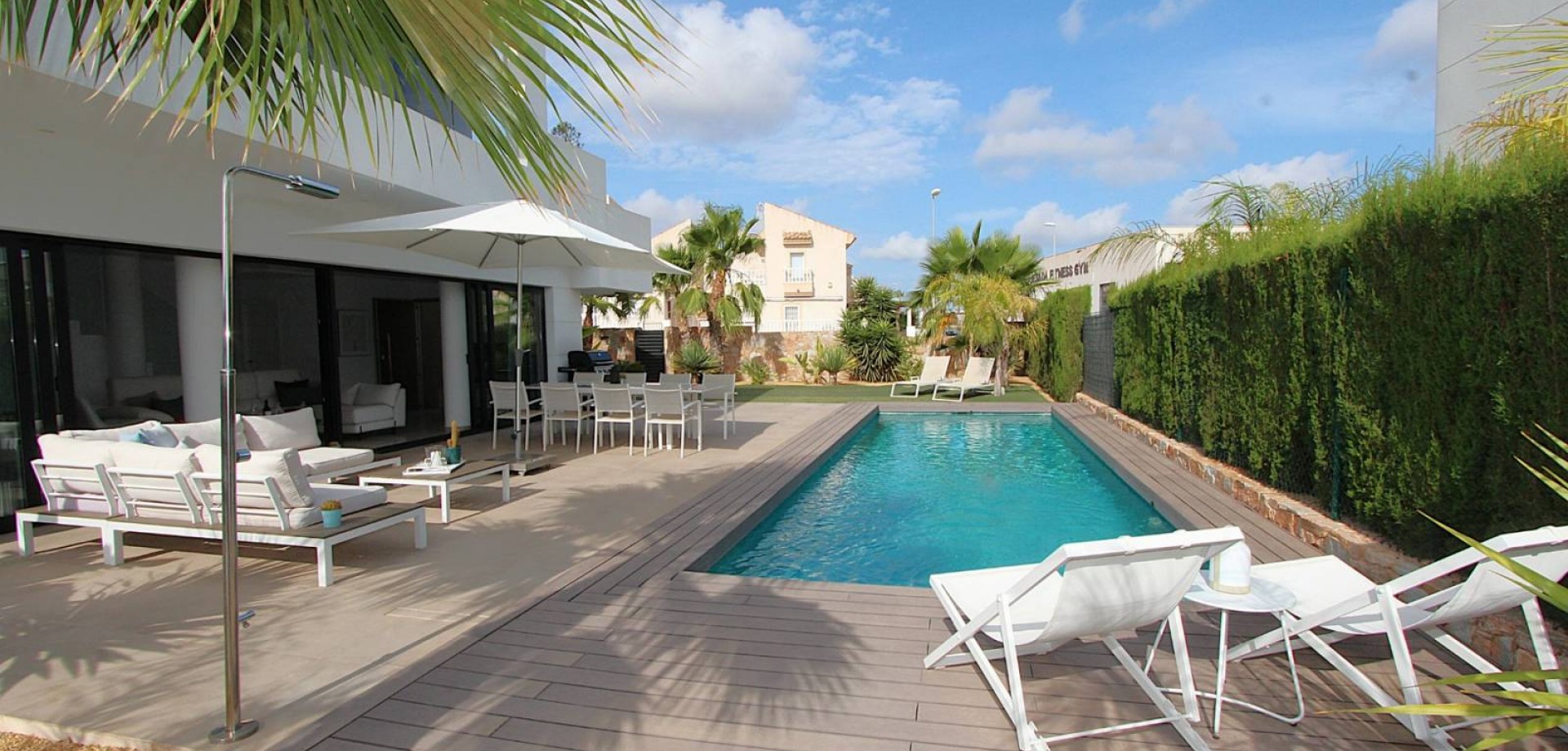Vida de lujo en la Costa Blanca: en venta villa moderna con 3 dormitorios, amplia piscina y jardín tropicalDescubra esta espectacular villa moderna en la soleada Costa Blanca, España, disponible para mudarse de inmediato. Ubicada en una extensa parcela de 530 m², esta propiedad de diseño contemporáneo ofrece todo lo que necesita para disfrutar de la vida mediterránea al máximo. La villa se encuentra a la venta completamente amueblada, permitiéndole disfrutar de su nuevo hogar desde el primer día.Con tres amplios dormitorios y tres elegantes baños, esta villa garantiza confort y privacidad para usted y sus invitados. Cada habitación ha sido meticulosamente diseñada con materiales de alta calidad y acabados modernos, creando un ambiente de vida armonioso y lujoso. (Uno de los dormitorios se encuentra en la planta baja, con baño privado).El verdadero protagonista de esta propiedad es su impresionante piscina privada, ideal para relajarse y disfrutar de un refrescante baño en los cálidos días de verano. El jardín circundante ofrece amplios espacios para relajarse, tomar el sol y disfrutar del aire libre. Además, dispone de zonas perfectas para el entretenimiento al aire libre, para que pueda pasar largas noches de verano en compañía de familiares y amigos.La villa está situada en una zona tranquila y segura, con fácil acceso a hermosas playas, tiendas, restaurantes y todas las comodidades que la Costa Blanca ofrece.Para los aficionados al golf: El prestigioso campo de golf La Marquesa, en Ciudad Quesada, se encuentra a menos de 2 km de la villa.No deje pasar esta oportunidad única de adquirir una villa de lujo en una de las regiones más deseadas de España. Contacte con nosotros hoy mismo para más detalles o para concertar una visita.