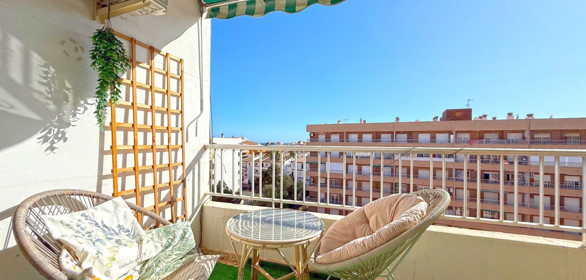Este luminoso y moderno ático en Punta Prima ofrece impresionantes vistas al mar desde su amplia terraza orientada al sur. Situado en la 6ª planta, disfruta de una abundante luz natural y un ambiente costero tranquilo.