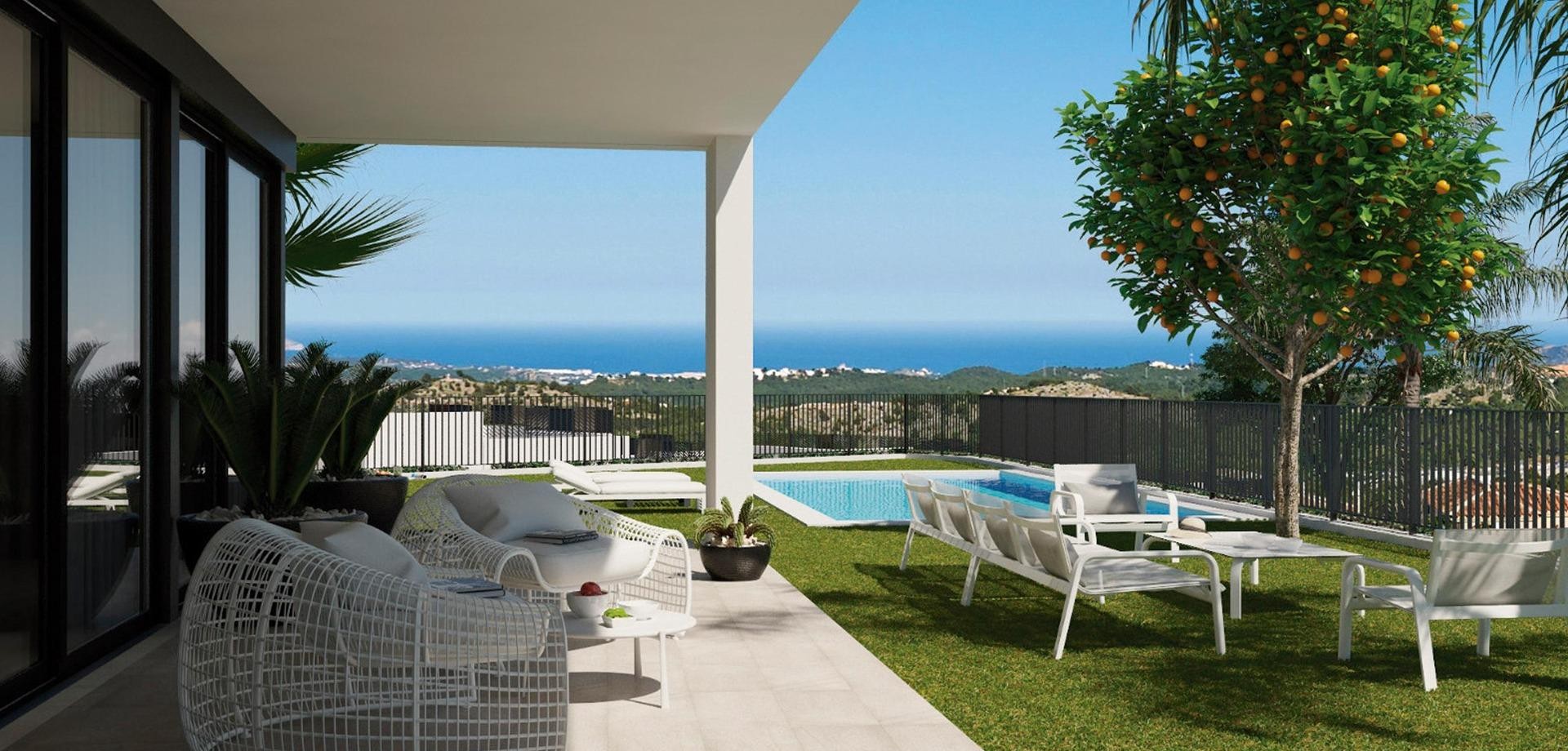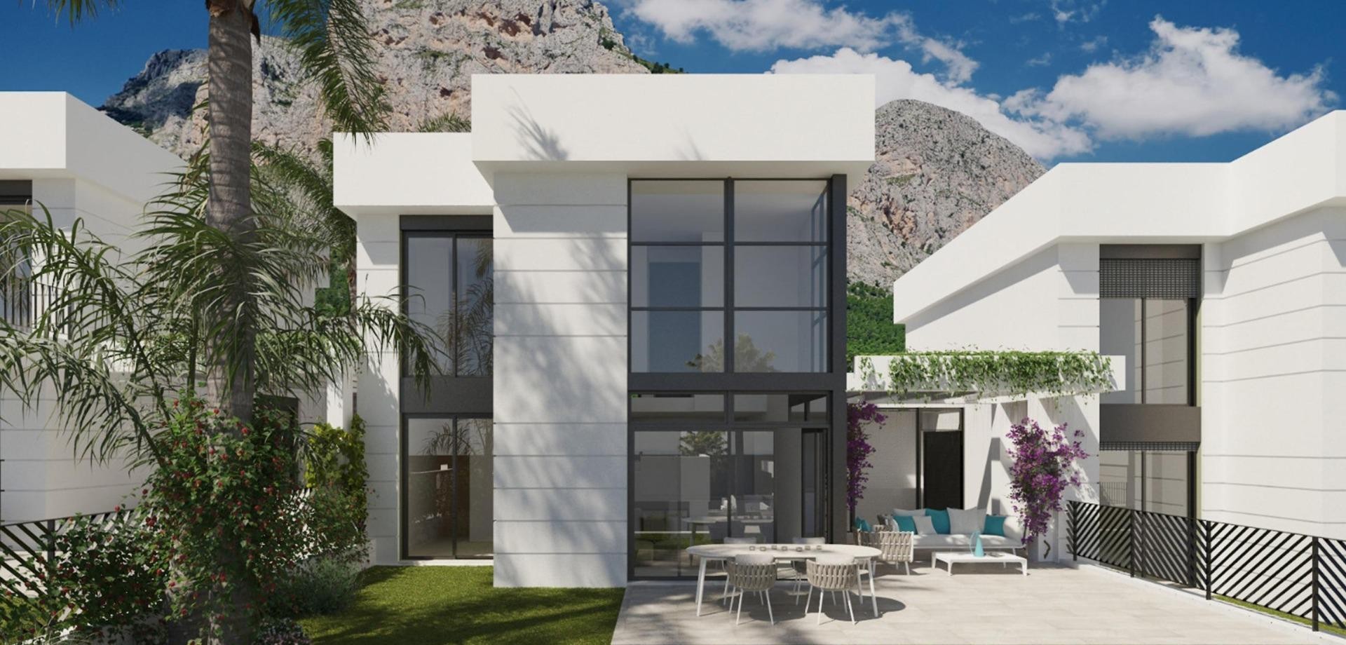 Chalets independientes a estrenar con vistas al mar en Polop (provincia de Alicante) Situado a 10km de las playas y la vida nocturna de Benidorm y del romántico pueblo de Altea. Este residencial se beneficia de maravillosas vistas al mar, piscina comunitaria y área social y las casas se pueden personalizar con algunos extras como piscina privada, solarium privado, garaje subterráneo, etc. Diferentes modelos para elegir en función de tus necesidades y presupuesto, con 2 o 3 dormitorios. Residencial se ha diseñado con la mayoría de las casas en un solo nivel para evitar escaleras dentro de las casas y hacerlas más cómodas para vivir.