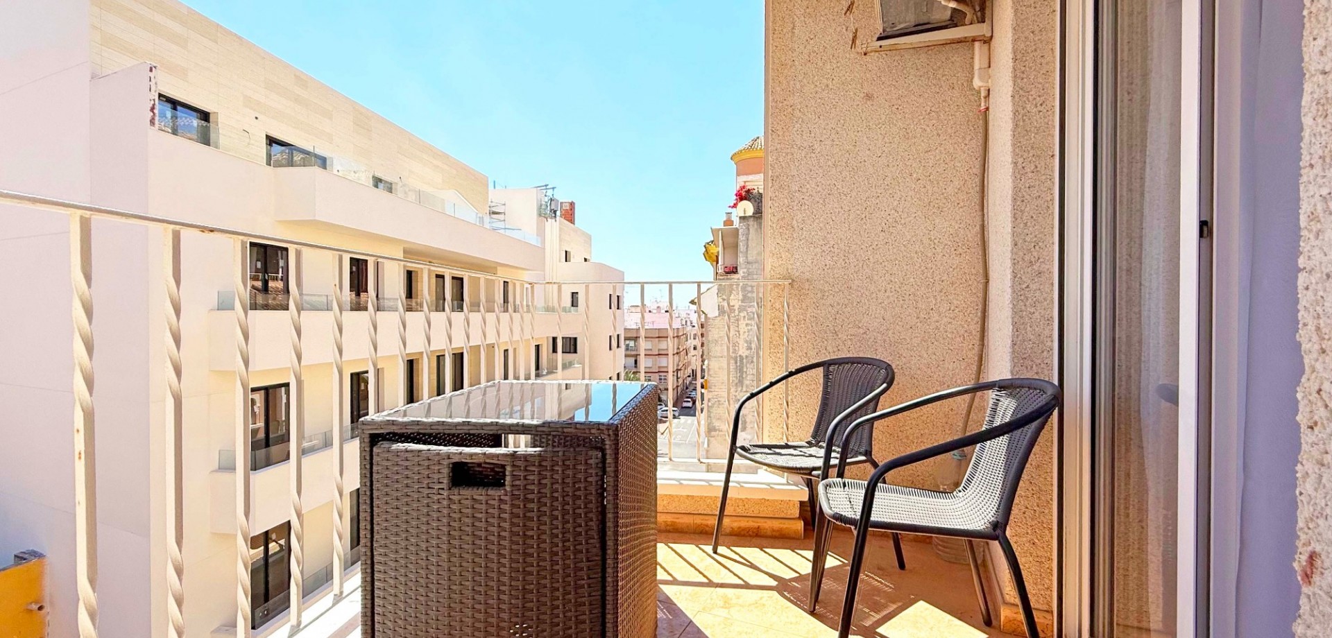 Ubicado a solo unos pasos del paseo marítimo y todos los servicios, este apartamento en tercera planta se presenta en excelentes condiciones y ofrece una vida cómoda en el corazón de Torrevieja.