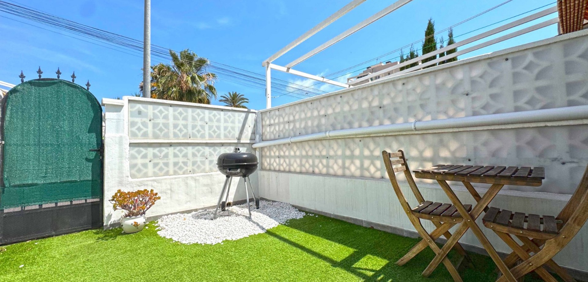 Ubicada sobre una parcela de 60 m² con una superficie construida de 45 m², la propiedad dispone de un jardín privado de 15 m² y una terraza, perfectos para disfrutar del clima mediterráneo. También cuenta con barbacoa incorporada y un trastero independiente.