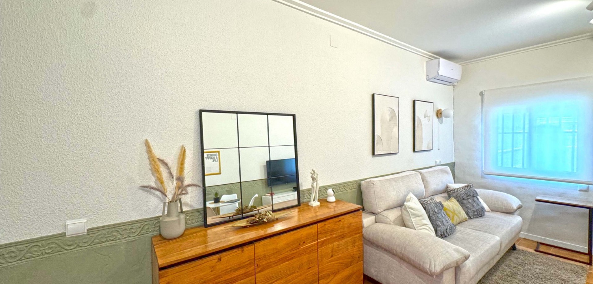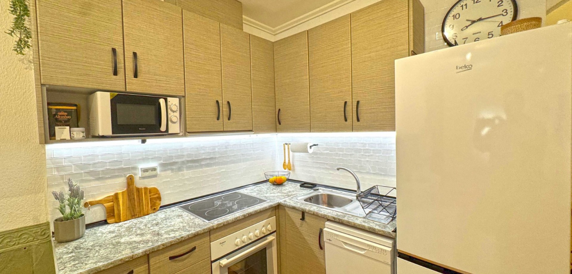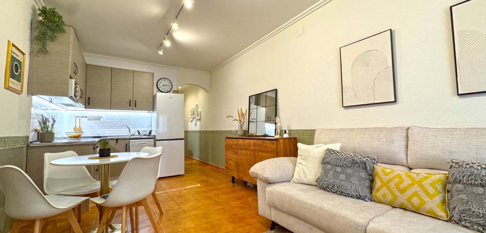 El interior ofrece un dormitorio amplio y luminoso, un baño completo, salón-comedor con aire acondicionado y una cocina equipada. Se vende totalmente amueblada y en buen estado, lista para entrar a vivir.