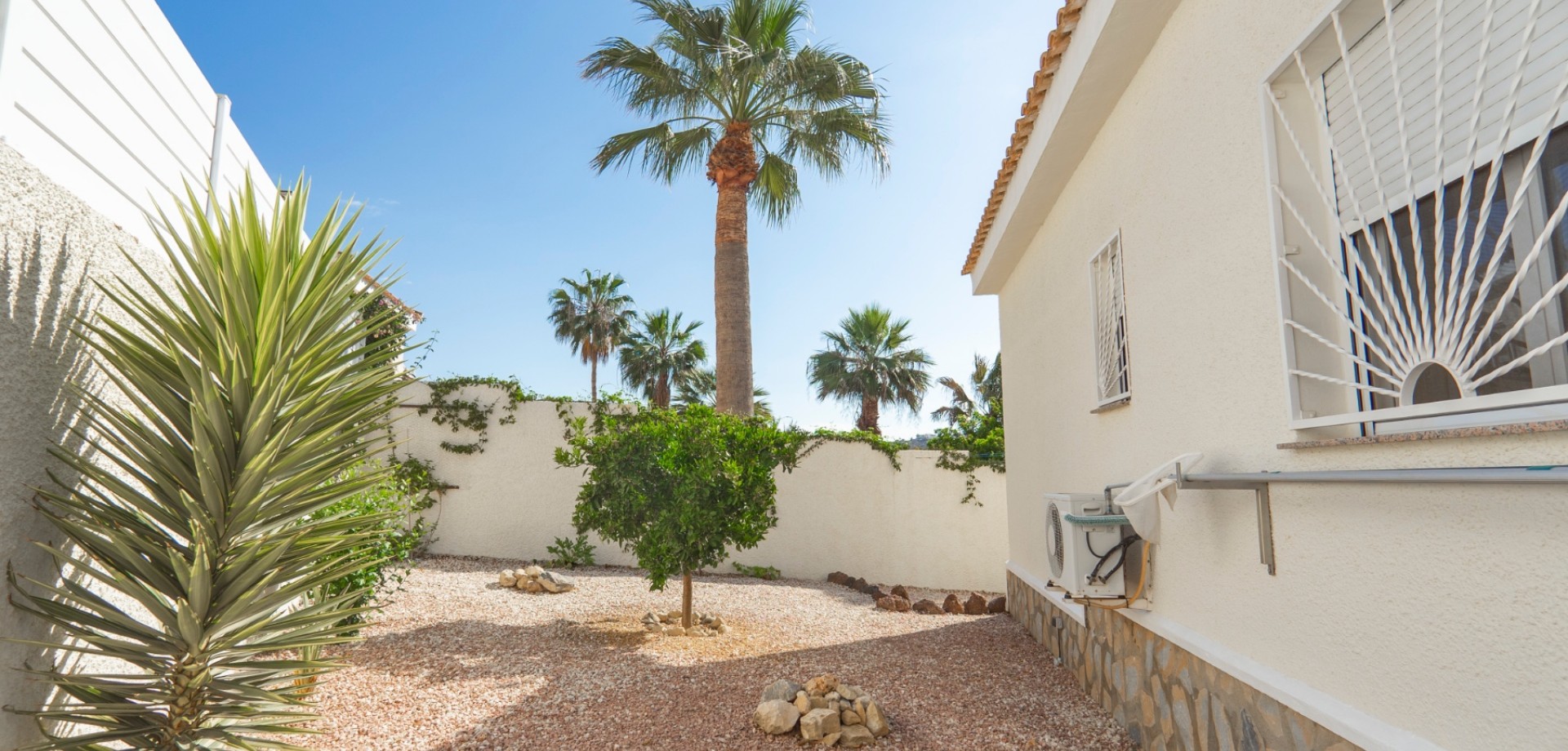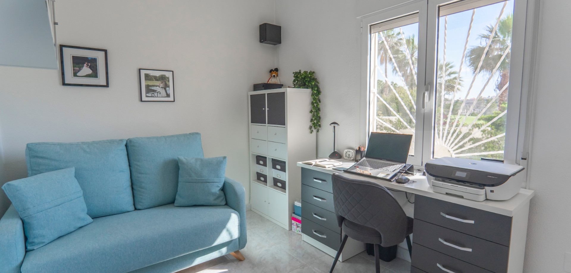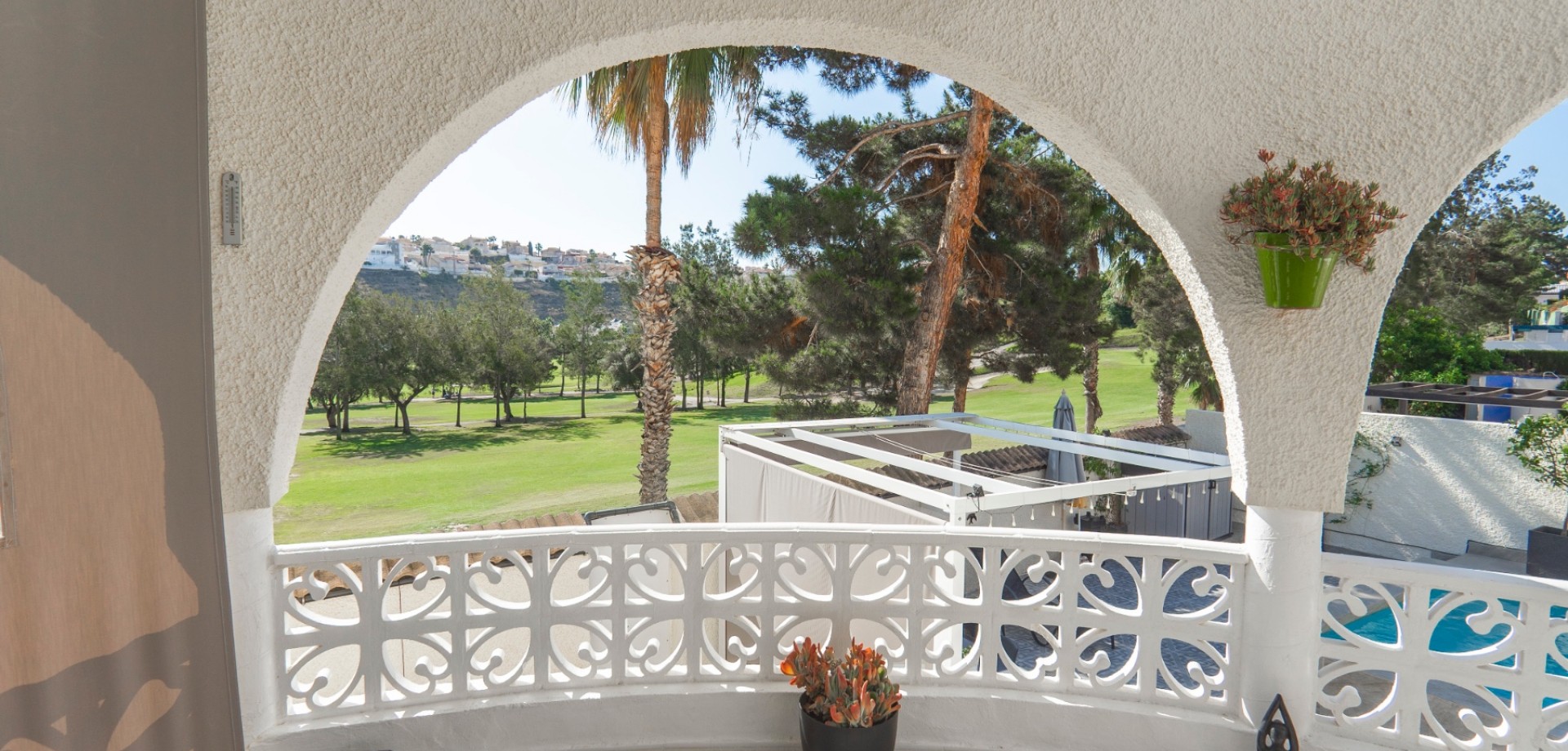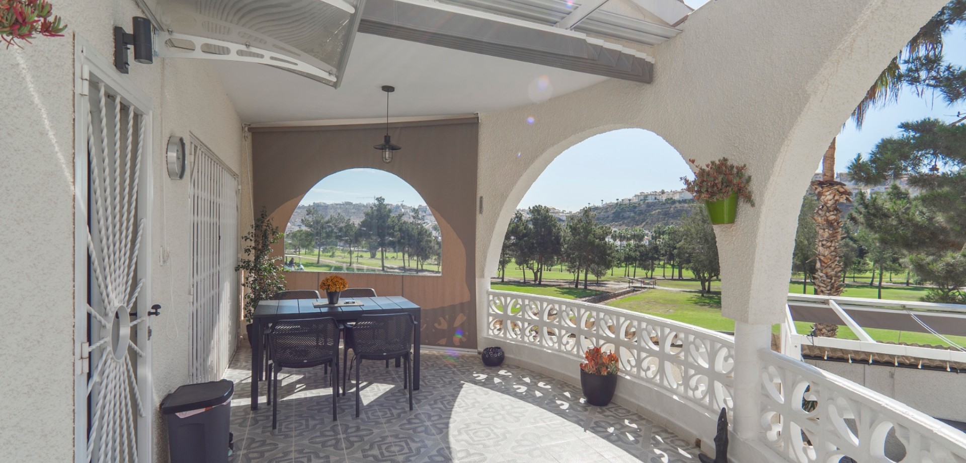 En el exterior, encontrará una piscina privada rodeada de un hermoso jardín de fácil mantenimiento, perfecto para disfrutar del sol en total tranquilidad. Una cochera cubierta ofrece aparcamiento seguro, y su apacible entorno hace de esta villa un lugar ideal tanto para vivir todo el año como para una relajante escapada vacacional. Ya sea disfrutando de su café de la mañana en la terraza o organizando una barbacoa al atardecer, las vistas panorámicas al campo de golf ofrecen un telón de fondo espectacular cada día.