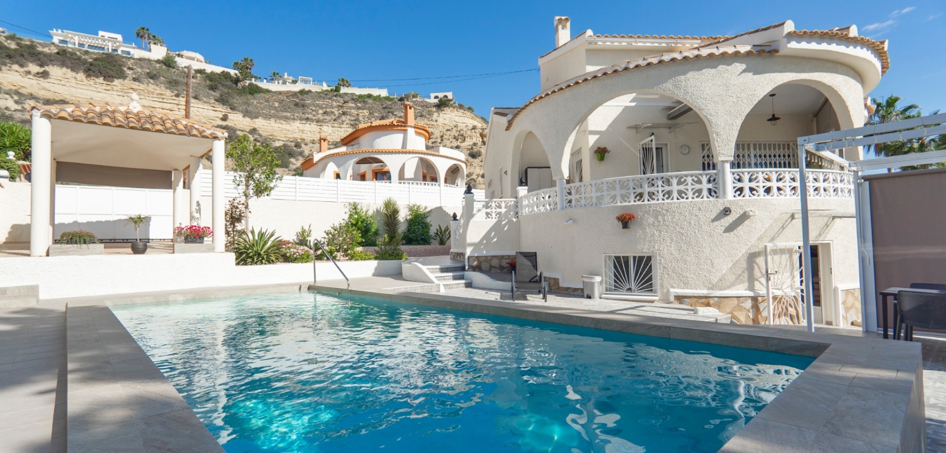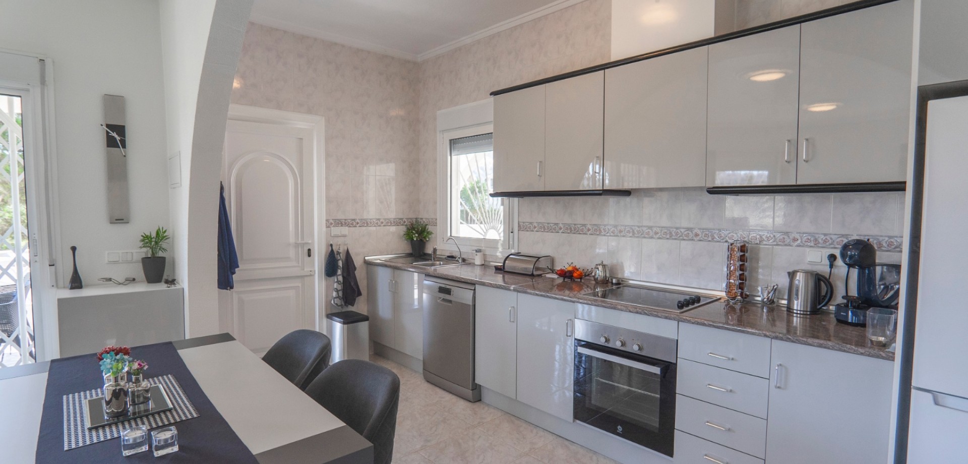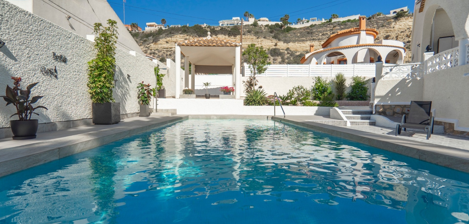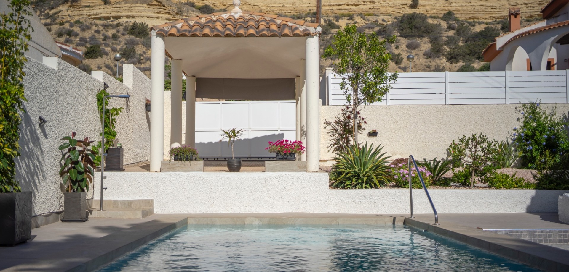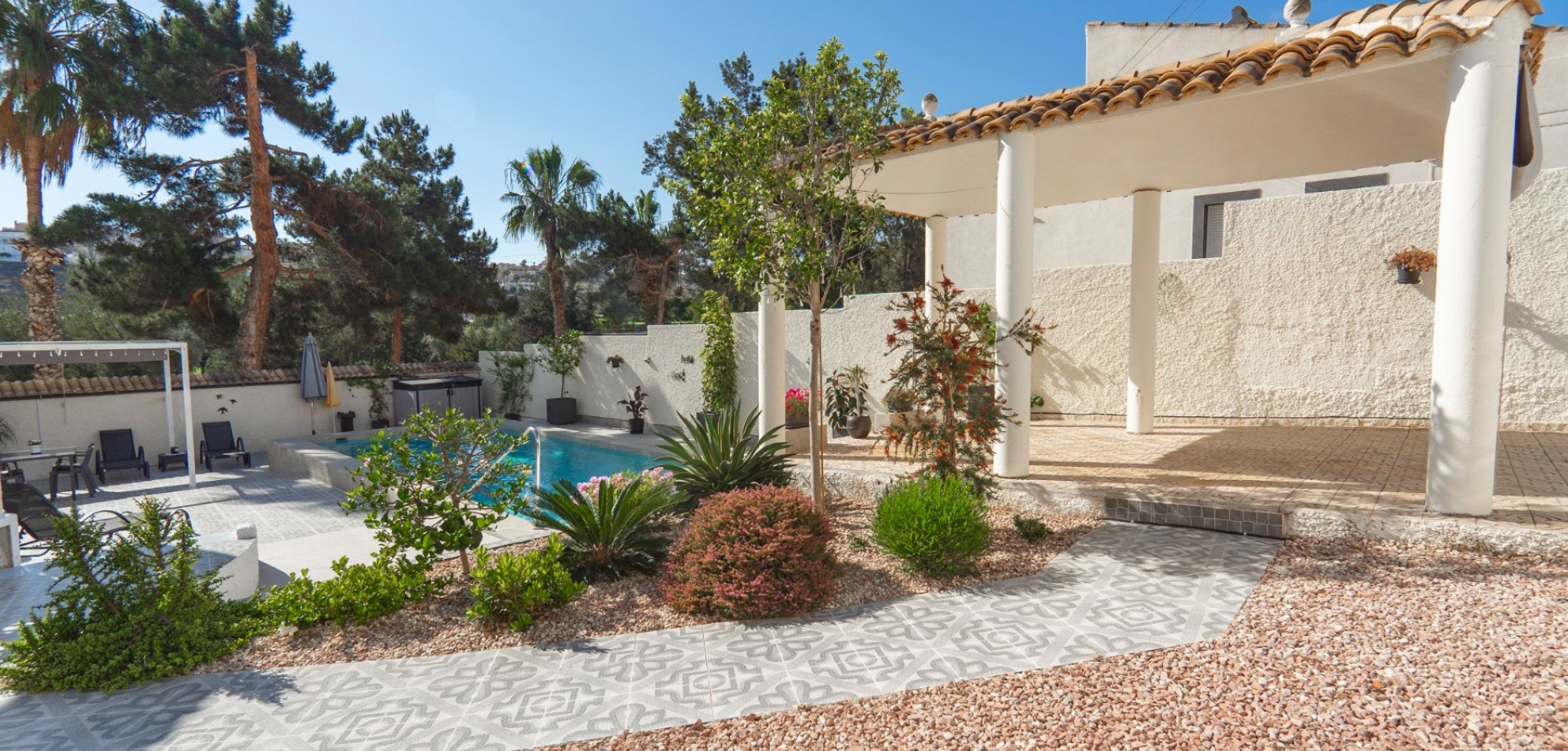 En el exterior, encontrará una piscina privada rodeada de un hermoso jardín de fácil mantenimiento, perfecto para disfrutar del sol en total tranquilidad. Una cochera cubierta ofrece aparcamiento seguro, y su apacible entorno hace de esta villa un lugar ideal tanto para vivir todo el año como para una relajante escapada vacacional. Ya sea disfrutando de su café de la mañana en la terraza o organizando una barbacoa al atardecer, las vistas panorámicas al campo de golf ofrecen un telón de fondo espectacular cada día.