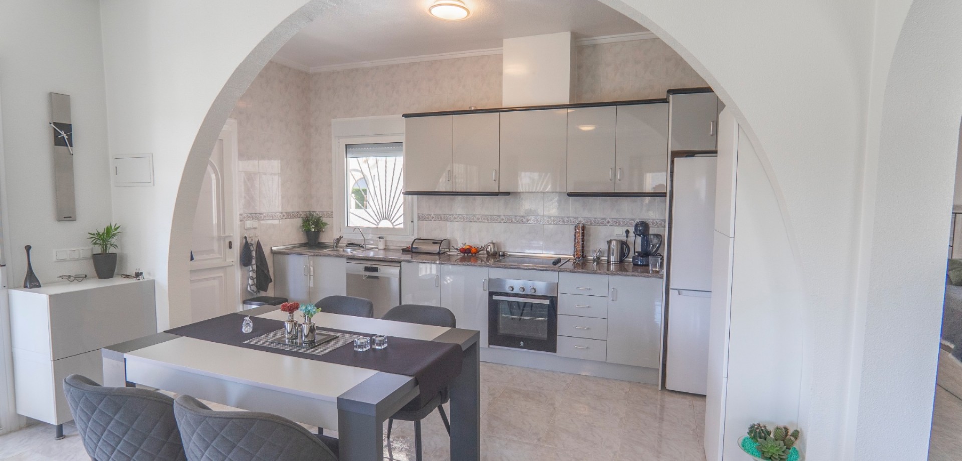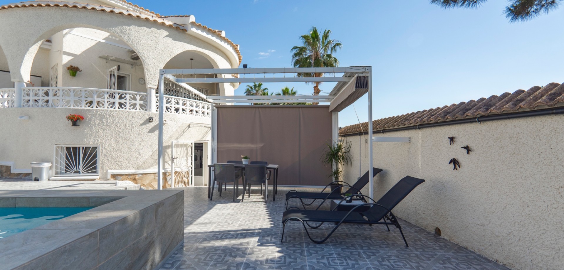 Ubicada junto al prestigioso campo de golf La Marquesa, esta excepcional villa de 3 dormitorios y 3 baños ofrece una combinación inigualable de ubicación, comodidad y encanto mediterráneo. Ubicada en una amplia parcela de 538 m², la propiedad disfruta de un entorno tranquilo, vistas despejadas al campo de golf y está perfectamente ubicada a solo dos minutos de los animados restaurantes, bares e incluso un práctico supermercado de la zona de La Marquesa, lo que facilita la vida diaria. Además, el vibrante centro de Ciudad Quesada, con su amplia selección de tiendas, supermercados, servicios médicos y mercados semanales, está a solo cinco minutos en coche.