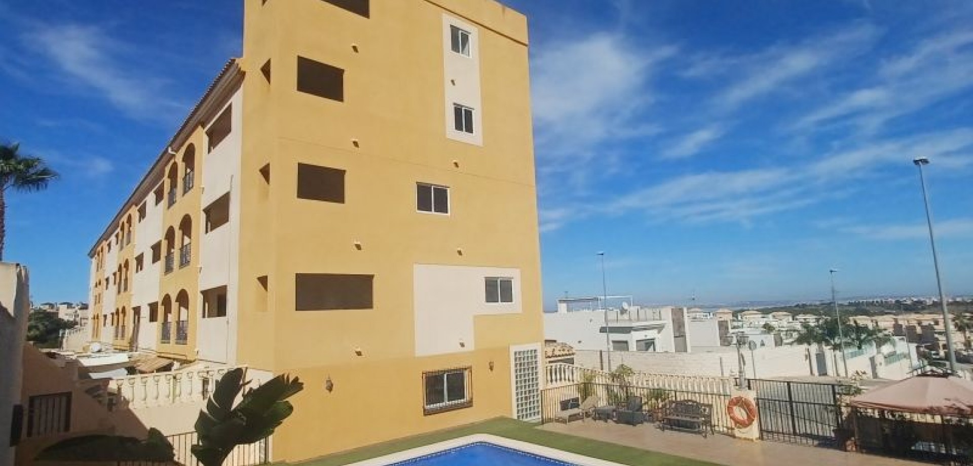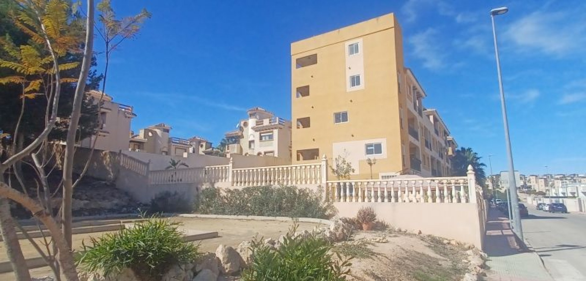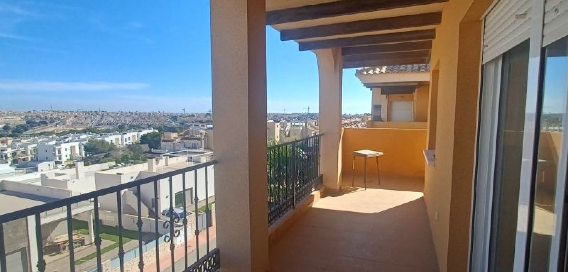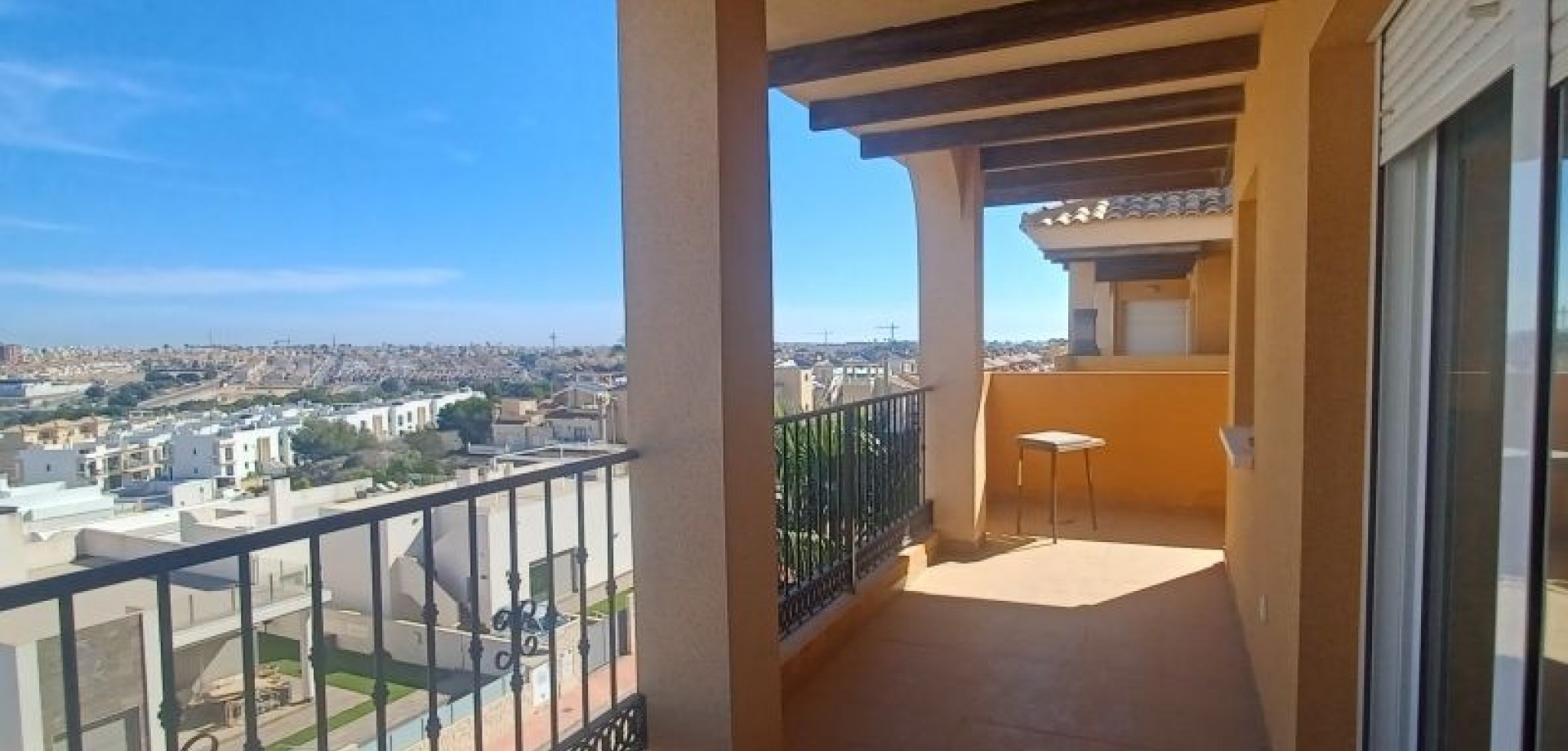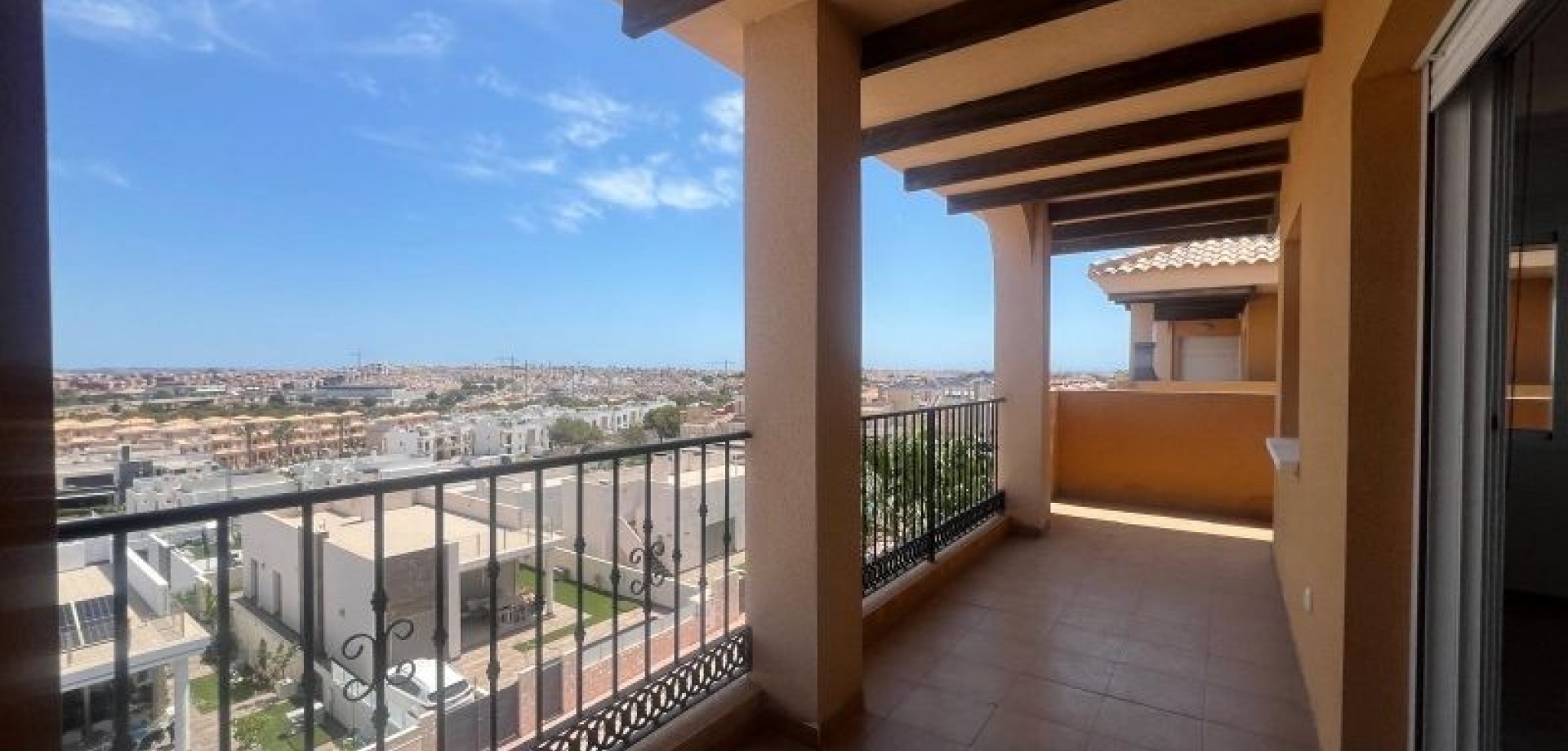 AMPLIO ÁTICO CON TERRAZA Y SOLARIUM PRIVADO CON VISTAS Y PISCINA FACIL POSIBILIDAD DE AMPLIAR A 3 DORMITORIOS Situado en zona Residencial tranquila, junto a zona verde protegida, a 1 km de Servicios, como Parada de Bus, Supermercados como ALDI, Consum,... a 2 km de Campo de Golf de Villamartin y a 5 km de las Playas de Orihuela Costa, como Punta Prima, Playa Flamenca, La Zenia,... La vivienda es Tipo Ático, Tercera Planta, dispone de Ascensor. Salón muy amplio, diseño cuadrado con acceso a Terraza con Vistas despejadas a Mar y Zonas verdes. Dispone de una Sala extra que puede ser habilitada fácilmente como el tercer dormitorio o un estudio extra independiente. Piscina Comunitaria. Necesita instalar la cocina.