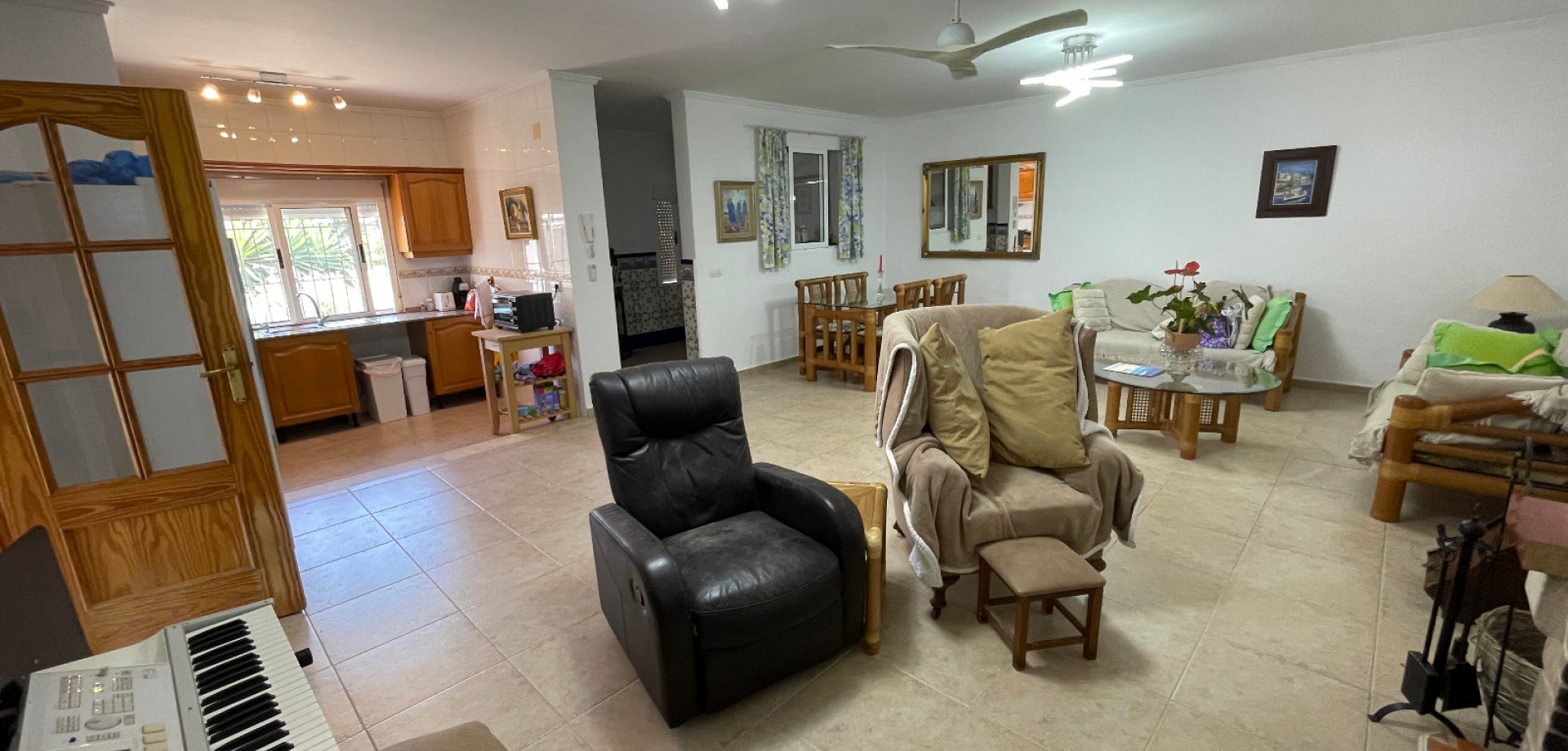 Encantadora Villa de una Planta con Piscina Privada y Amplia Parcela en Daya Nueva Descubre esta magnífica propiedad situada en el tranquilo y pintoresco pueblo de Daya Nueva, en el corazón de la Costa Blanca. Una zona muy valorada por su entorno natural, ambiente relajado y fácil acceso a servicios locales y playas cercanas. La vivienda, construida en una sola planta sobre una generosa parcela de 2.005 m², ofrece comodidad, amplitud y privacidad en un entorno rodeado de naturaleza. Consta de 4 amplios dormitorios y 3 baños, ideal para familias grandes o para quienes disfrutan de recibir visitas. La cocina es grande y funcional, perfecta para los amantes de la cocina, y se conecta con una luminosa zona de estar. Las habitaciones están diseñadas para el confort, con espacios muy generosos y buena iluminación natural. En el exterior, encontrarás una preciosa piscina privada, jardines cuidados con árboles variados y frutales, además de plantas ornamentales que embellecen toda la finca. Hay también una terraza cubierta ideal para disfrutar del aire libre durante todo el año. Una de las joyas de esta propiedad es un espacio actualmente habilitado como taller, que podría convertirse fácilmente en una casa de invitados independiente, oficina, estudio creativo o seguir siendo un espacio funcional según las necesidades. La propiedad se vende parcialmente amueblada y cuenta con conexiones a la red general de agua y electricidad. Muchas mejoras han sido realizadas recientemente, lo que hace que esta casa esté lista para entrar a vivir. Una oportunidad única si buscas una vivienda rodeada de naturaleza y tranquilidad, sin renunciar a las comodidades modernas. ¡Visita muy recomendada!
