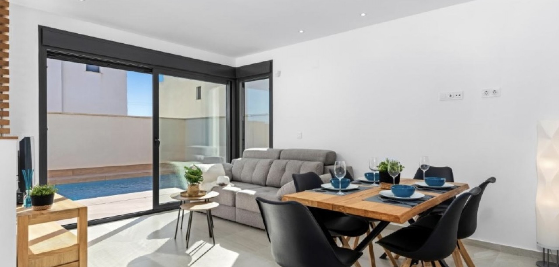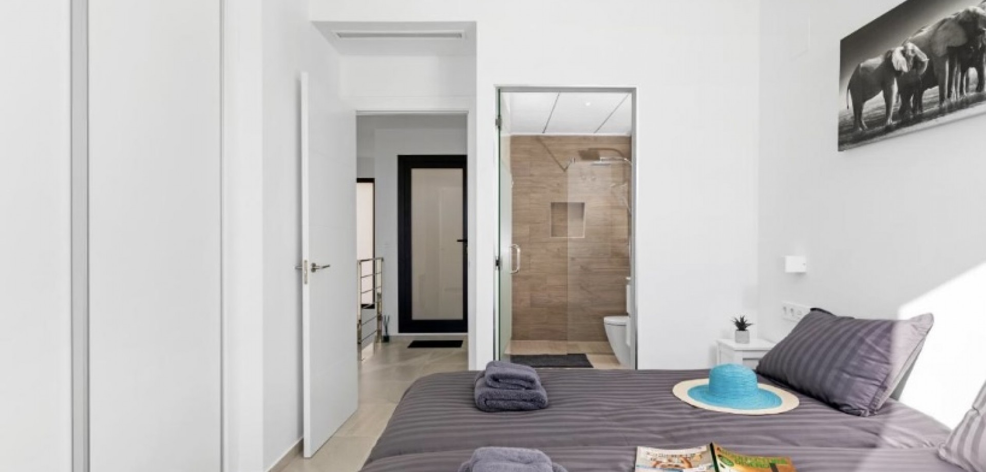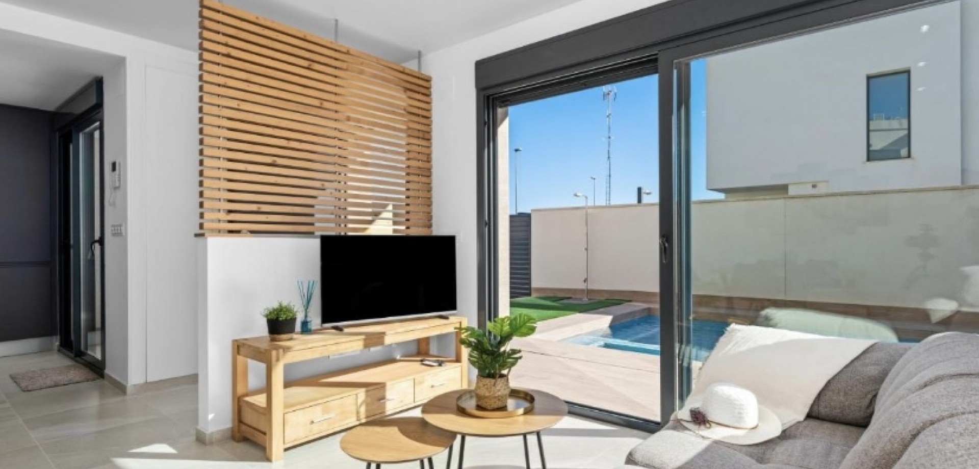 Villa reciente de lujo en San Miguel Descubra esta preciosa villa de nueva construcción, situada en una zona tranquila a sólo 2 km del centro de San Miguel. Esta casa moderna y residencial cuenta con tres amplios dormitorios y dos elegantes baños . El jardín privado con piscina ofrece el lugar perfecto para relajarse y disfrutar del clima mediterráneo. Ubicada a sólo 20 minutos de las playas más hermosas de la Costa Blanca y rodeada por dos reconocidos resorts de golf, esta propiedad combina tranquilidad, lujo y una excelente ubicación. Los aeropuertos internacionales de Alicante (35 minutos) y Corvera – Murcia (40 minutos) son de fácil acceso, lo que la convierte en la inversión ideal tanto para residencia permanente como para alojamiento vacacional. ¿Quieres saber más sobre esta exclusiva villa? ¡Contáctanos!