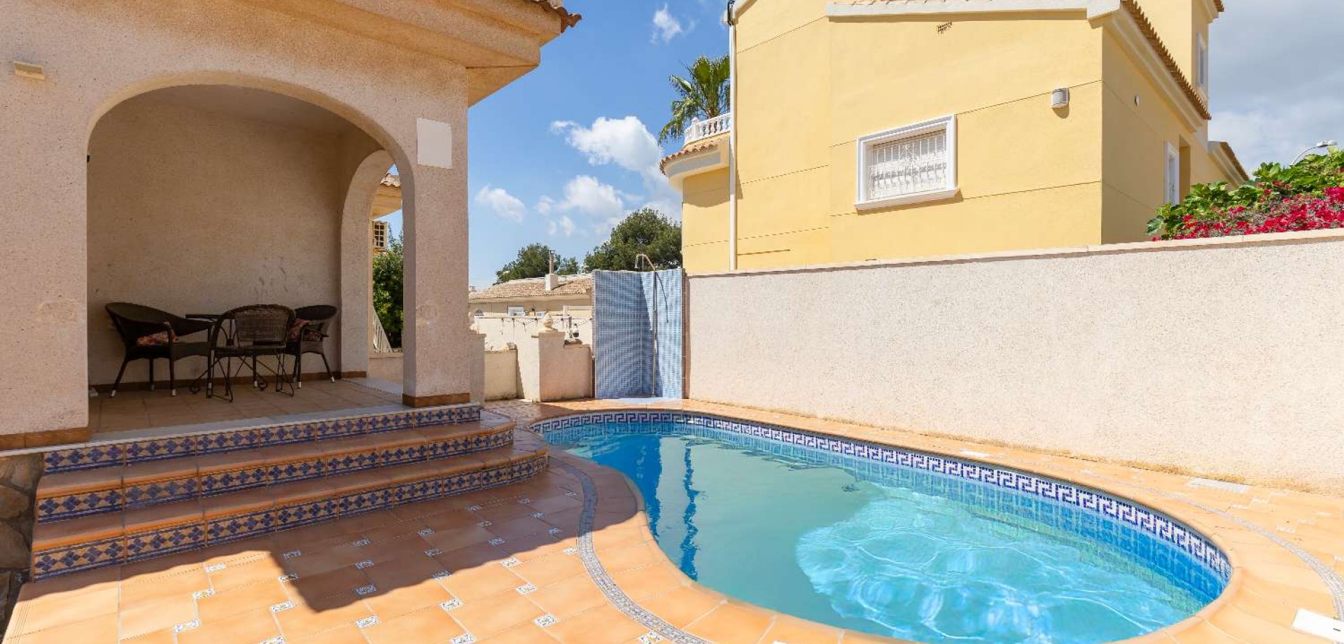 ¡OFERTA! Estupenda villa adosada con piscina privada en Villamartín 2 dormitorios 2 baños Piscina privada Solarium Aparcamiento privado Aire acondicionado Amueblada En buen estado ¡OFERTA! Encantadora villa adosada con piscina privada en Villamartín ¡No pierda esta fantástica oportunidad de adquirir una encantadora villa adosada de 2 dormitorios y 2 baños, con piscina privada! Características principales: Espacioso espacio: Disfrute de una distribución luminosa y espaciosa, perfecta para una vida cómoda. Piscina privada: Relájese y descanse junto a su acogedora piscina, ideal para los días soleados. Solarium: Aproveche el sol en su solárium privado, perfecto para tomar el sol o entretenerse. Servicios adicionales: Aparcamiento privado: Práctico aparcamiento privado para su vehículo. Aire acondicionado: Manténgase fresco y cómodo todo el año con el aire acondicionado. Totalmente amueblada: Esta villa se entrega amueblada y está en buen estado, lista para entrar a vivir. Esta villa adosada es perfecta tanto para vivir todo el año como para disfrutar de unas vacaciones en la hermosa zona de Villamartín. ¡Contáctanos hoy mismo para programar una visita y aprovechar esta increíble oferta!