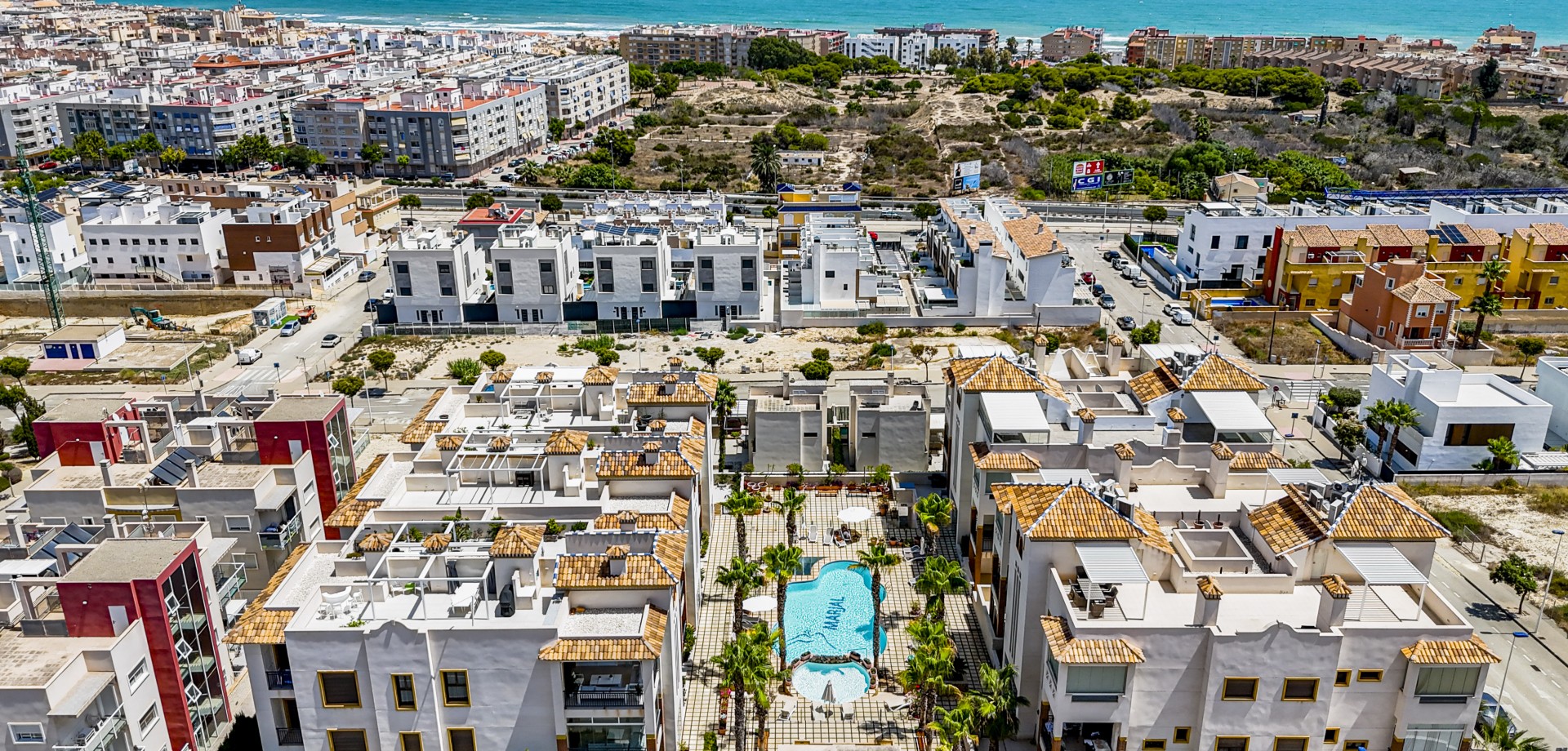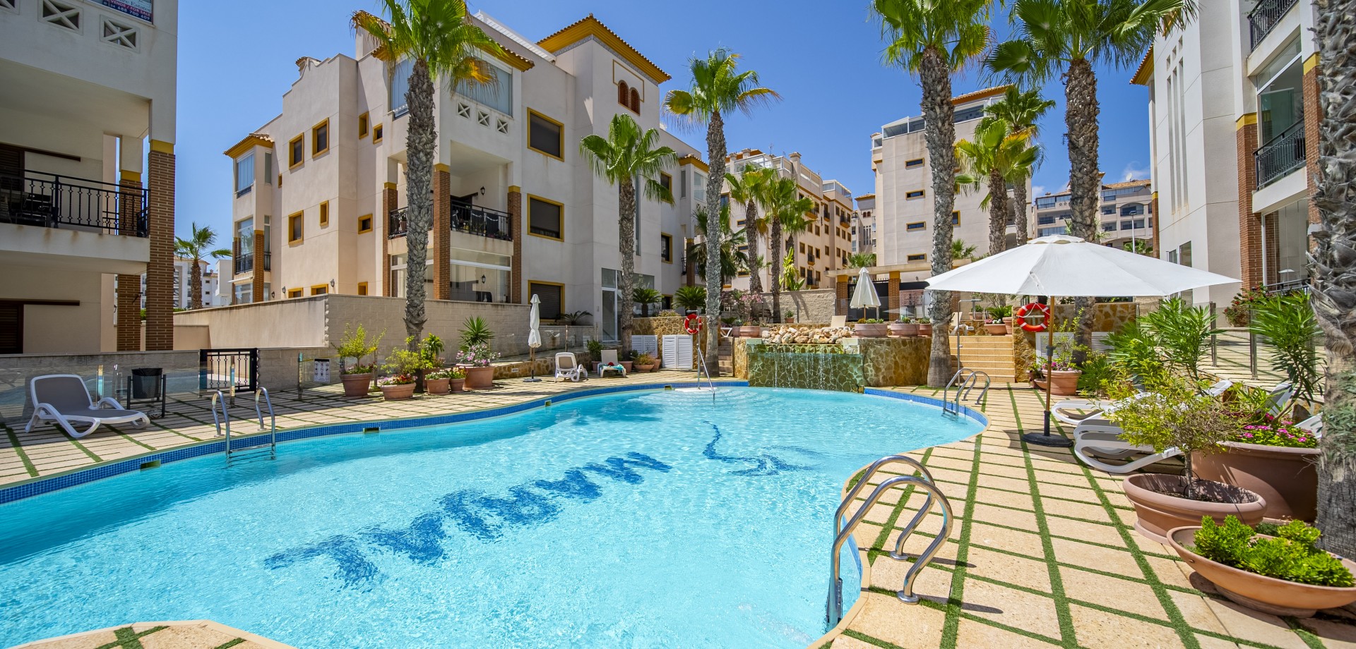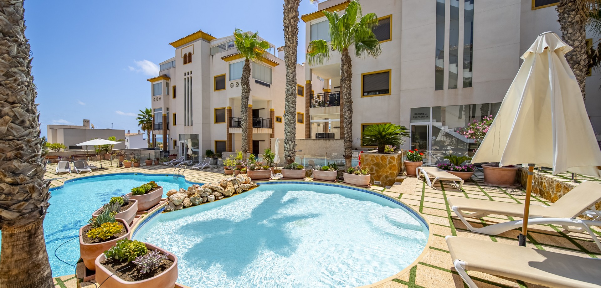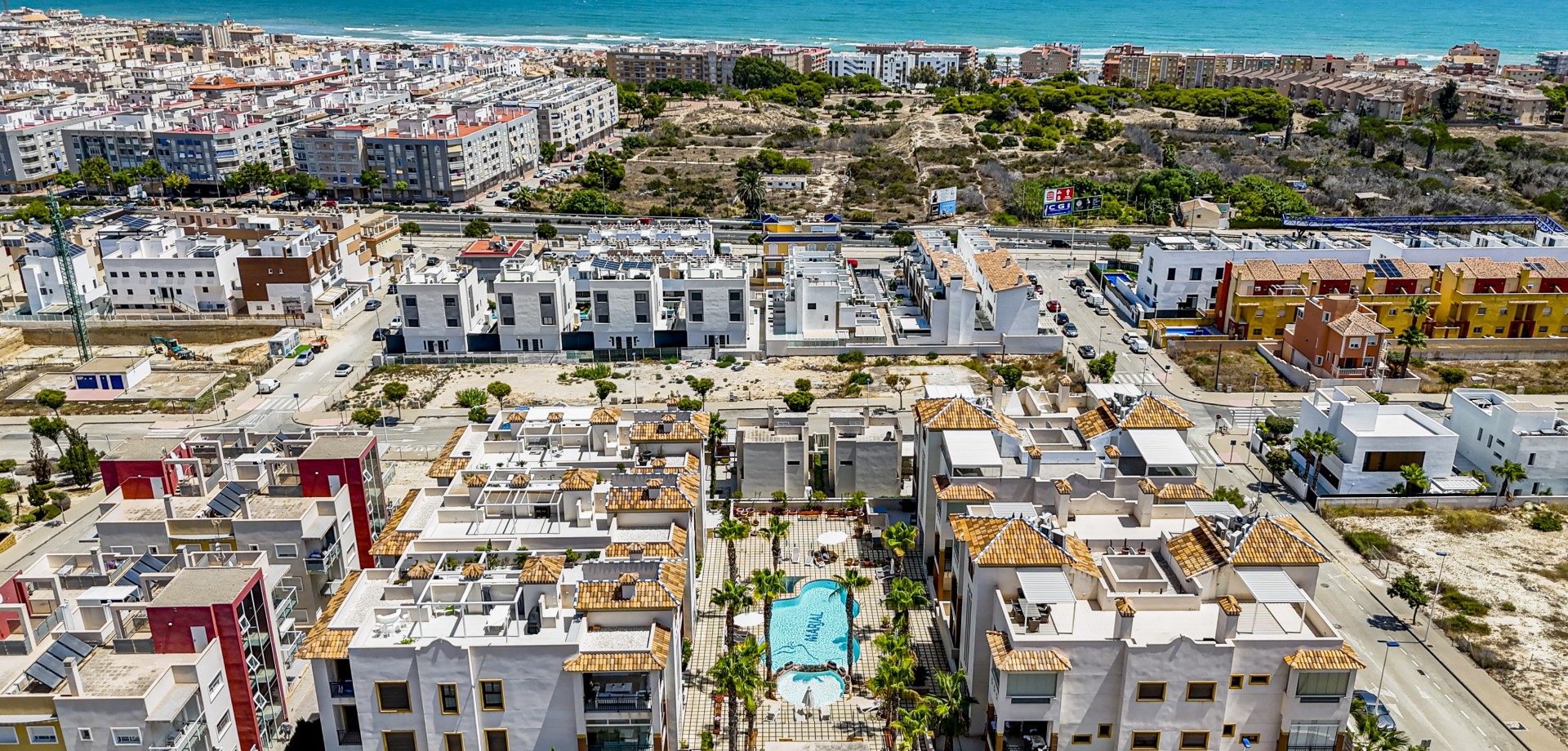 Apartamento en planta baja con vistas al mar en Guardamar del Segura. Ubicado en un cuidado residencial de estilo mediterráneo, este apartamento ofrece 70 m² construidos con 2 dormitorios y 2 baños, uno de ellos en suite. Dispone de un luminoso salón-comedor con cocina abierta y una amplia terraza de 40 m² con vistas al mar. Incluye plaza de parking subterráneo y trastero. El complejo cuenta con piscina comunitaria con cascada y zona de playa, piscina interior climatizada, gimnasio, sauna y vestuarios. Construido en 2013, se encuentra a solo 850 m de la playa de Guardamar y cerca de bares, tiendas y restaurantes. El aeropuerto de Alicante está a 30 min en coche. Características destacadas: 2 dormitorios y 2 baños (1 en suite) 70 m² construidos + terraza de 40 m² Vistas al mar 1 plaza de parking subterráneo y trastero Piscina exterior con cascada y zona de playa Piscina interior climatizada Gimnasio, sauna y vestuarios Año de construcción: 2013 Gastos anuales: IBI: 386,43 € Comunidad: 960 € Distancias: A 850 m de la playa de Guardamar A menos de 1KM de bares, restaurantes y tiendas Aeropuerto de Alicante a 30 minutos