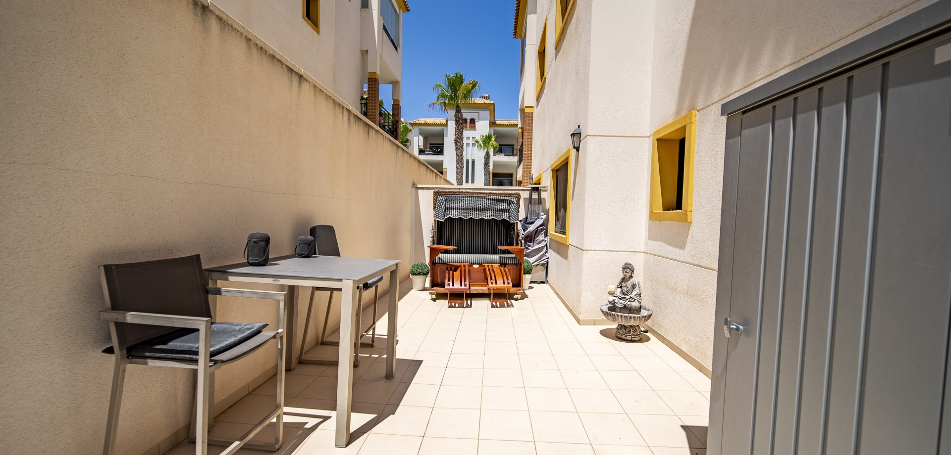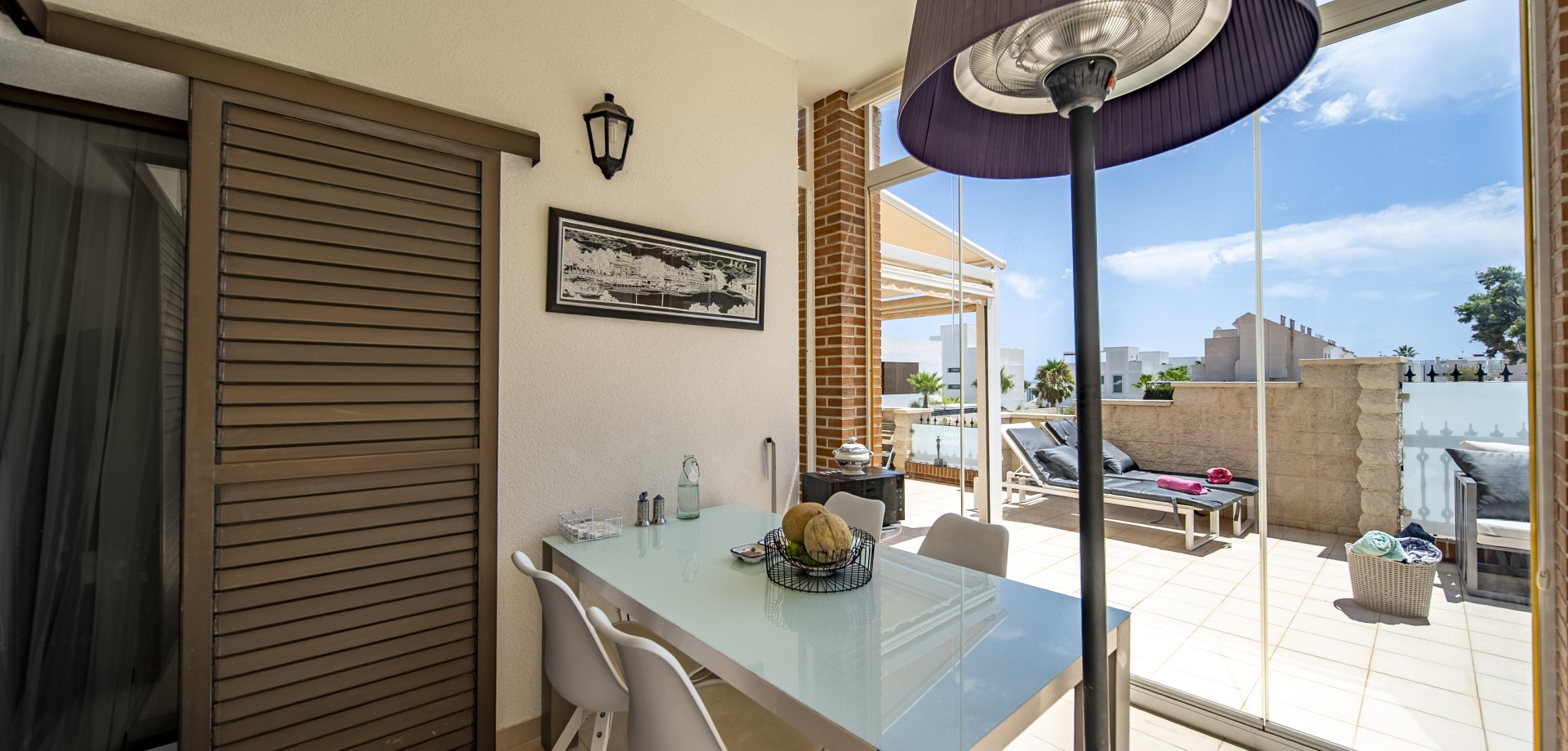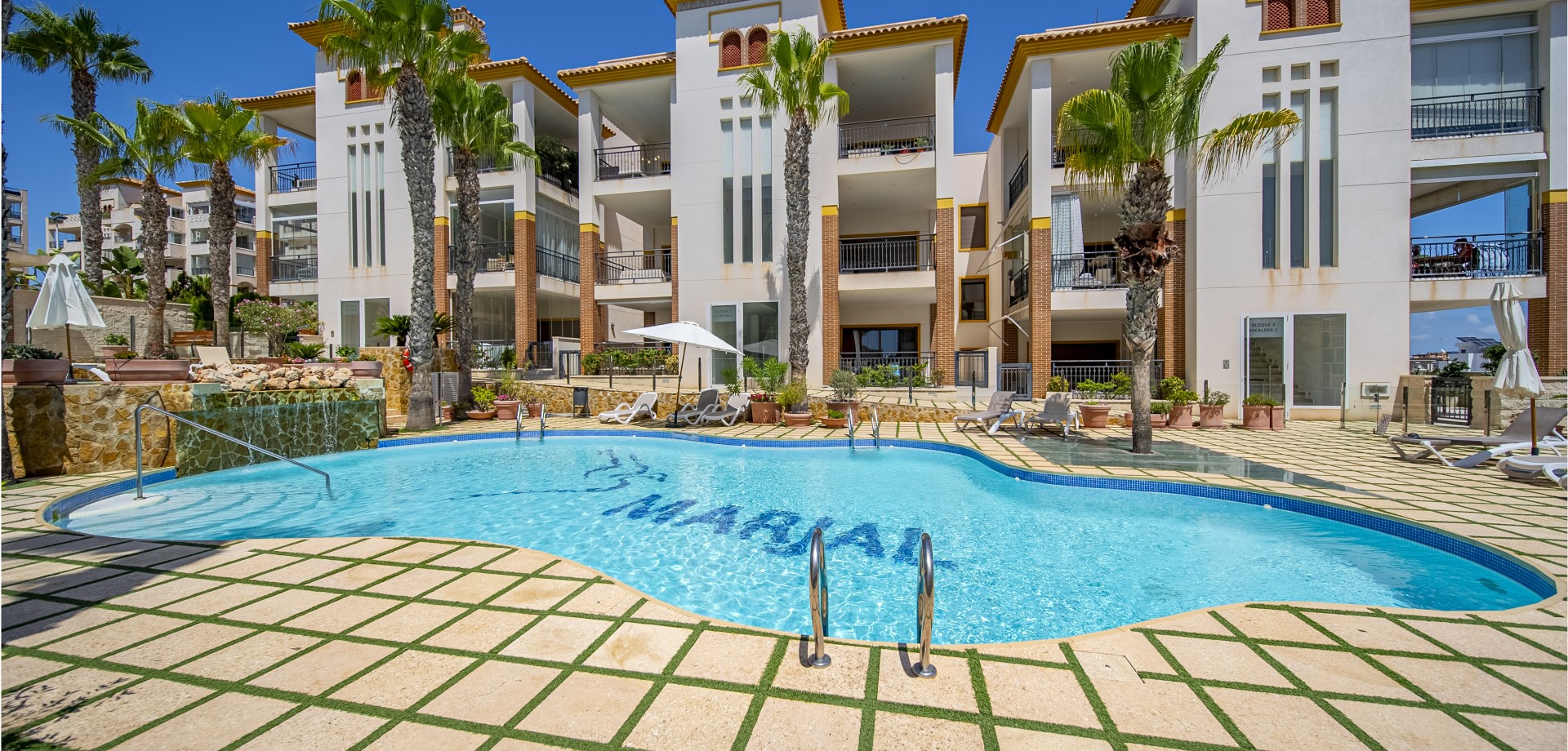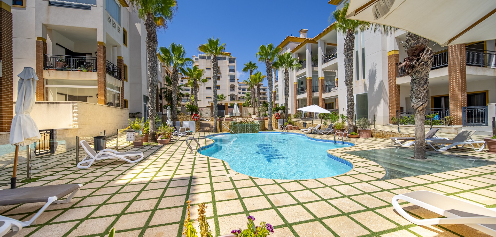 Apartamento en planta baja con vistas al mar en Guardamar del Segura. Ubicado en un cuidado residencial de estilo mediterráneo, este apartamento ofrece 70 m² construidos con 2 dormitorios y 2 baños, uno de ellos en suite. Dispone de un luminoso salón-comedor con cocina abierta y una amplia terraza de 40 m² con vistas al mar. Incluye plaza de parking subterráneo y trastero. El complejo cuenta con piscina comunitaria con cascada y zona de playa, piscina interior climatizada, gimnasio, sauna y vestuarios. Construido en 2013, se encuentra a solo 850 m de la playa de Guardamar y cerca de bares, tiendas y restaurantes. El aeropuerto de Alicante está a 30 min en coche. Características destacadas: 2 dormitorios y 2 baños (1 en suite) 70 m² construidos + terraza de 40 m² Vistas al mar 1 plaza de parking subterráneo y trastero Piscina exterior con cascada y zona de playa Piscina interior climatizada Gimnasio, sauna y vestuarios Año de construcción: 2013 Gastos anuales: IBI: 386,43 € Comunidad: 960 € Distancias: A 850 m de la playa de Guardamar A menos de 1KM de bares, restaurantes y tiendas Aeropuerto de Alicante a 30 minutos