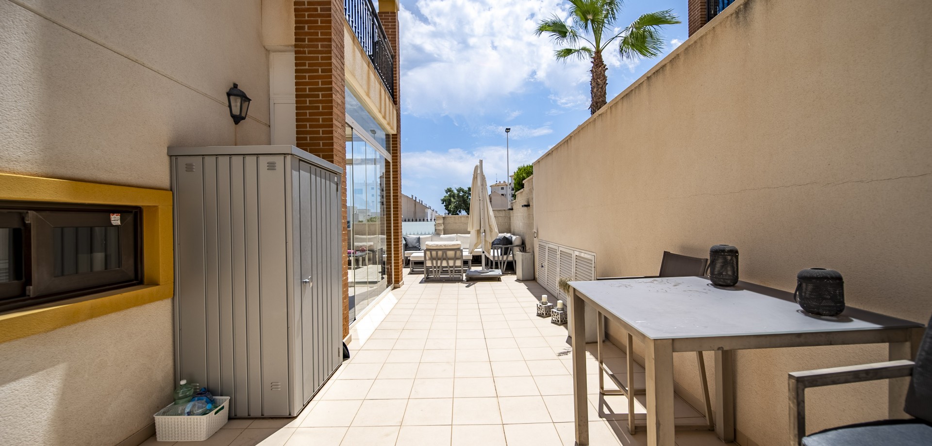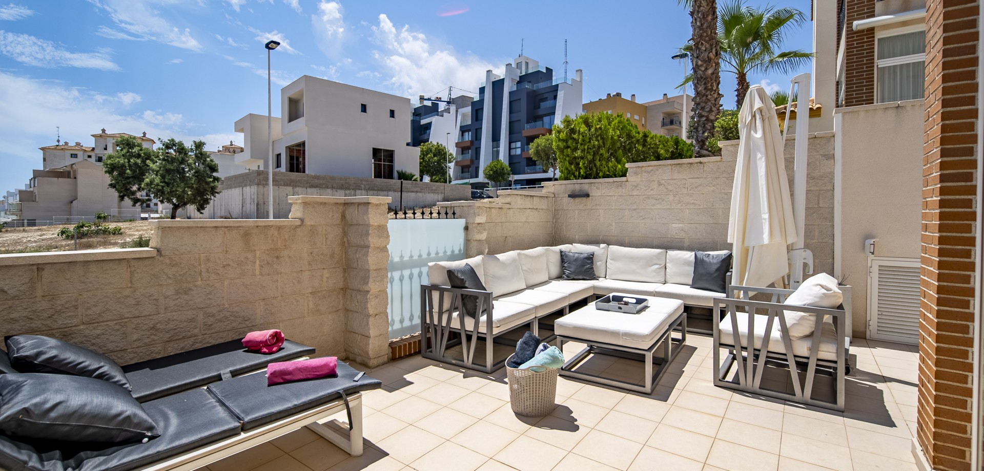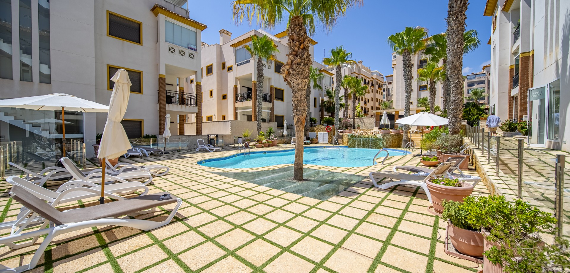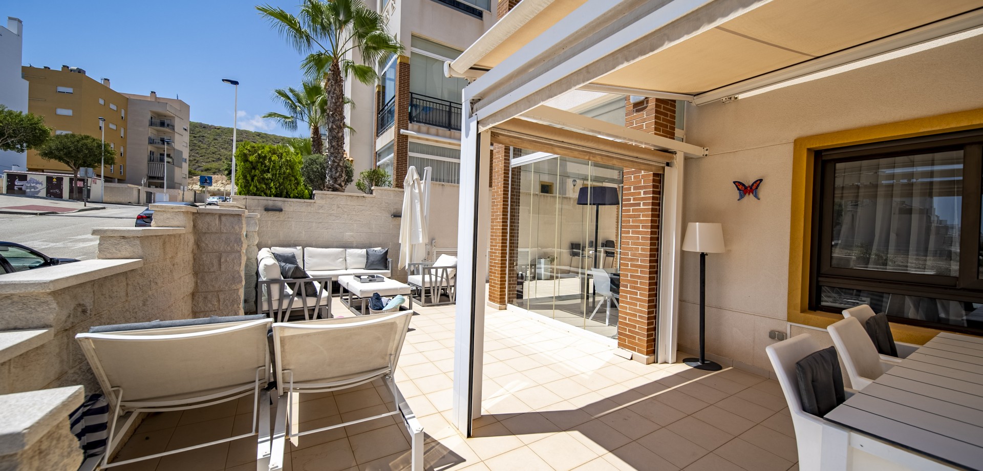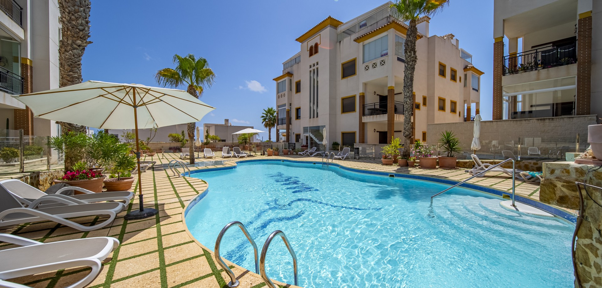 Apartamento en planta baja con vistas al mar en Guardamar del Segura. Ubicado en un cuidado residencial de estilo mediterráneo, este apartamento ofrece 70 m² construidos con 2 dormitorios y 2 baños, uno de ellos en suite. Dispone de un luminoso salón-comedor con cocina abierta y una amplia terraza de 40 m² con vistas al mar. Incluye plaza de parking subterráneo y trastero. El complejo cuenta con piscina comunitaria con cascada y zona de playa, piscina interior climatizada, gimnasio, sauna y vestuarios. Construido en 2013, se encuentra a solo 850 m de la playa de Guardamar y cerca de bares, tiendas y restaurantes. El aeropuerto de Alicante está a 30 min en coche. Características destacadas: 2 dormitorios y 2 baños (1 en suite) 70 m² construidos + terraza de 40 m² Vistas al mar 1 plaza de parking subterráneo y trastero Piscina exterior con cascada y zona de playa Piscina interior climatizada Gimnasio, sauna y vestuarios Año de construcción: 2013 Gastos anuales: IBI: 386,43 € Comunidad: 960 € Distancias: A 850 m de la playa de Guardamar A menos de 1KM de bares, restaurantes y tiendas Aeropuerto de Alicante a 30 minutos