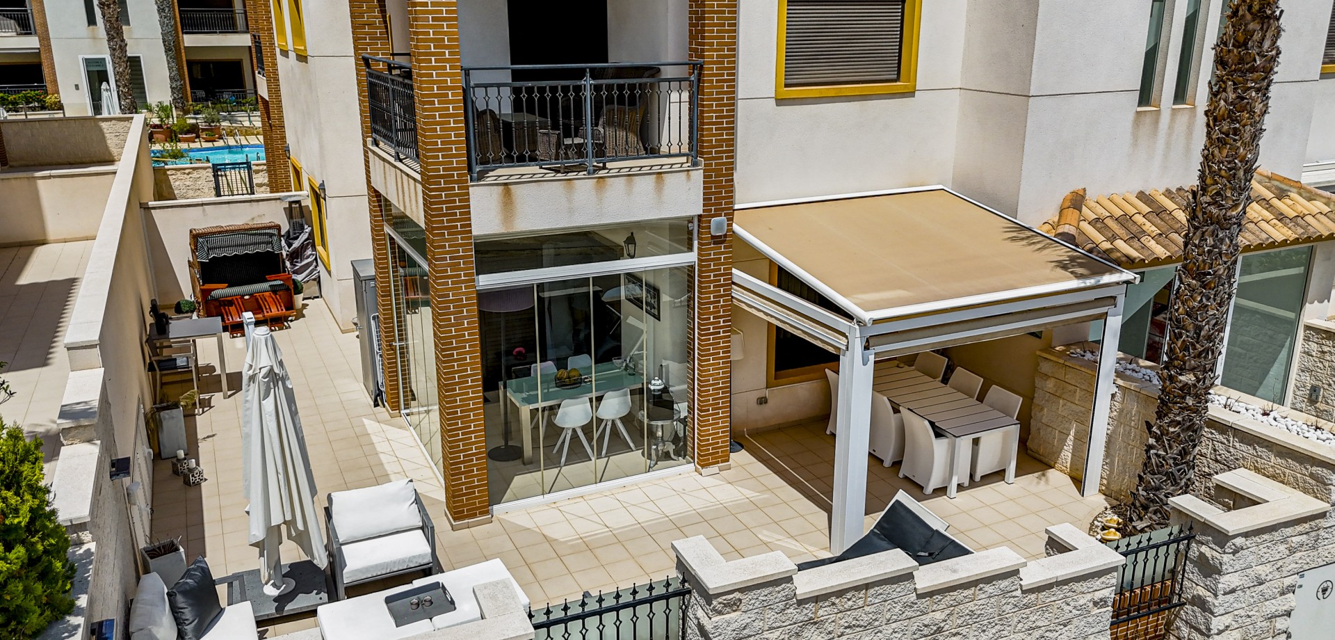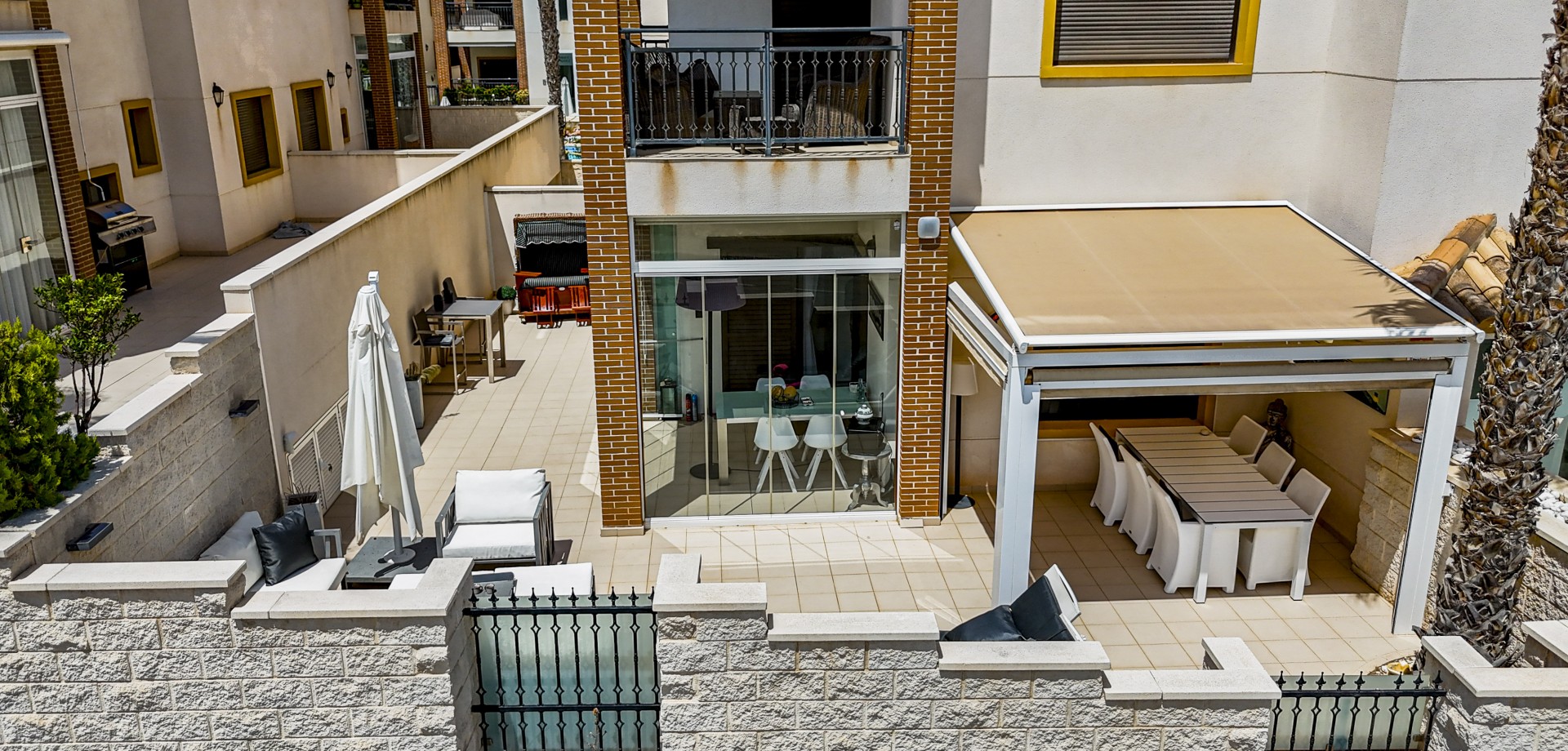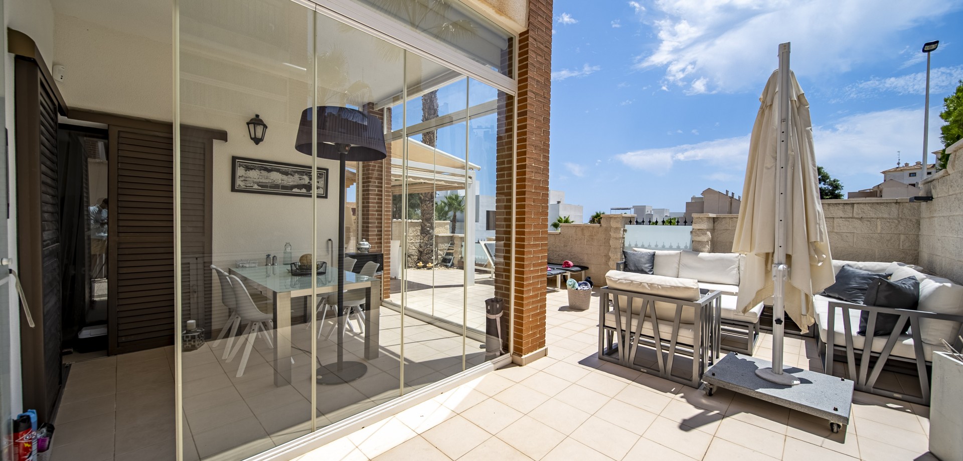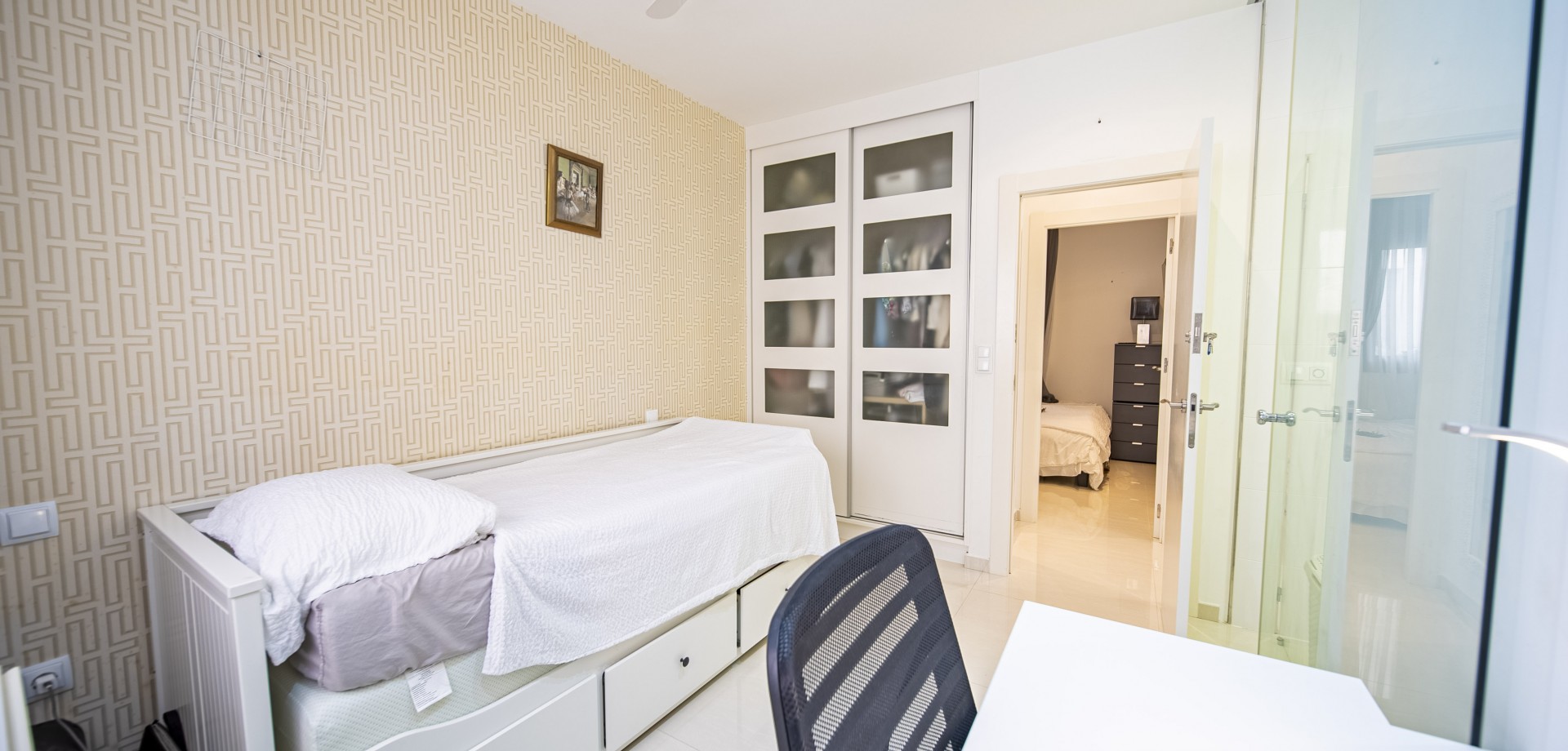 Apartamento en planta baja con vistas al mar en Guardamar del Segura. Ubicado en un cuidado residencial de estilo mediterráneo, este apartamento ofrece 70 m² construidos con 2 dormitorios y 2 baños, uno de ellos en suite. Dispone de un luminoso salón-comedor con cocina abierta y una amplia terraza de 40 m² con vistas al mar. Incluye plaza de parking subterráneo y trastero. El complejo cuenta con piscina comunitaria con cascada y zona de playa, piscina interior climatizada, gimnasio, sauna y vestuarios. Construido en 2013, se encuentra a solo 850 m de la playa de Guardamar y cerca de bares, tiendas y restaurantes. El aeropuerto de Alicante está a 30 min en coche. Características destacadas: 2 dormitorios y 2 baños (1 en suite) 70 m² construidos + terraza de 40 m² Vistas al mar 1 plaza de parking subterráneo y trastero Piscina exterior con cascada y zona de playa Piscina interior climatizada Gimnasio, sauna y vestuarios Año de construcción: 2013 Gastos anuales: IBI: 386,43 € Comunidad: 960 € Distancias: A 850 m de la playa de Guardamar A menos de 1KM de bares, restaurantes y tiendas Aeropuerto de Alicante a 30 minutos
