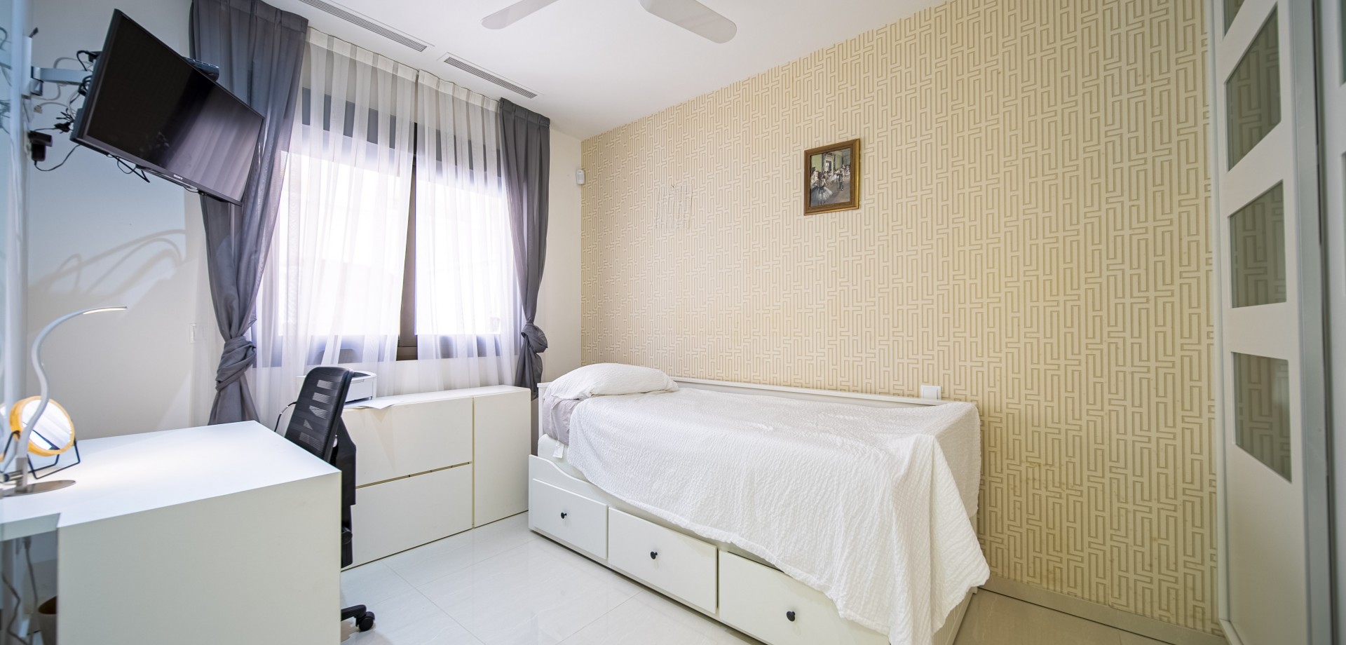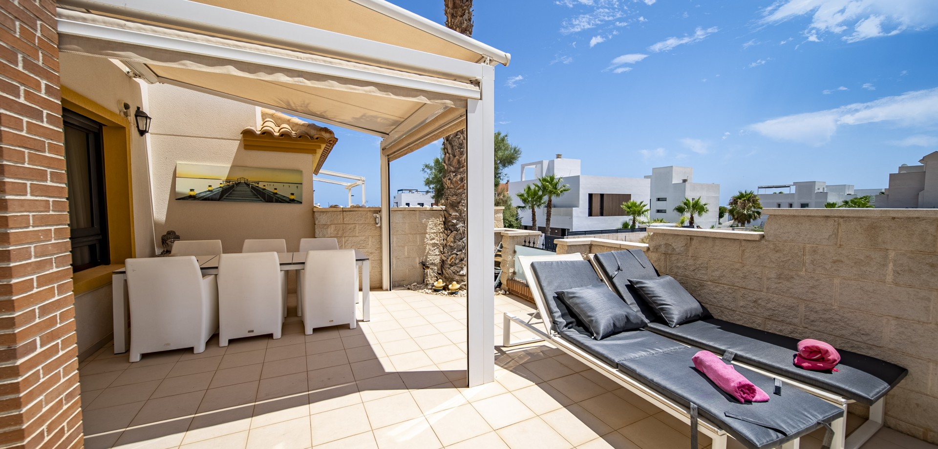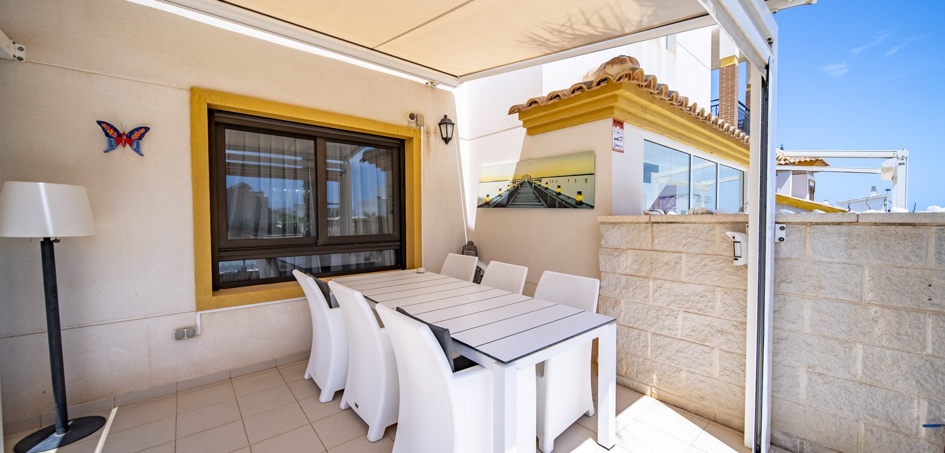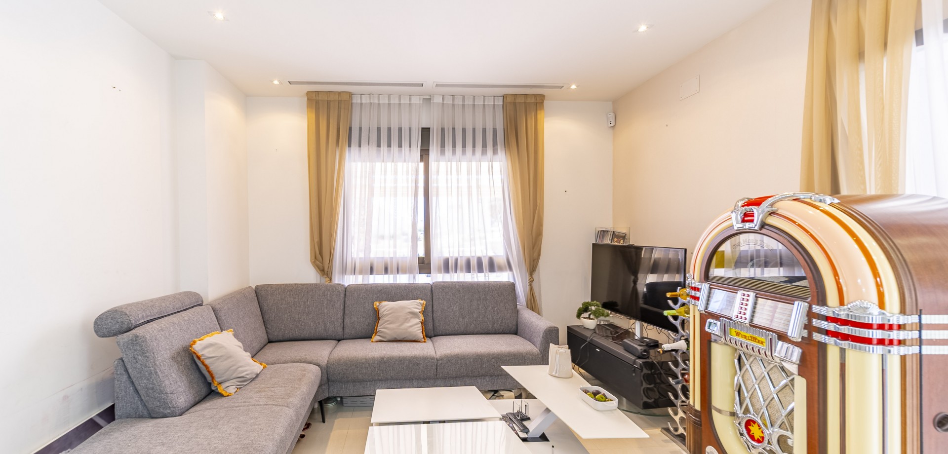 Apartamento en planta baja con vistas al mar en Guardamar del Segura. Ubicado en un cuidado residencial de estilo mediterráneo, este apartamento ofrece 70 m² construidos con 2 dormitorios y 2 baños, uno de ellos en suite. Dispone de un luminoso salón-comedor con cocina abierta y una amplia terraza de 40 m² con vistas al mar. Incluye plaza de parking subterráneo y trastero. El complejo cuenta con piscina comunitaria con cascada y zona de playa, piscina interior climatizada, gimnasio, sauna y vestuarios. Construido en 2013, se encuentra a solo 850 m de la playa de Guardamar y cerca de bares, tiendas y restaurantes. El aeropuerto de Alicante está a 30 min en coche. Características destacadas: 2 dormitorios y 2 baños (1 en suite) 70 m² construidos + terraza de 40 m² Vistas al mar 1 plaza de parking subterráneo y trastero Piscina exterior con cascada y zona de playa Piscina interior climatizada Gimnasio, sauna y vestuarios Año de construcción: 2013 Gastos anuales: IBI: 386,43 € Comunidad: 960 € Distancias: A 850 m de la playa de Guardamar A menos de 1KM de bares, restaurantes y tiendas Aeropuerto de Alicante a 30 minutos