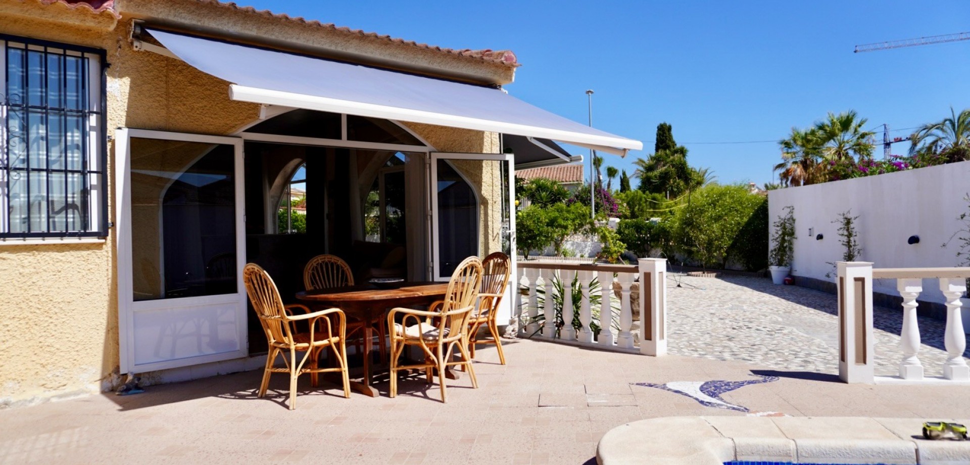 Villa renovada de 5 dormitorios con piscina privada y garaje en el centro de Quesada. Situada en una ubicación privilegiada justo en el centro de Ciudad Quesada , esta espaciosa villa independiente de 5 dormitorios y 2 baños ofrece comodidad, privacidad y conveniencia, todo en una generosa parcela de 800 m² orientada al sureste. La propiedad está completamente amueblada y cuenta con una piscina privada , un garaje , múltiples áreas de estar al aire libre y ha sido recientemente renovada , lo que la convierte en una excelente casa lista para mudarse para vivir de forma permanente o para vacaciones. Características de la propiedad: 5 habitaciones 2 baños Superficie construida: 210 m² Superficie de la parcela: 800 m² Piscina privada Garaje y estacionamiento adicional fuera de la calle. Solárium con vistas abiertas Unidades de aire acondicionado en todas partes Amueblado Terraza cubierta con toldo para sombra Área de barbacoa Trastero Orientación sureste : ideal para el sol de la mañana y del mediodía. Ubicado en una zona tranquila pero céntrica , a poca distancia de tiendas, restaurantes y todos los servicios locales. Esta propiedad combina espacio, ubicación y practicidad , ideal para familias o quienes buscan una casa más amplia en una de las zonas más codiciadas de Quesada. Con una parcela bien cuidada y amplios espacios exteriores, es perfecta para disfrutar del clima mediterráneo durante todo el año. Visitas con cita previa Contáctenos hoy para obtener más información o concertar una visita.
